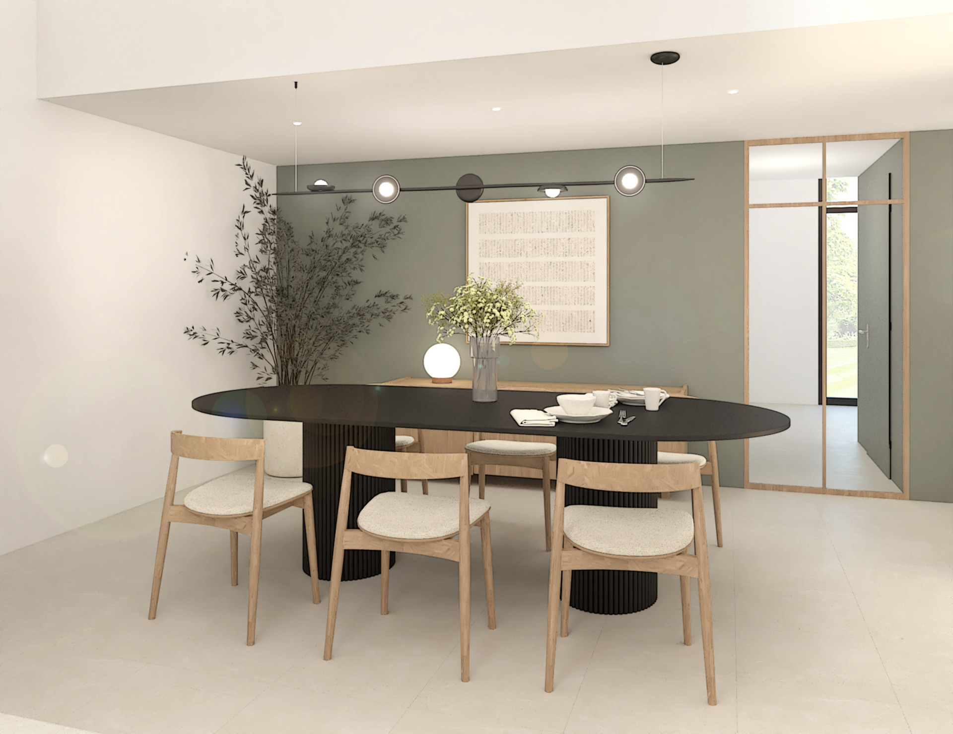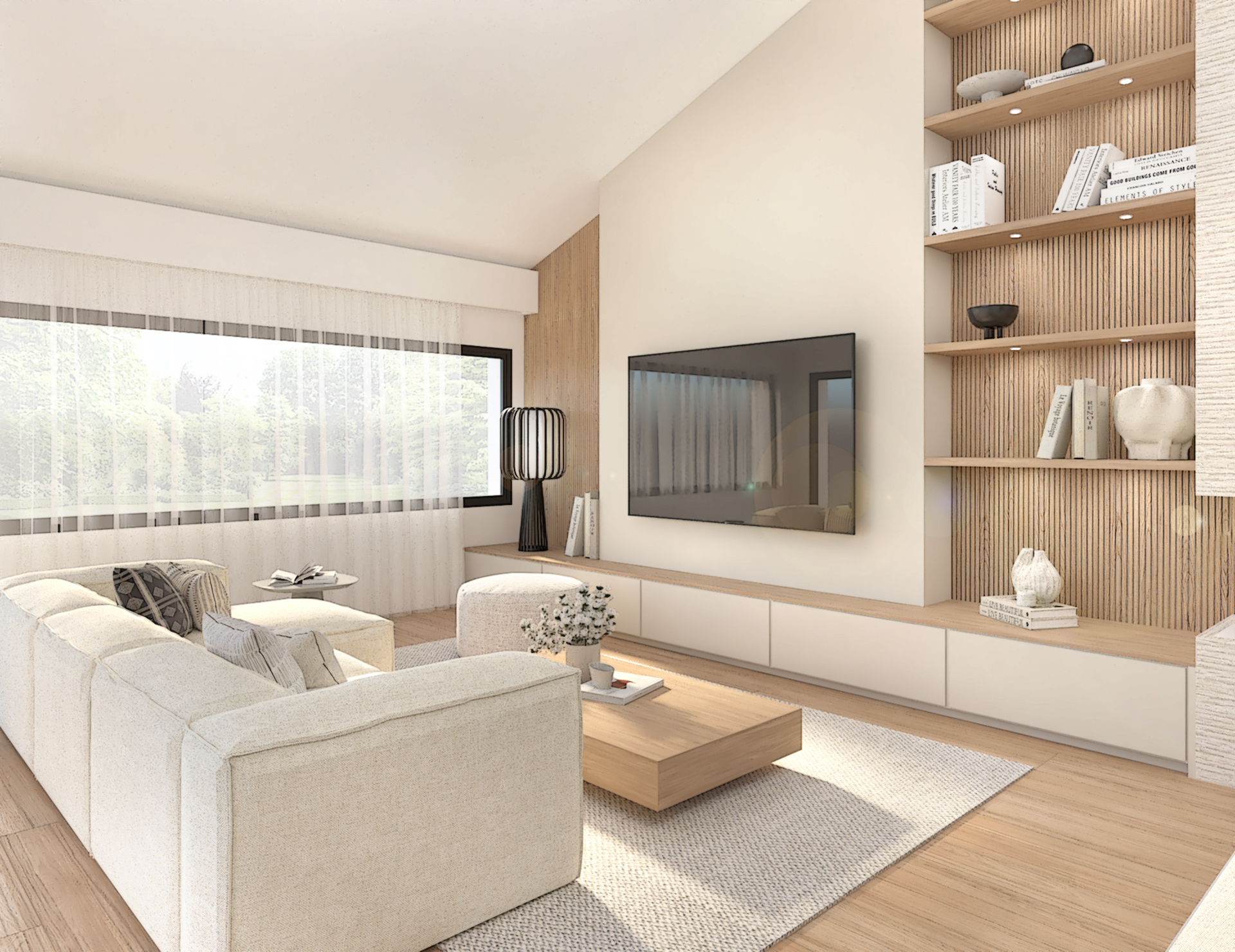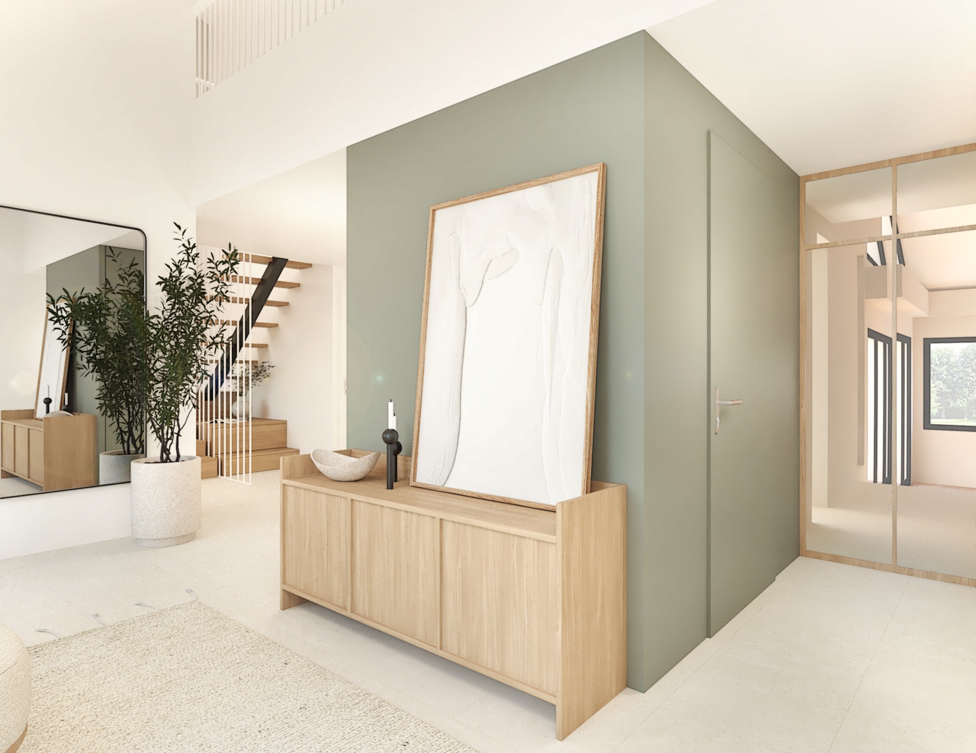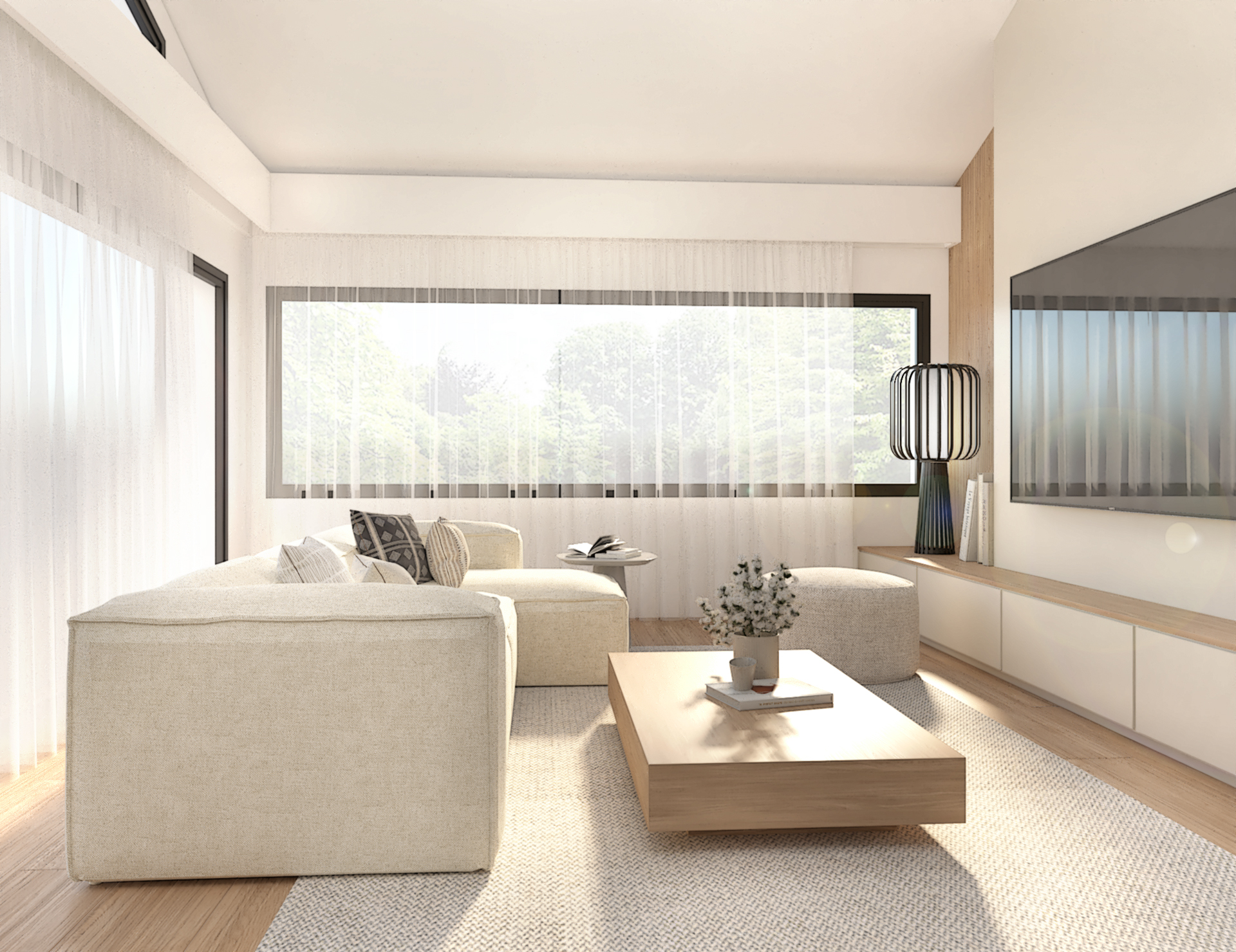 Décoration d’une maison de 150m2. L’objectif est de créer un espace aéré et fonctionnel. Les matériaux utilisés sont principalement naturels : bois, pierre naturelle (mur en pierre apparente), et textiles naturels. Cela apporte une sensation de chaleur et de bien-être. L’ensemble dégage une atmosphère calme et sereine, propice à la détente et à la convivialité.