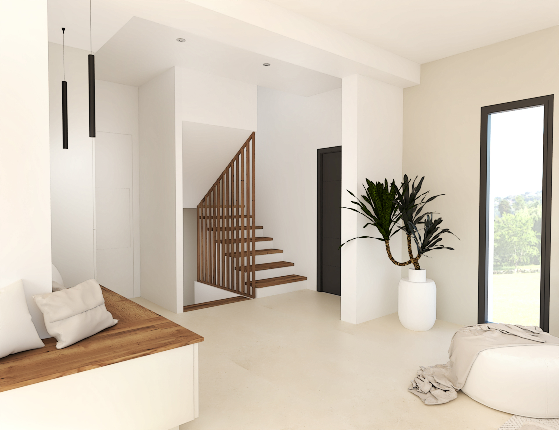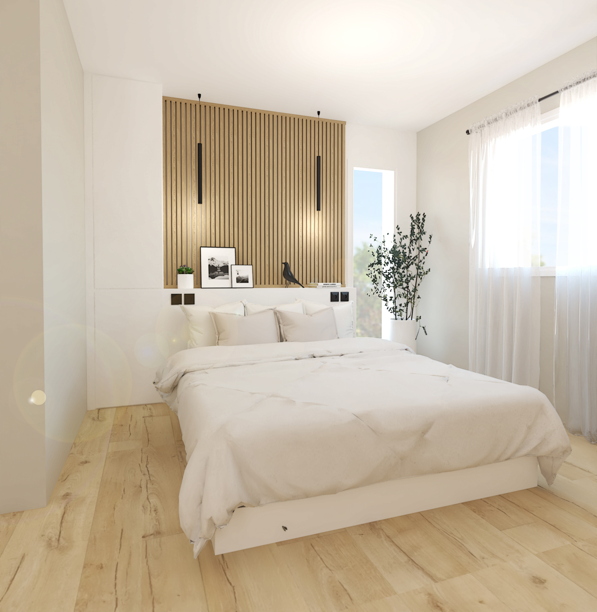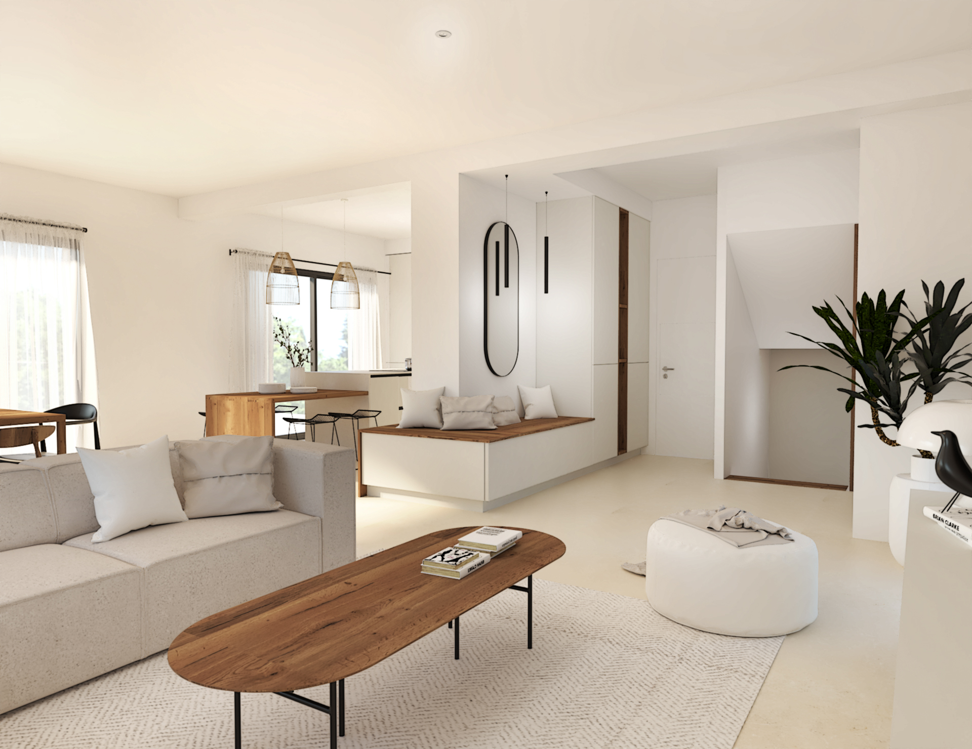 Situé au coeur de Dardilly, cette maison neuve de 200m2 est à agencer puis décorer dans le style chic et minimaliste. L’union du blanc et du noyer est un mariage idéal. Les teintes chaudes du bois réchauffent et contrebalancent l’aspect terne et froid que peut avoir le blanc dans une déco. Vivifié par des tons noisettes et beiges, l’ensemble est très élégant.