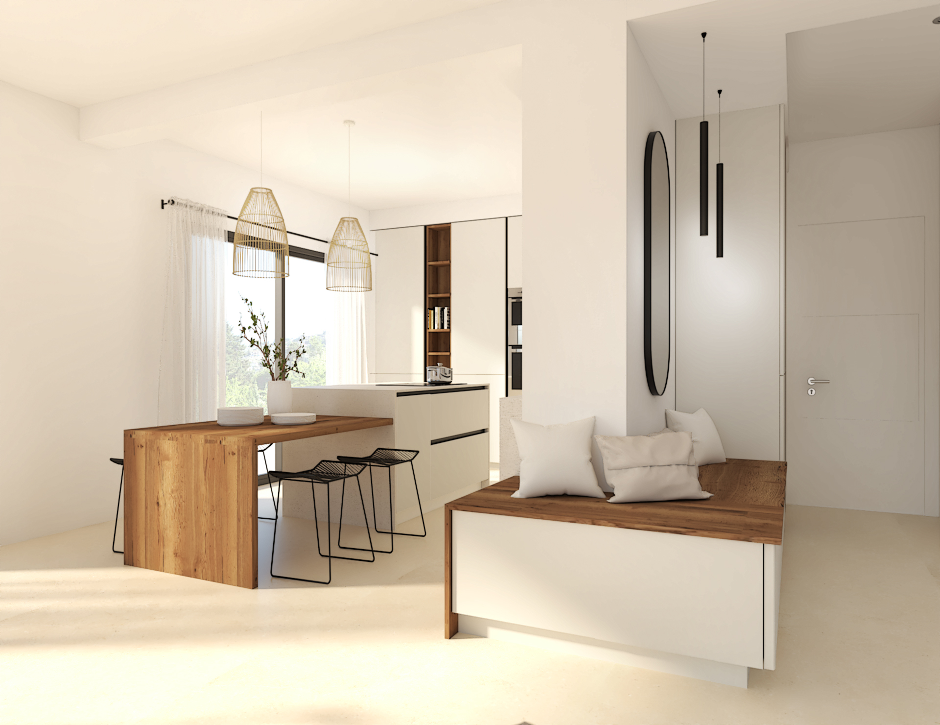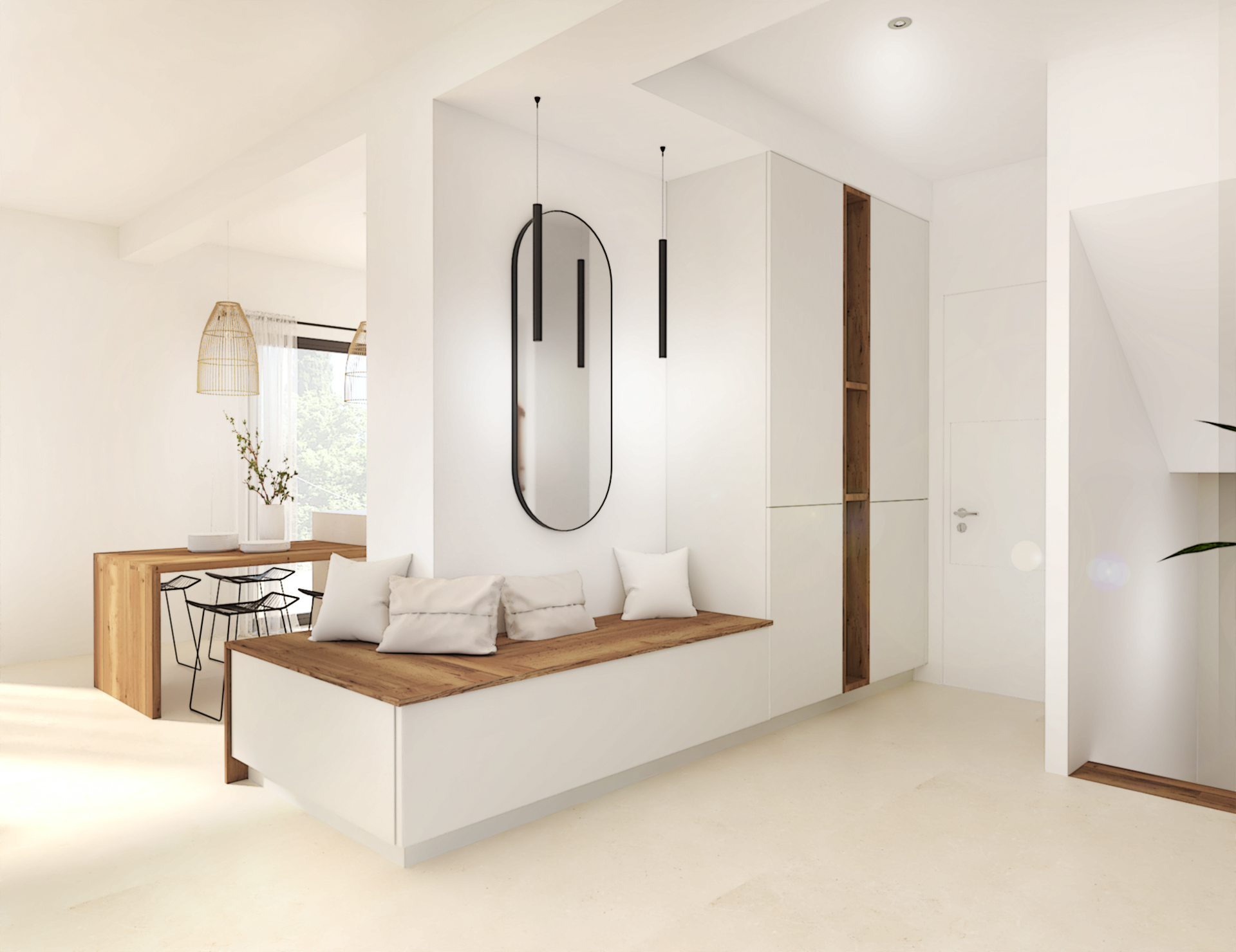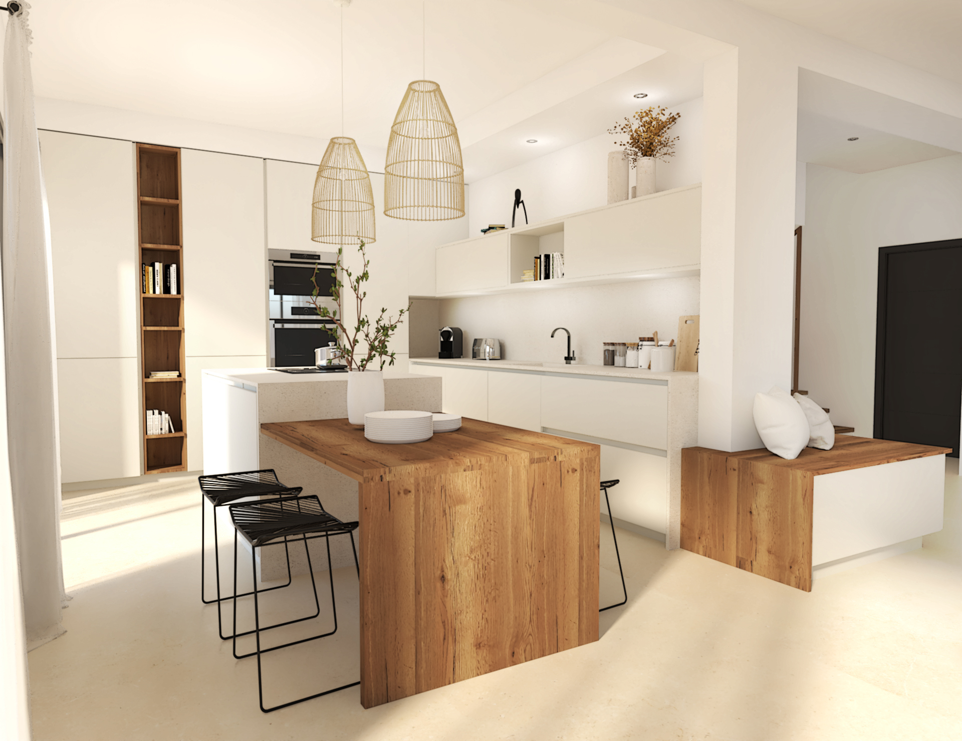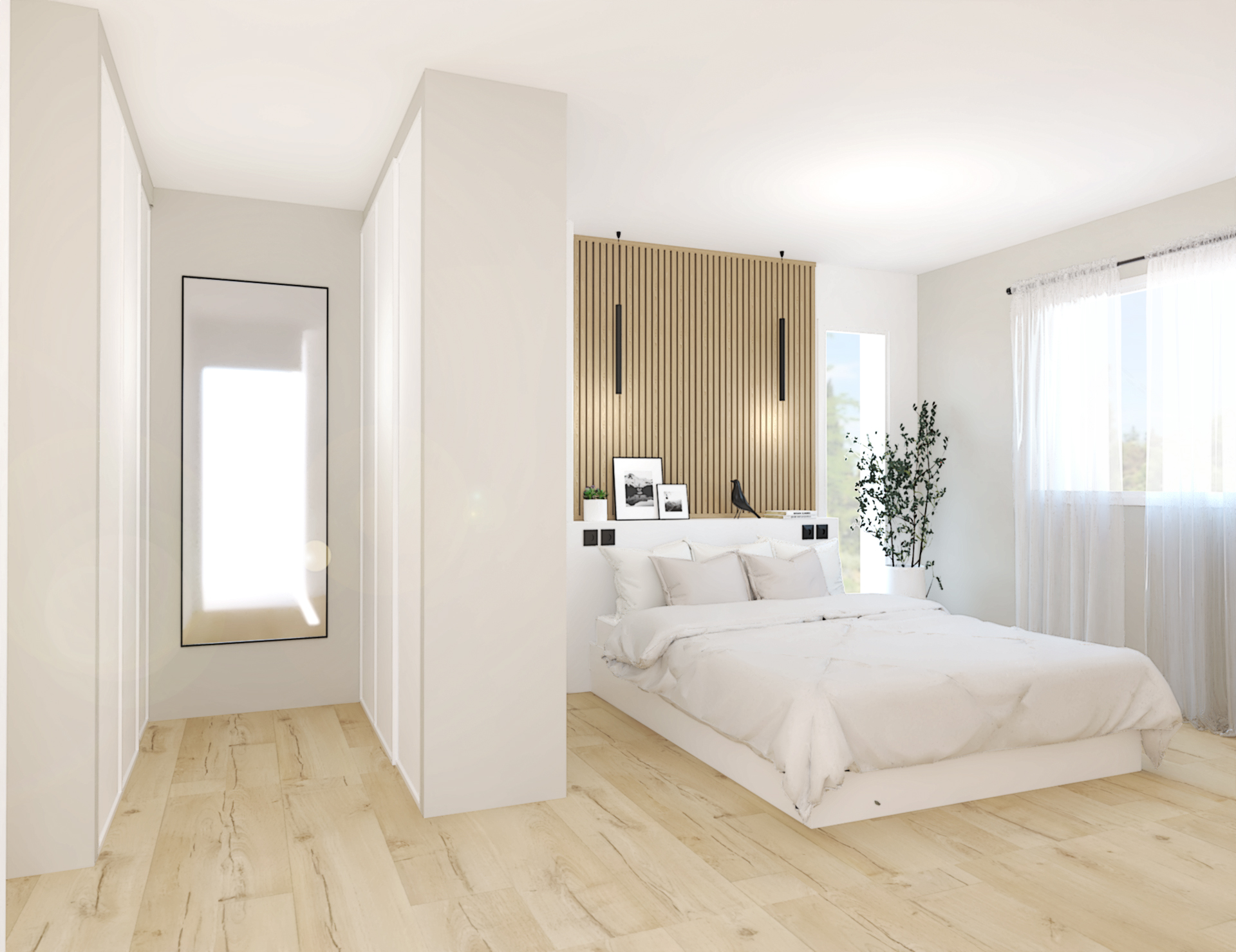 Situé au coeur de Dardilly, cette maison neuve de 200m2 est à agencer puis décorer dans le style chic et minimaliste. L’union du blanc et du noyer est un mariage idéal. Les teintes chaudes du bois réchauffent et contrebalancent l’aspect terne et froid que peut avoir le blanc dans une déco. Vivifié par des tons noisettes et beiges, l’ensemble est très élégant.