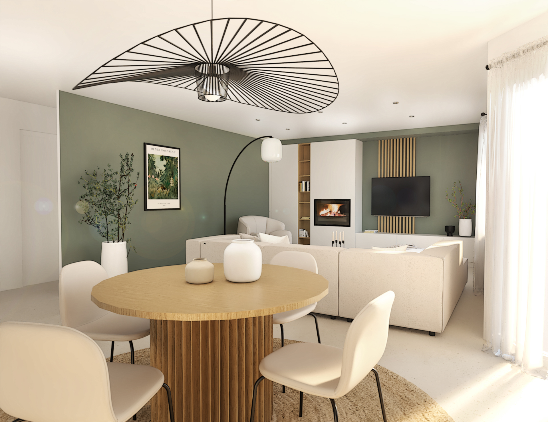 Charmante maison d’une superficie de 140 m² avec un grand epace séjour à rénover. Etant à la campagne, on trouvera dans cette décoration un univers proche de la nature, des matériaux naturels et authentiques, sans artifice, et une atmosphère où le bien-être et le confort priment. Il s’agit donc dans ce style, de reprendre certaines valeurs et codes d’autrefois, tout en y apportant de la modernité. On peut parfois avoir l’impression que les objets ont une histoire, qu’ils ont été patinés par le temps. Pour ce qui est des couleurs, la palette oscille entre les beiges, les taupes, les gris, et les éternels blancs et crèmes.