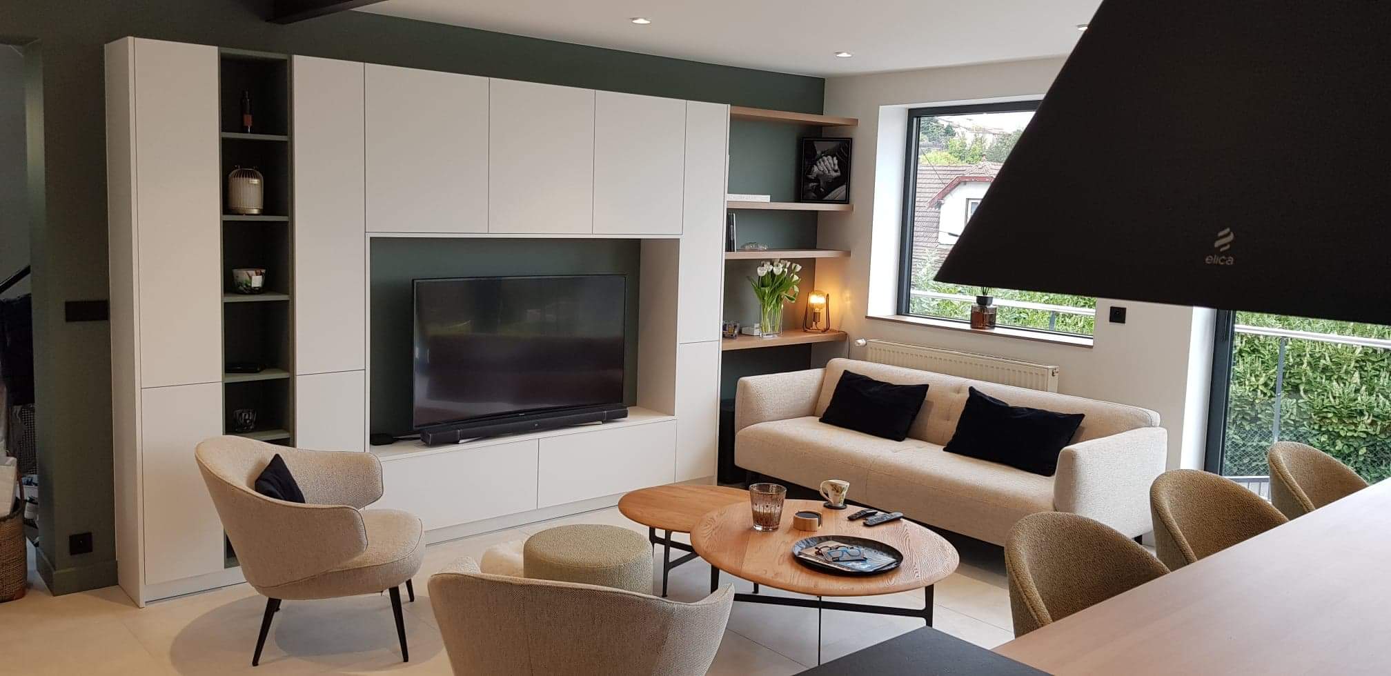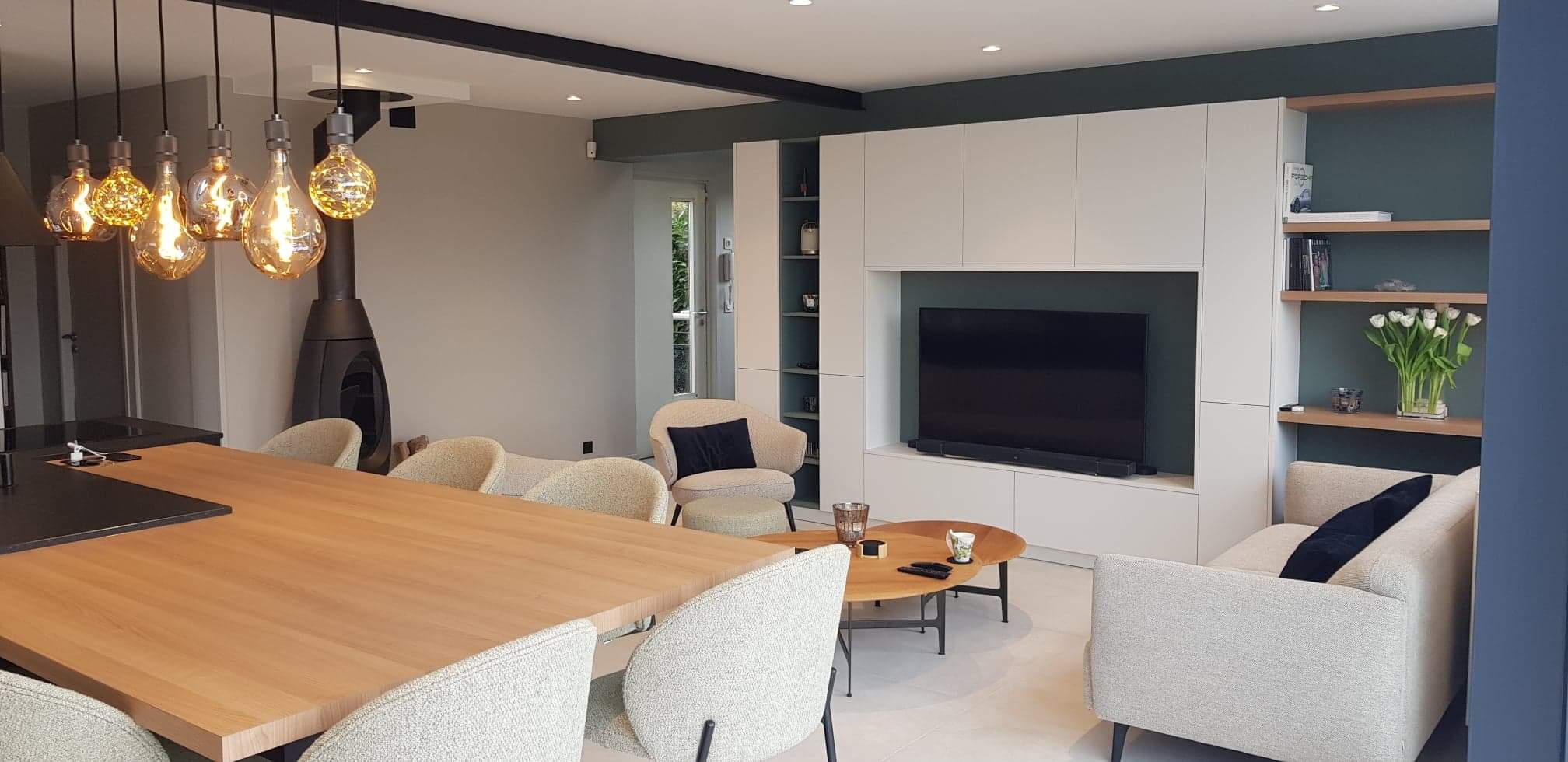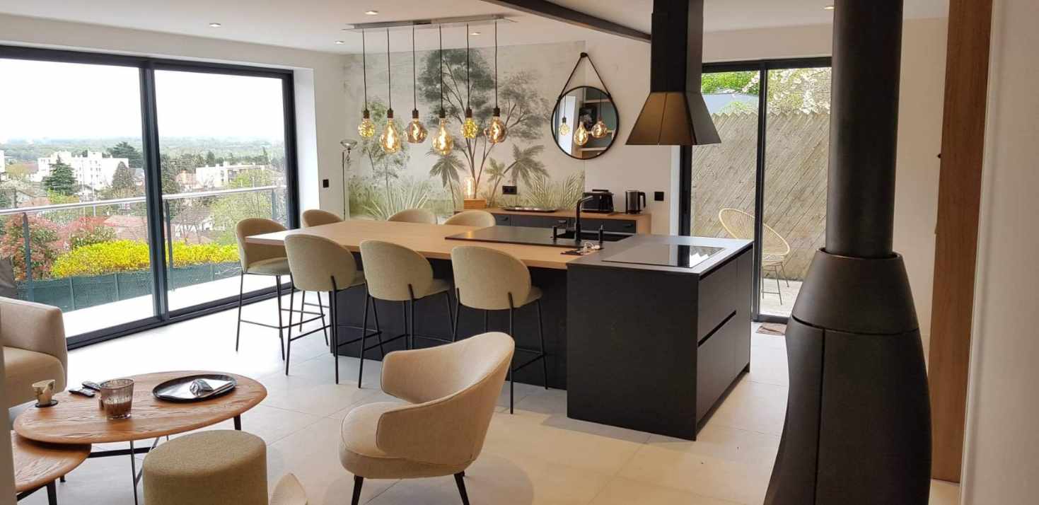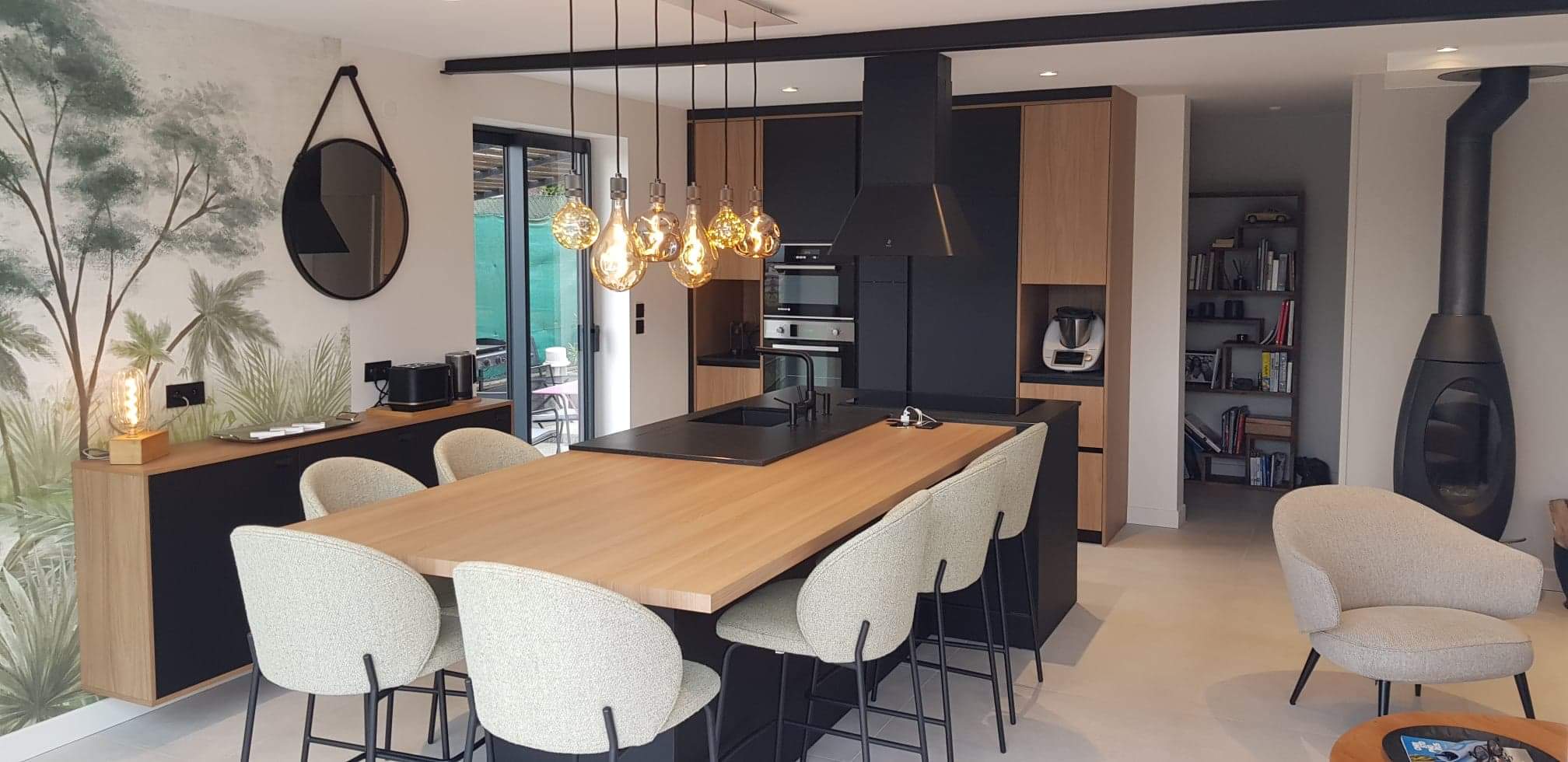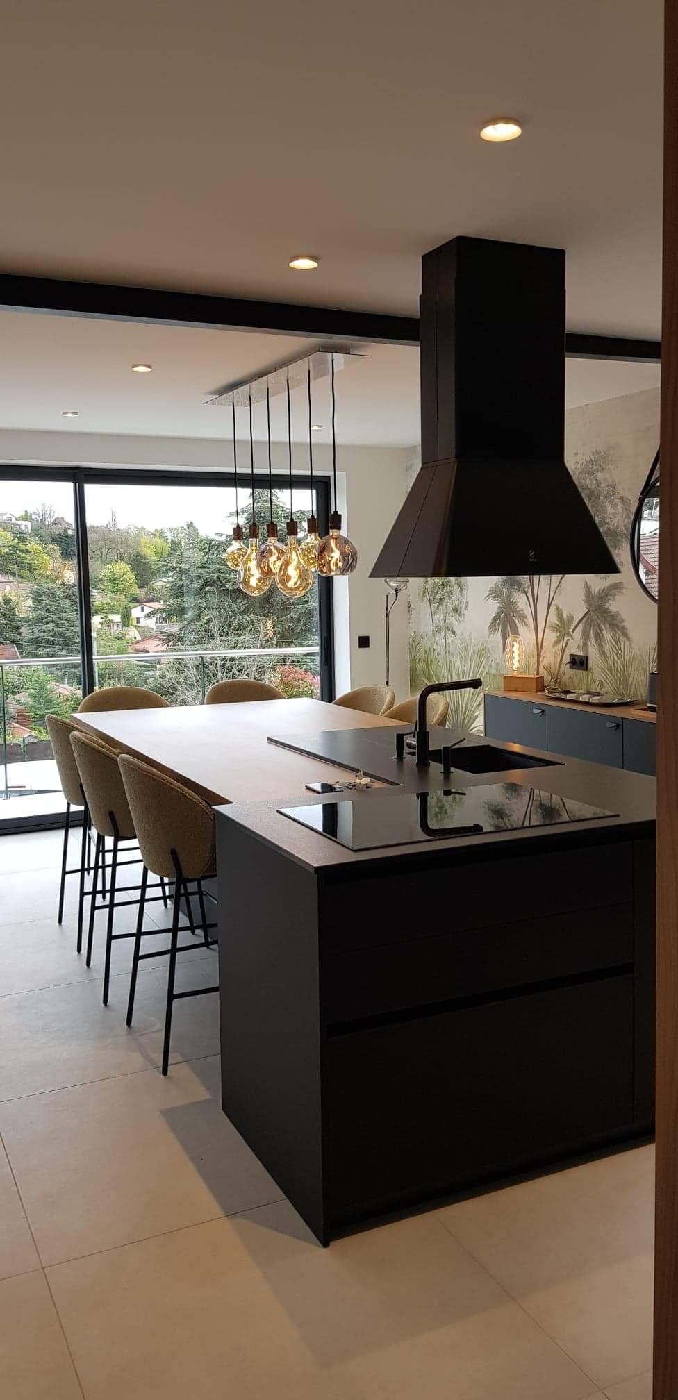 Implantée sur les hauteurs de Rillieux, la maison dispose d’un panorama magnifique sur le Mont blanc. Il était primordial de mettre en valeur cette vue de ce séjour de 28m2. Les inspirations du projet : le style industriel et le style végétal. Ambiance inédite dans cette pièce à vivre multifonctionnelle. En mêlant références industrielles et présence végétale, on se crée un univers chaleureux et personnalisé où nature et esprit loft se complètent à merveille.