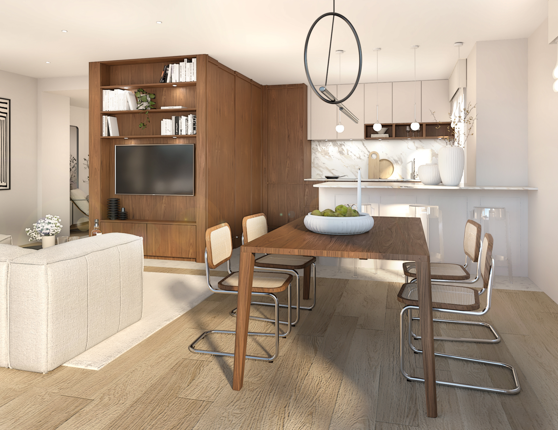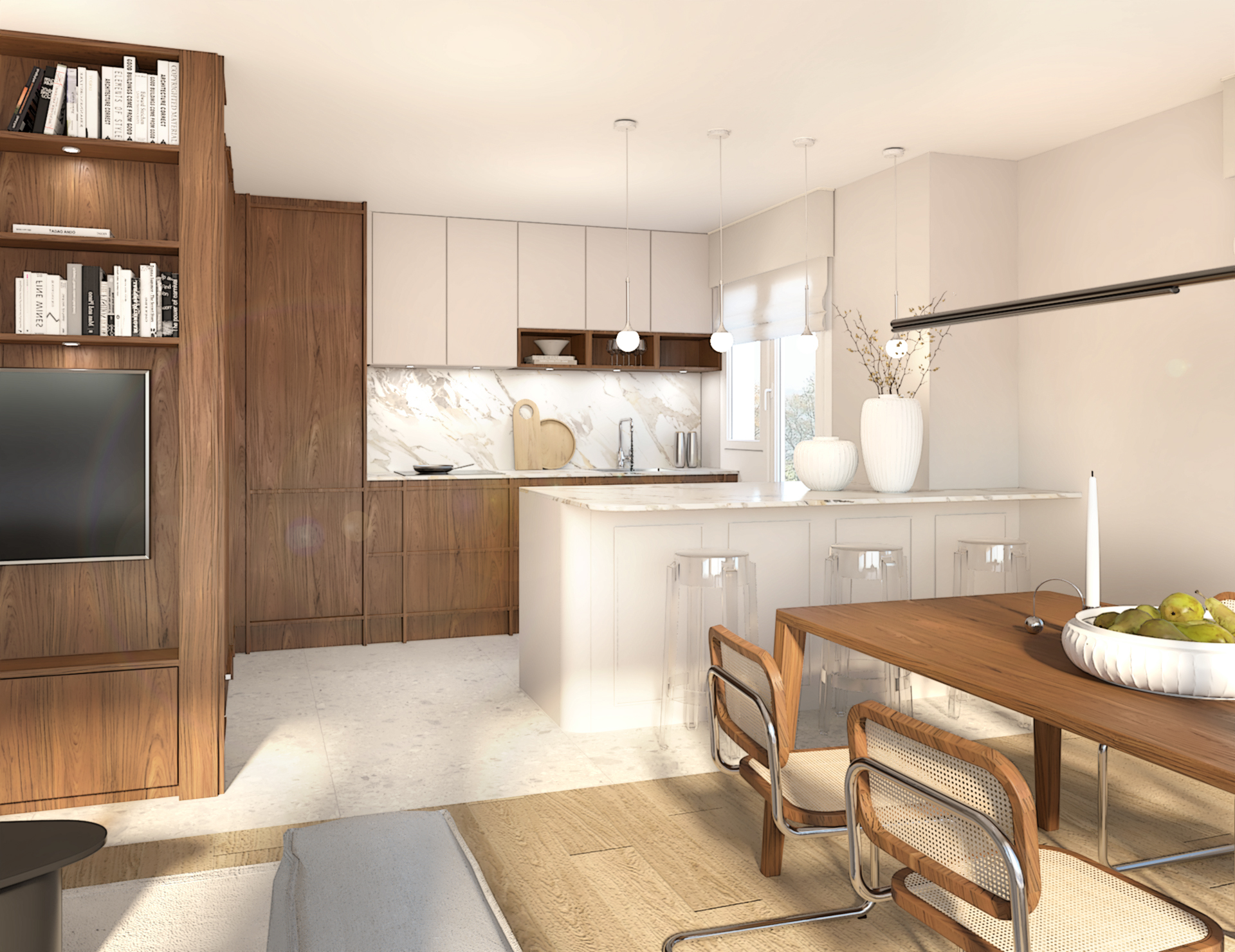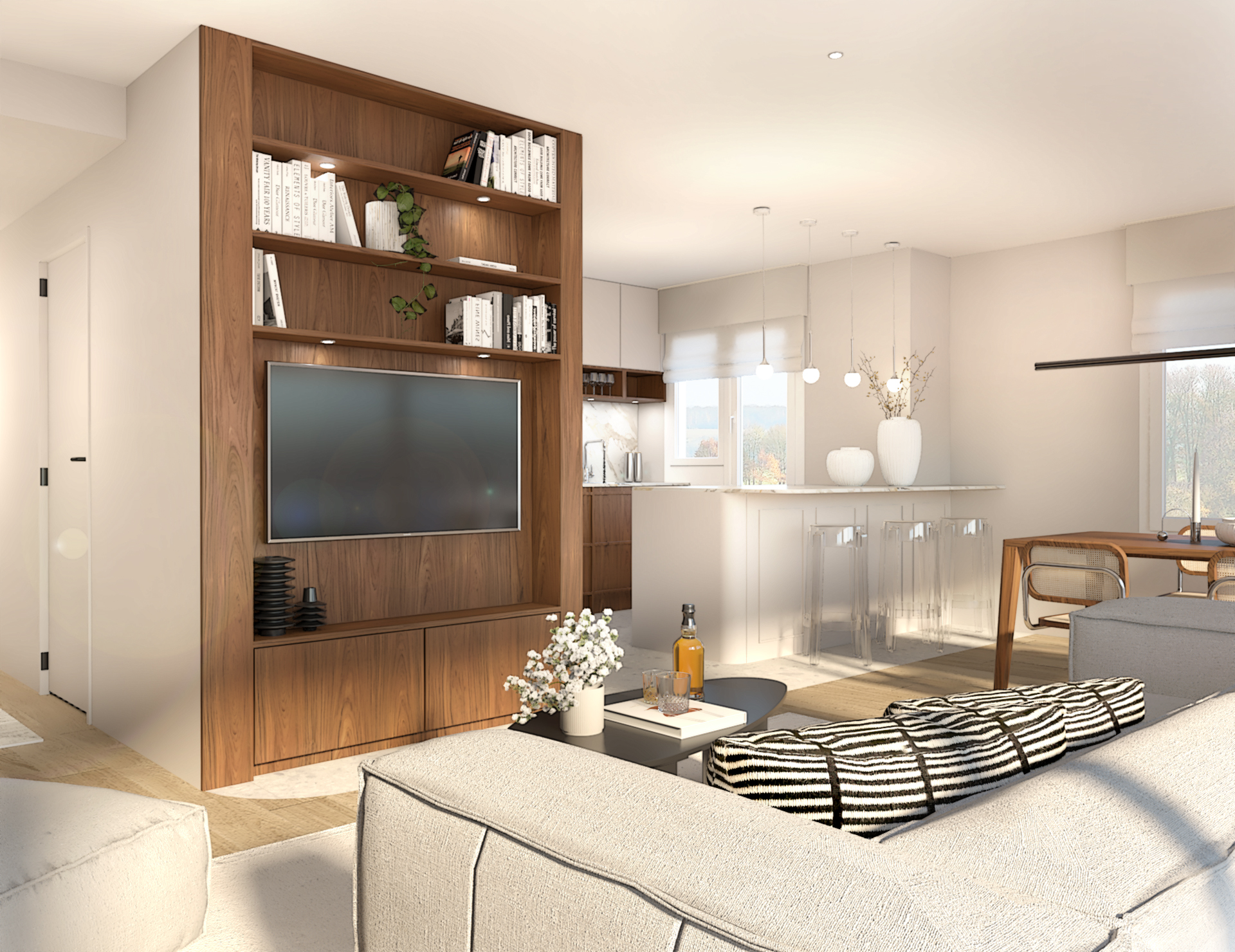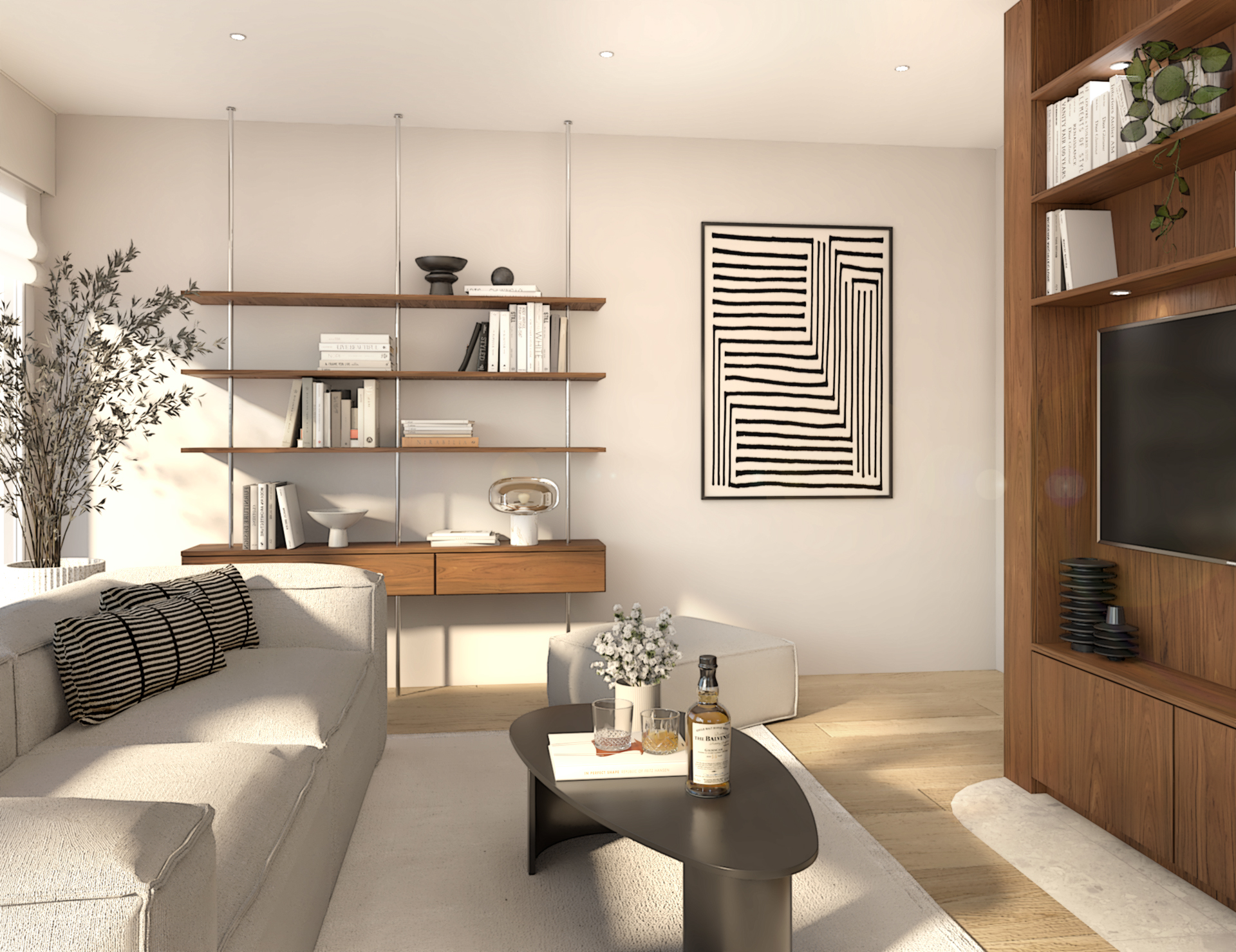 Nous sommes intervenu sur ce joli projet de rénovation situé en Suisse. Notre mission pour ce projet était d’apporter de la personnalité et une identité aux espaces. Les clients souhaitaient des conseils sur la décoration de pratiquement toute la maison, allant du choix du canapé au vase placé dans la bibliothèque. Ca fut un beau travail de création.