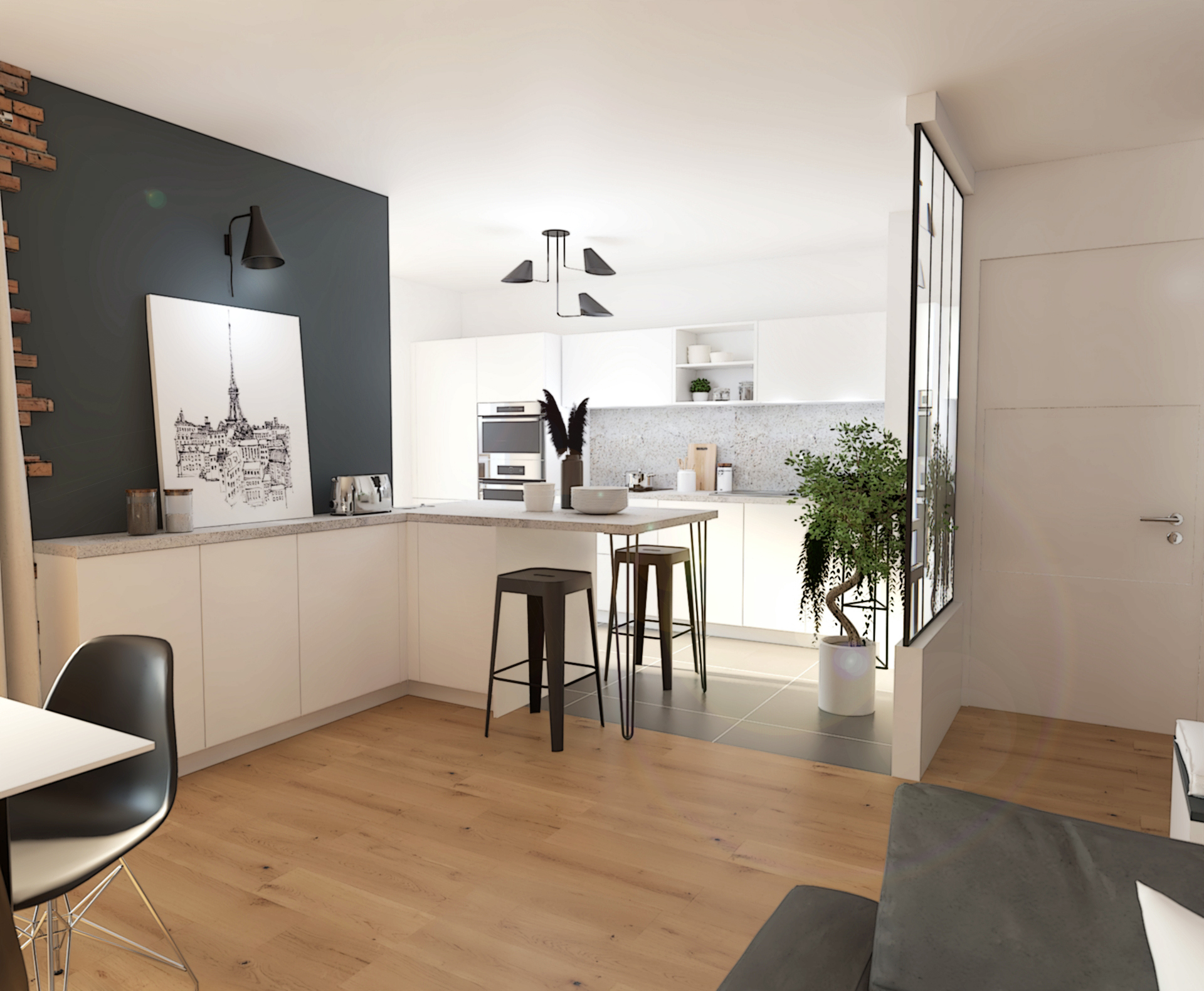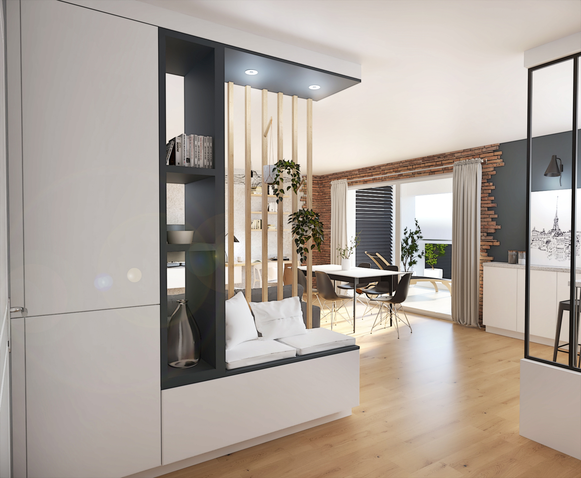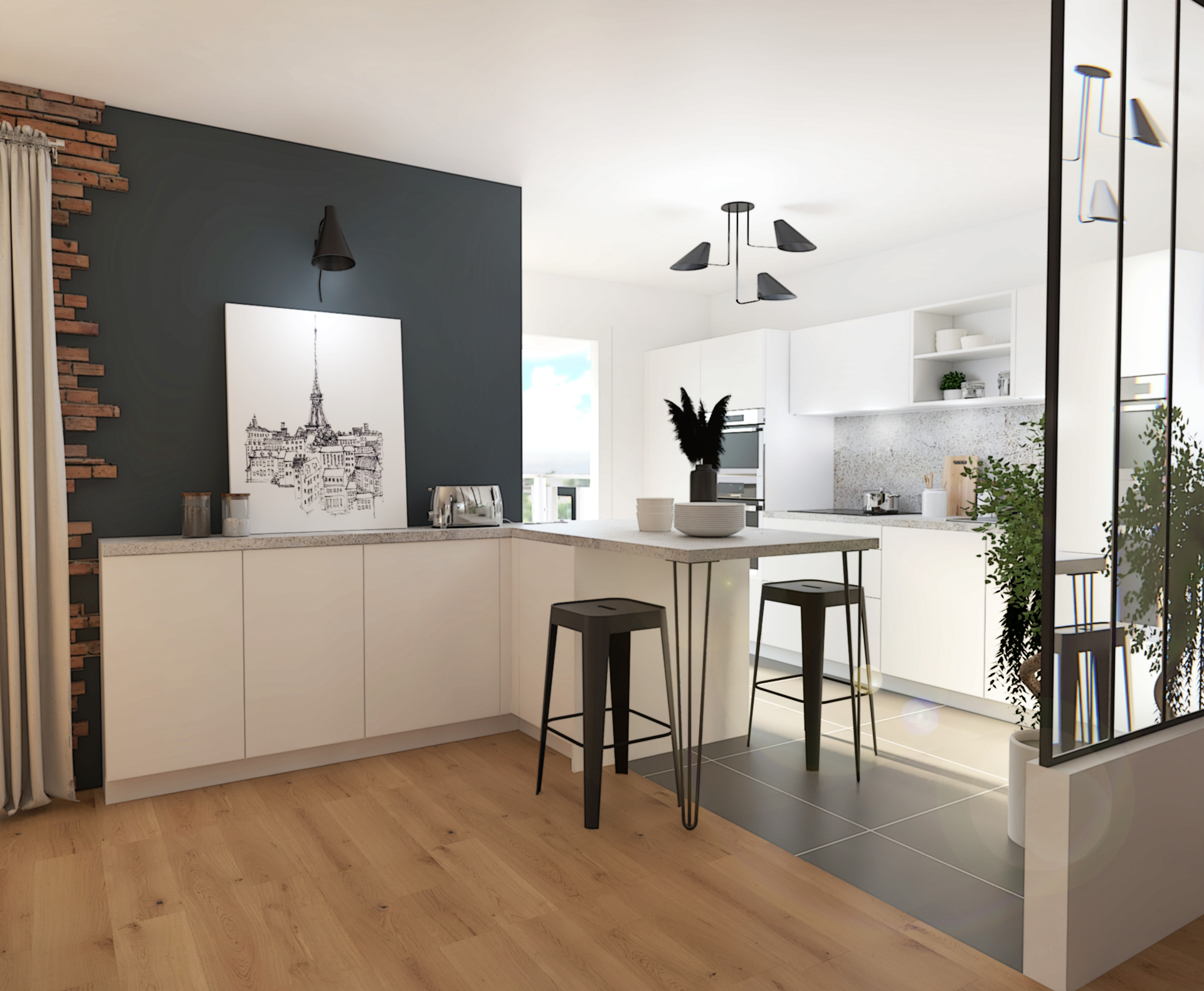 Suite à la construction de cette maison contemporaine, les clients m’ont contactés pour penser l’aménagement intérieur et créer la décoration de chaque espace. La majorité des pièces sont tournées vers l’extérieur pour profiter de la lumière naturelle. Le salon et la salle à manger restent ouverts sur la cuisine pour offrir un bel espace de convivialité à la famille. Des meubles sur mesure ont été pensés pour offrir des rangements. Ils délimitent les fonctions et offrent une unité esthétique à l’ensemble. Les agencements et la décoration créent un fil conducteur dans toute la maison.
