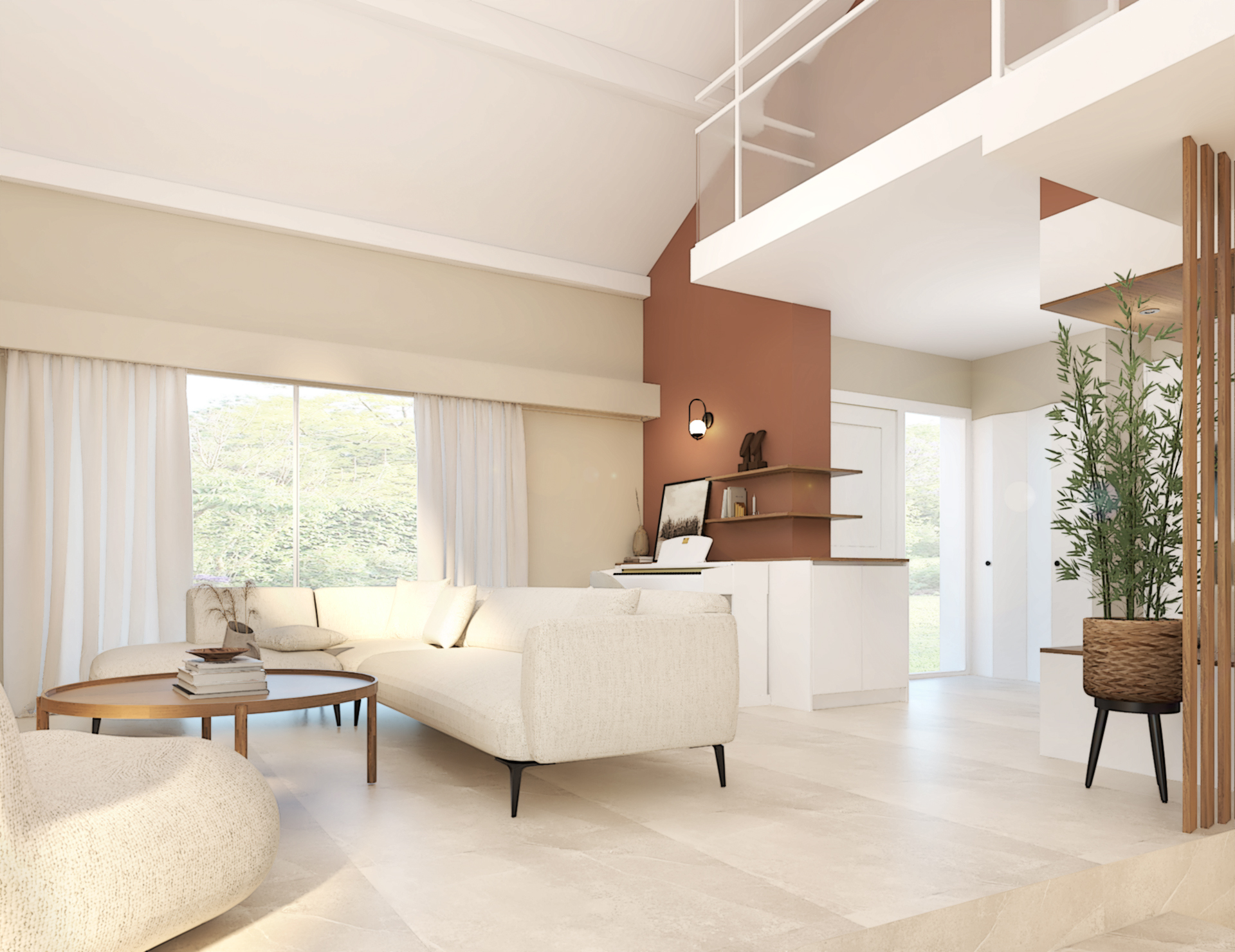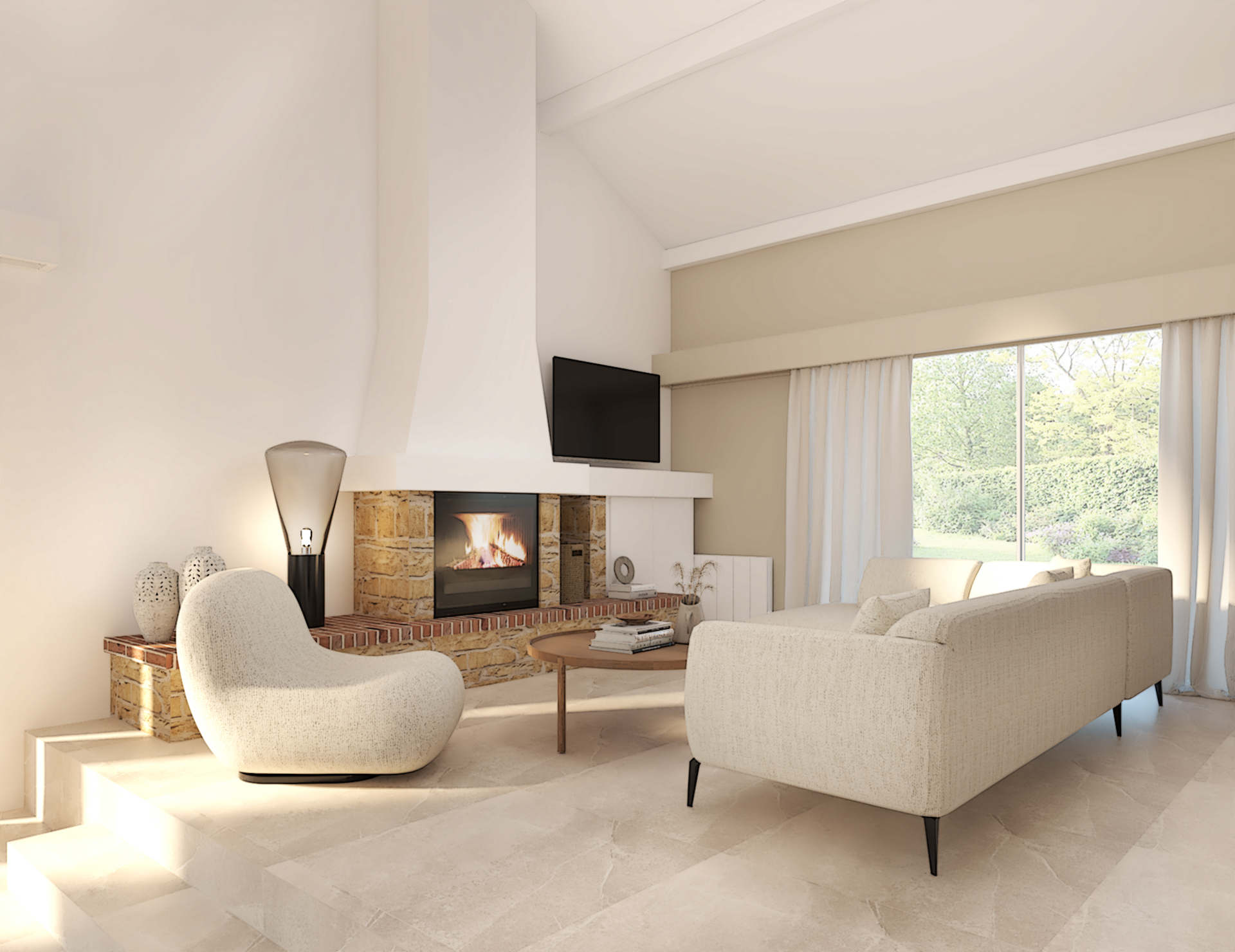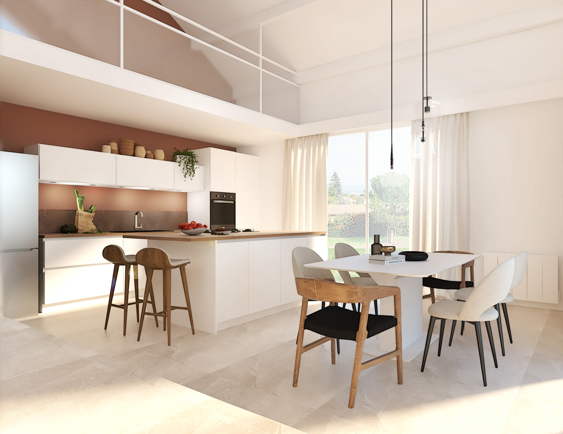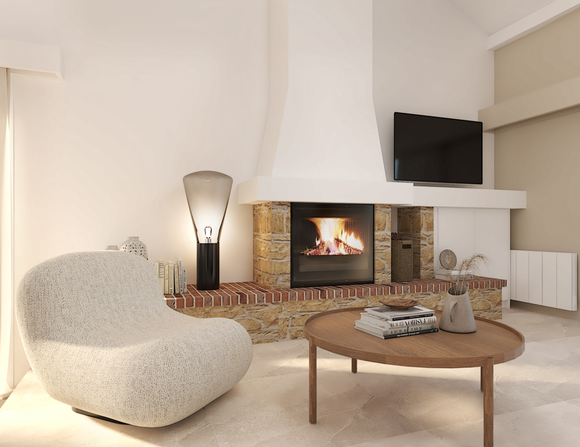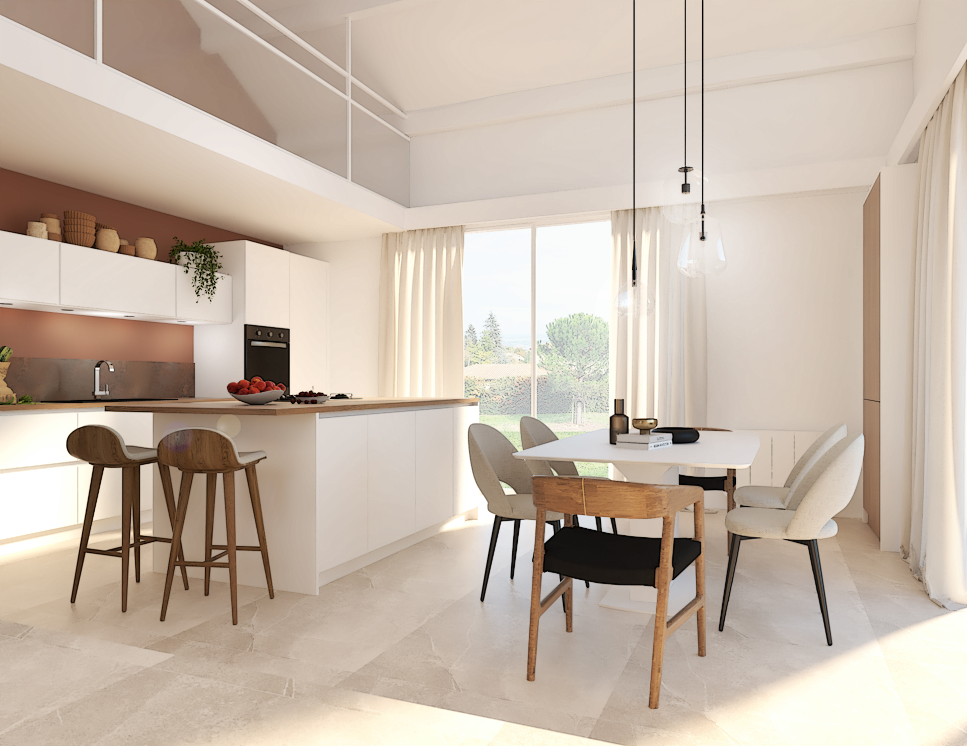 Cette splendide maison est idéalement située dans la région des Monts d’Or au coeur de la nature. La propriété propose un spacieux et lumineux séjour. La vue imprenable sur les montagnes nous offre en un réel tableau. Il fallait trouver une décoration en lien avec la nature, sans artifice. Nous avons donc opté pour une ambiance chaleureuse dans des teintes « terre-cuite ». Cette ambiance est éclaircie par des tissus beiges et blancs, cela permet de ne pas ajouter davantages d’informations visuelles. Coté panorama, des murs blanc permettent de faire ressortir ce beau paysage. Des rappels de bois un peu partout réchauffent le séjour avec authenticité.