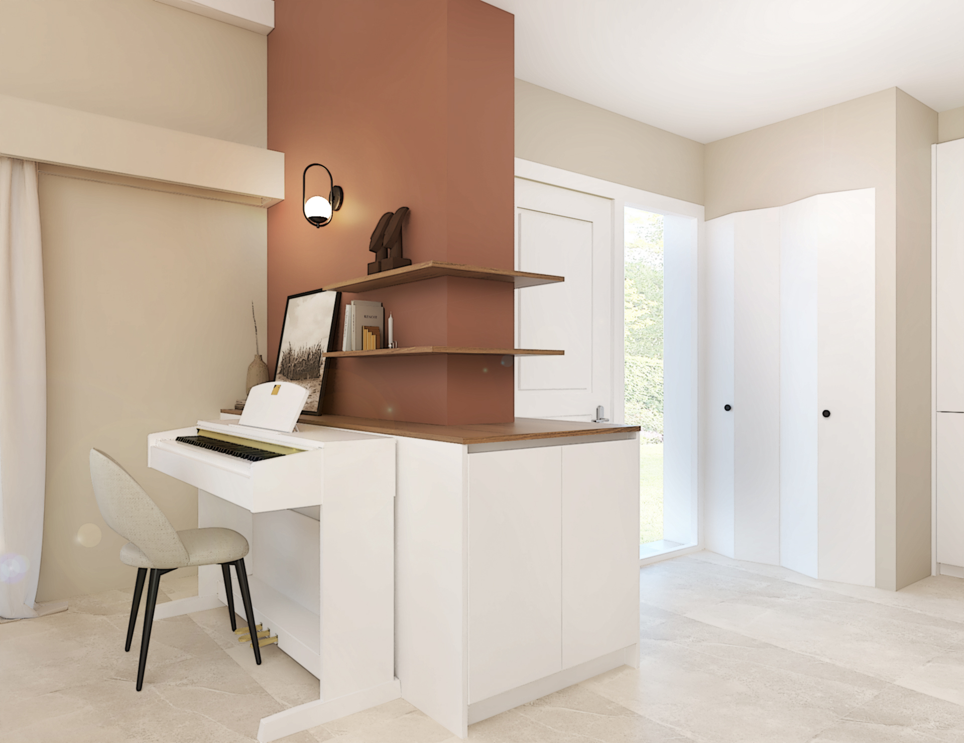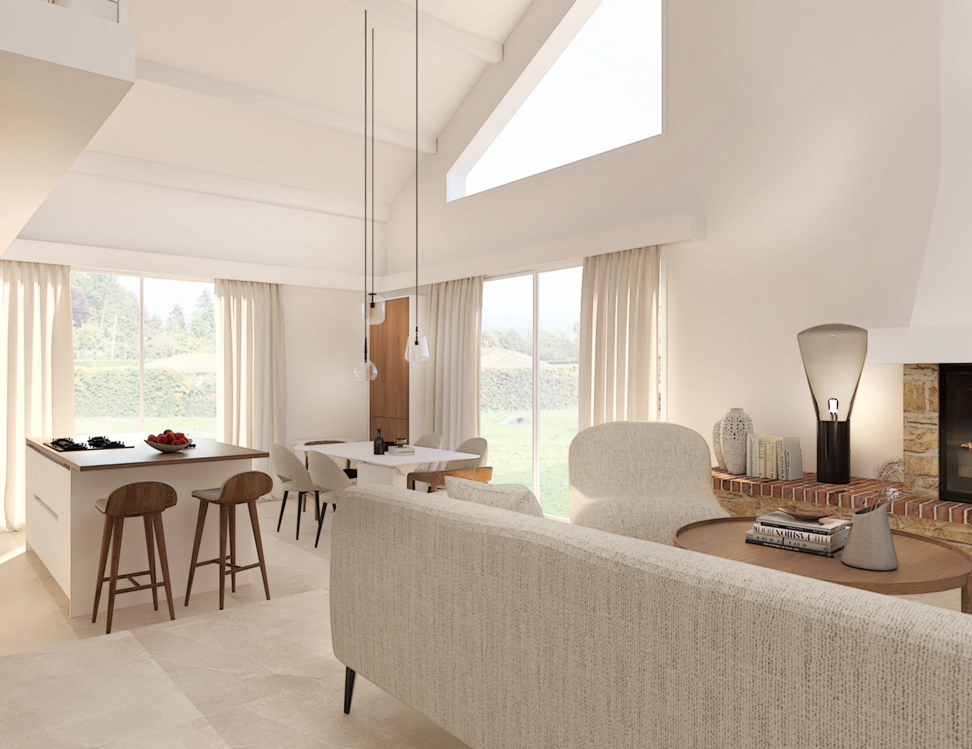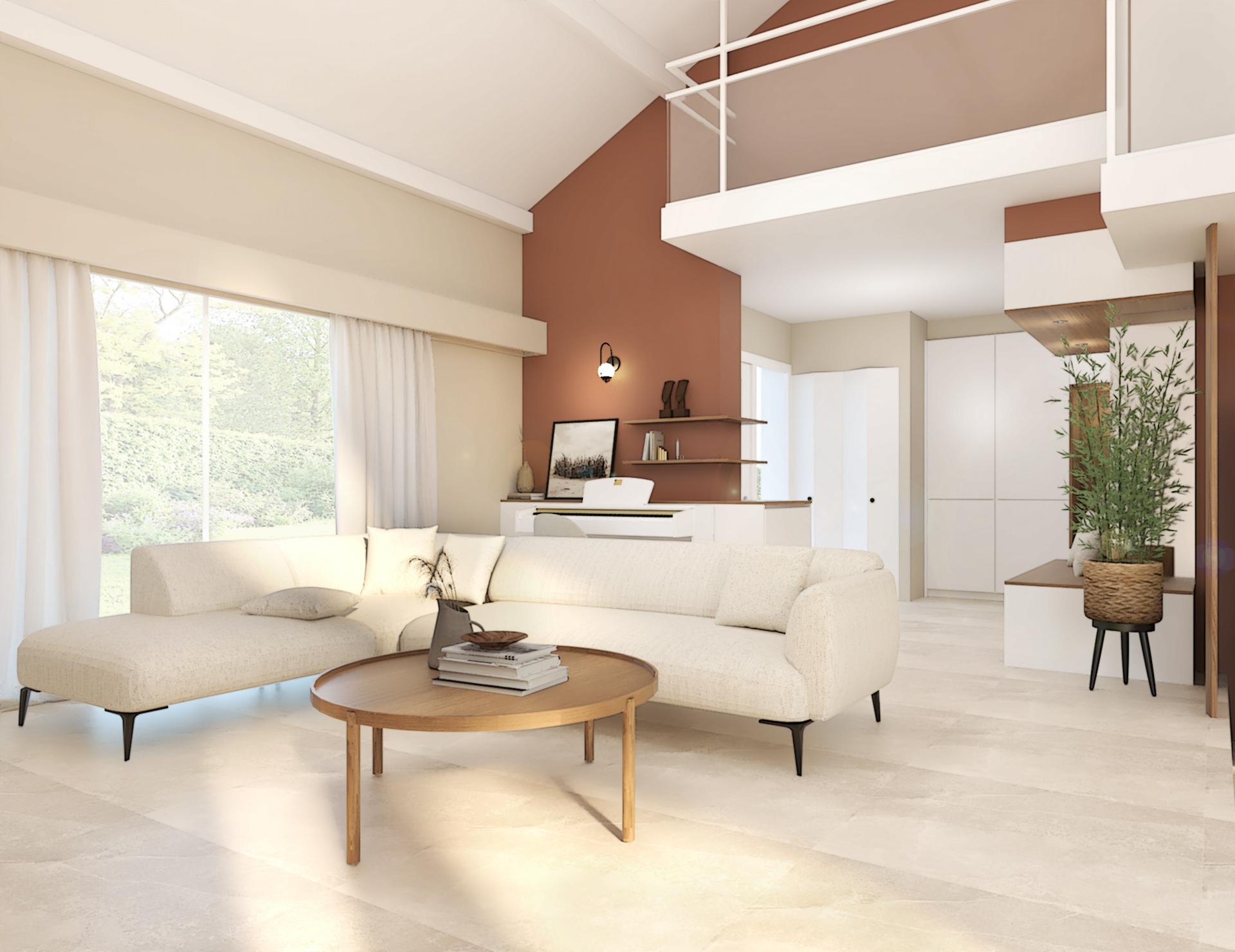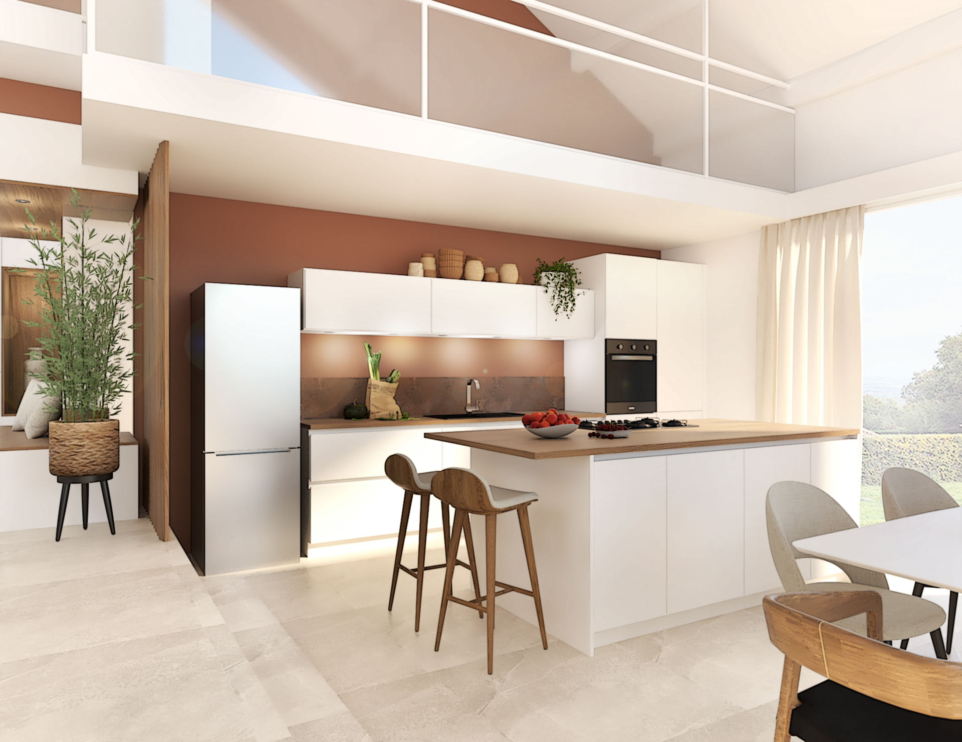 Cette splendide maison est idéalement située dans la région des Monts d’Or au coeur de la nature. La propriété propose un spacieux et lumineux séjour. La vue imprenable sur les montagnes nous offre en un réel tableau. Il fallait trouver une décoration en lien avec la nature, sans artifice. Nous avons donc opté pour une ambiance chaleureuse dans des teintes « terre-cuite ». Cette ambiance est éclaircie par des tissus beiges et blancs, cela permet de ne pas ajouter davantages d’informations visuelles. Coté panorama, des murs blanc permettent de faire ressortir ce beau paysage. Des rappels de bois un peu partout réchauffent le séjour avec authenticité.