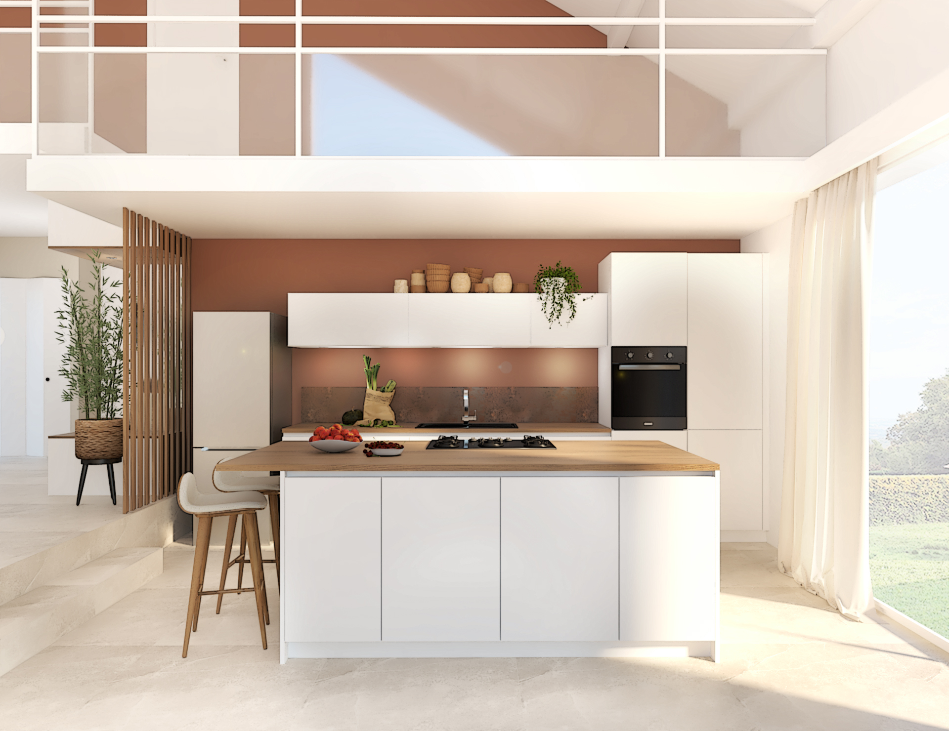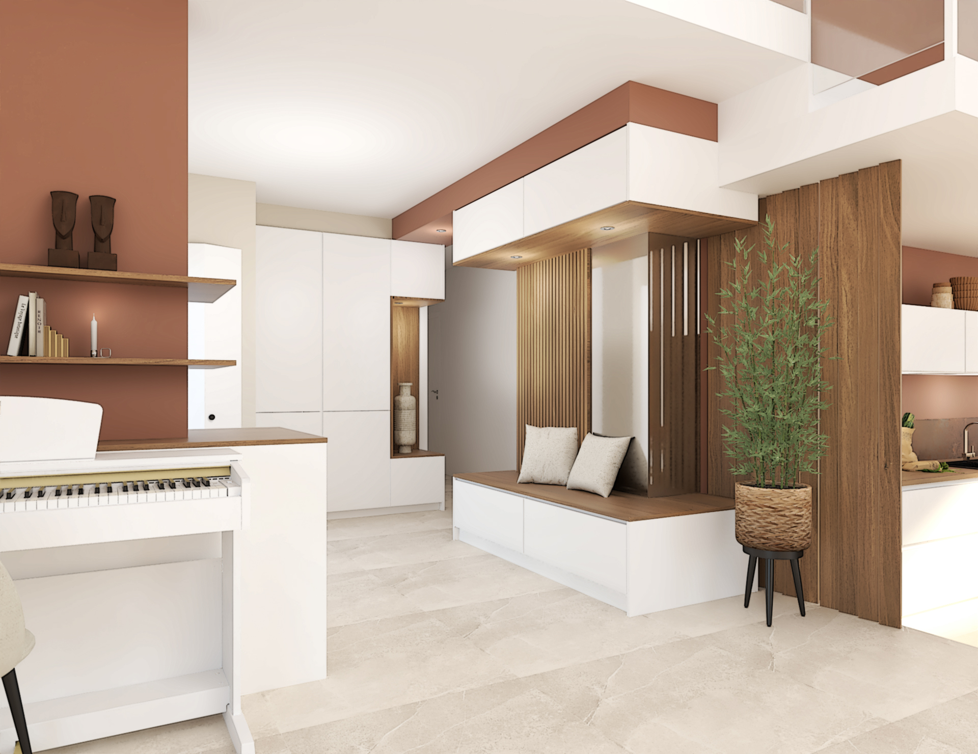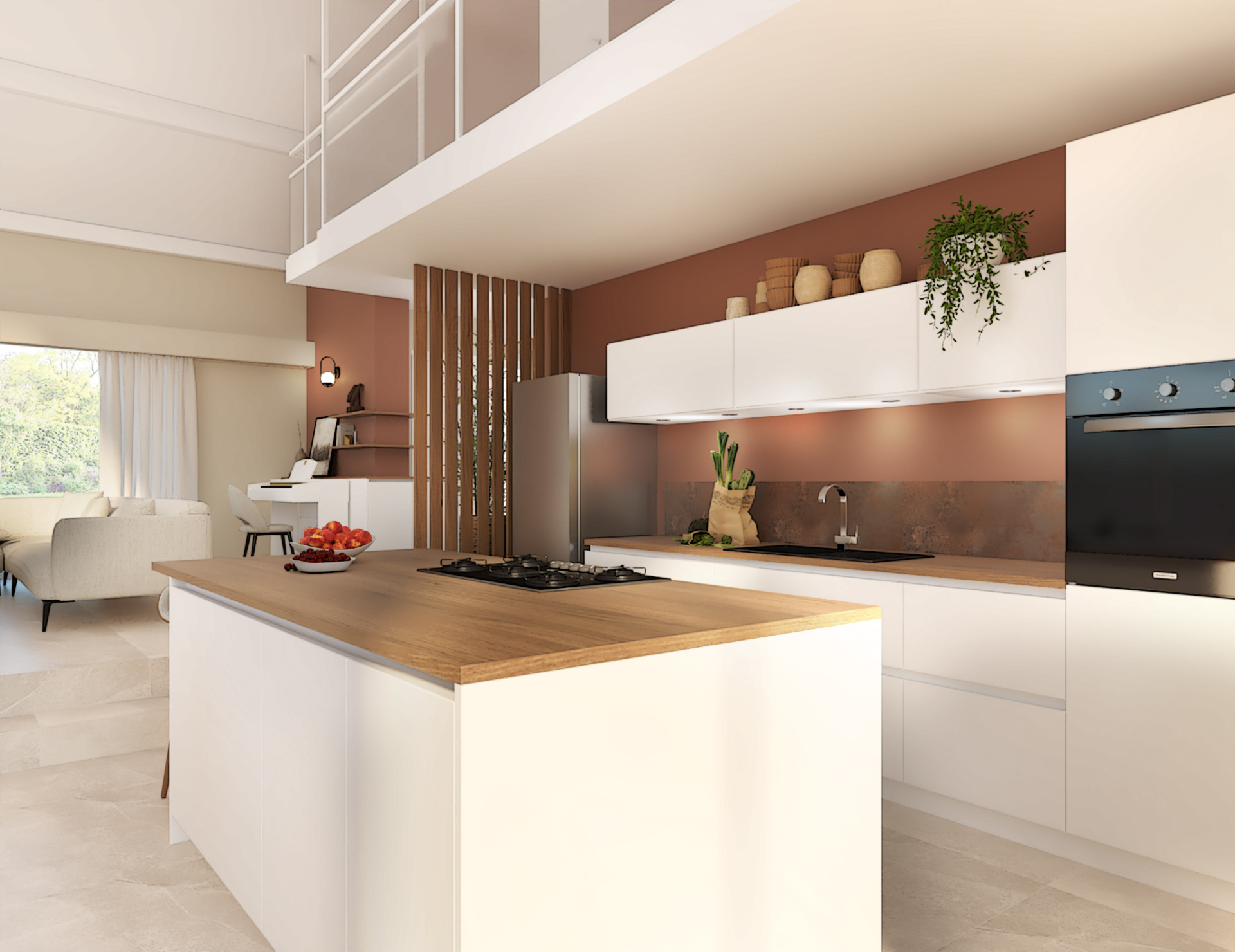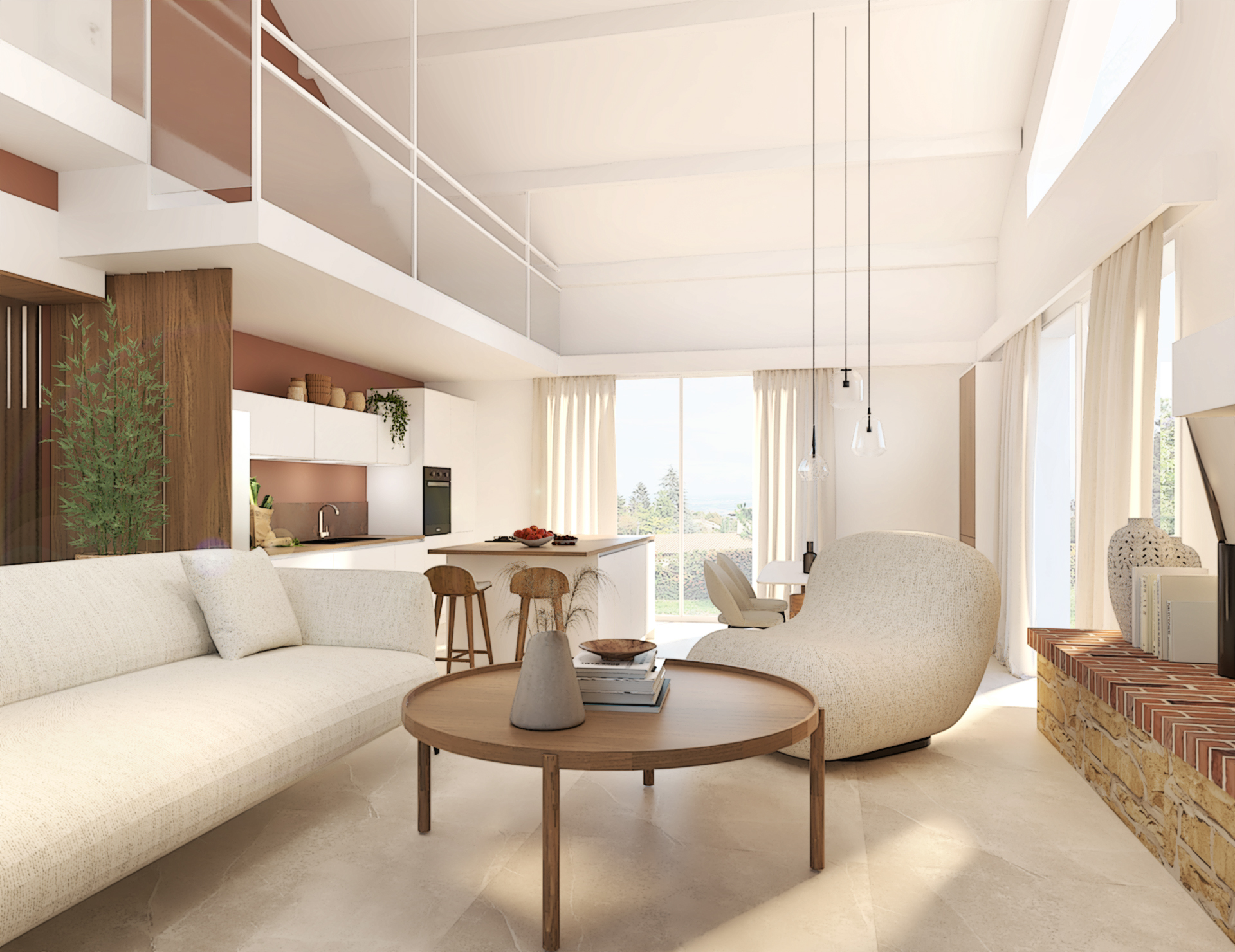 Cette splendide maison est idéalement située dans la région des Monts d’Or au coeur de la nature. La propriété propose un spacieux et lumineux séjour. La vue imprenable sur les montagnes nous offre en un réel tableau. Il fallait trouver une décoration en lien avec la nature, sans artifice. Nous avons donc opté pour une ambiance chaleureuse dans des teintes « terre-cuite ». Cette ambiance est éclaircie par des tissus beiges et blancs, cela permet de ne pas ajouter davantages d’informations visuelles. Coté panorama, des murs blanc permettent de faire ressortir ce beau paysage. Des rappels de bois un peu partout réchauffent le séjour avec authenticité.