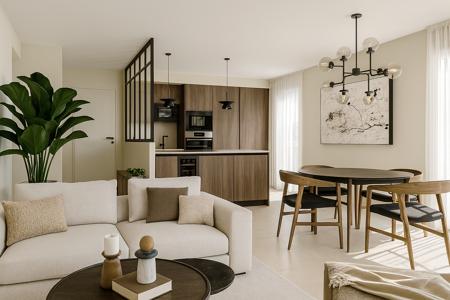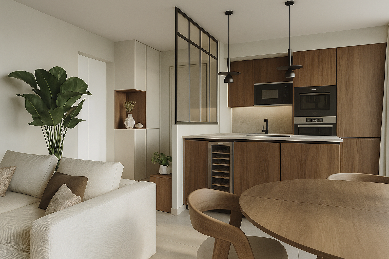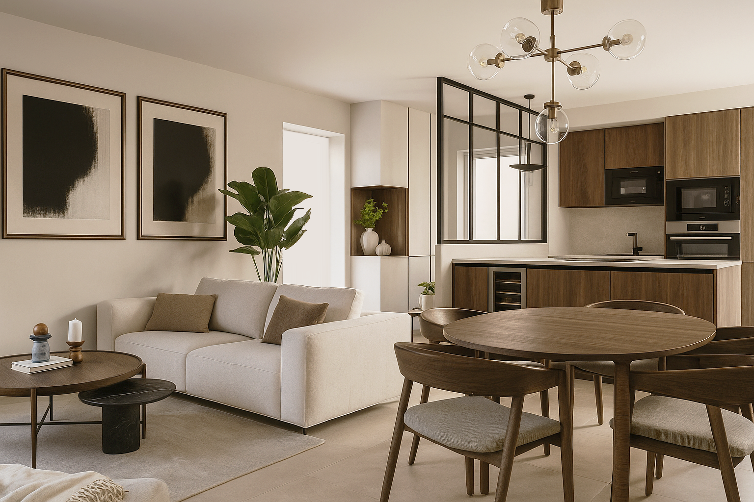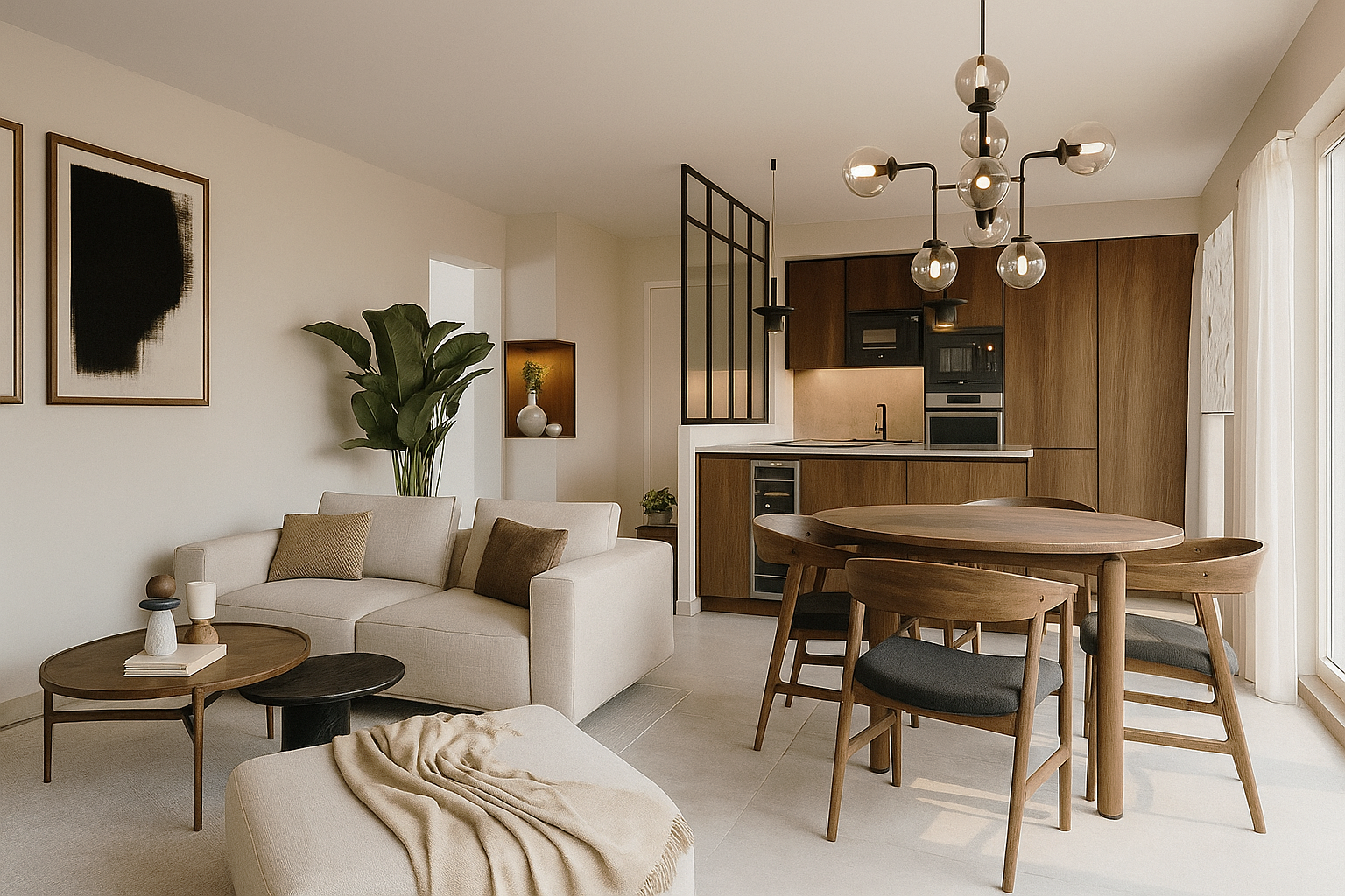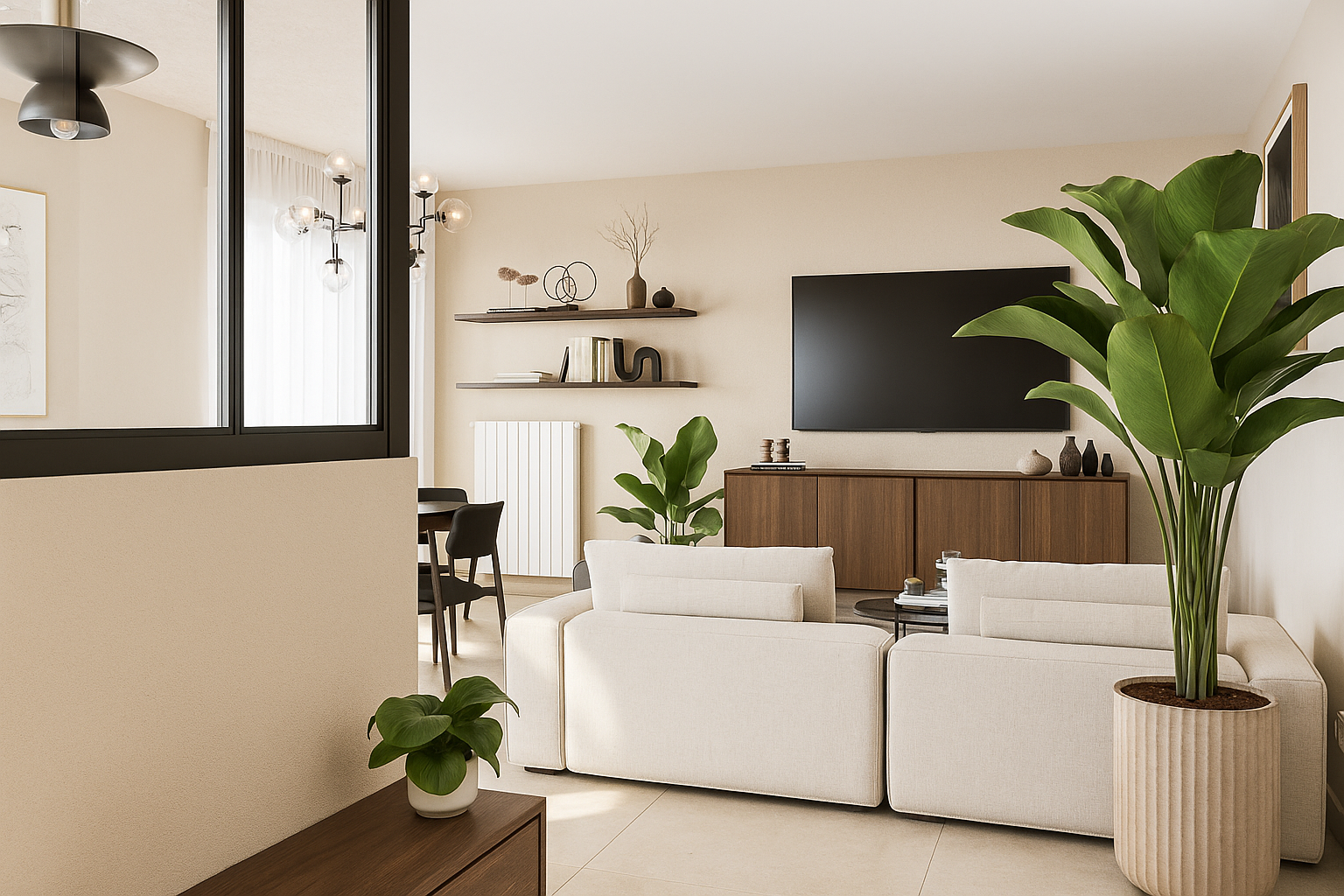 Cet appartement à LYON 09 propre une décoration contemporaine avec des touches industrielles