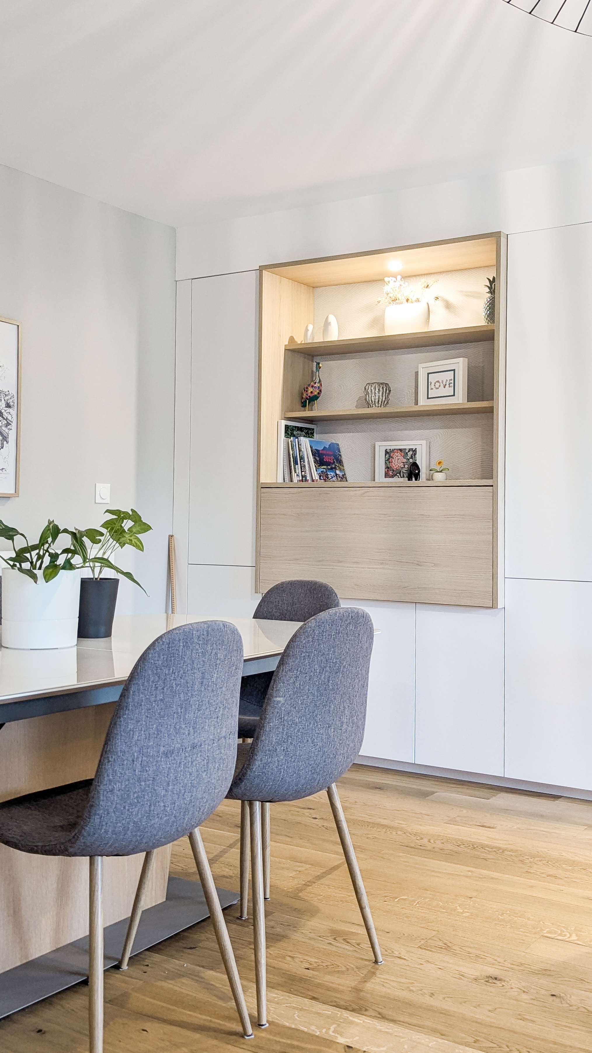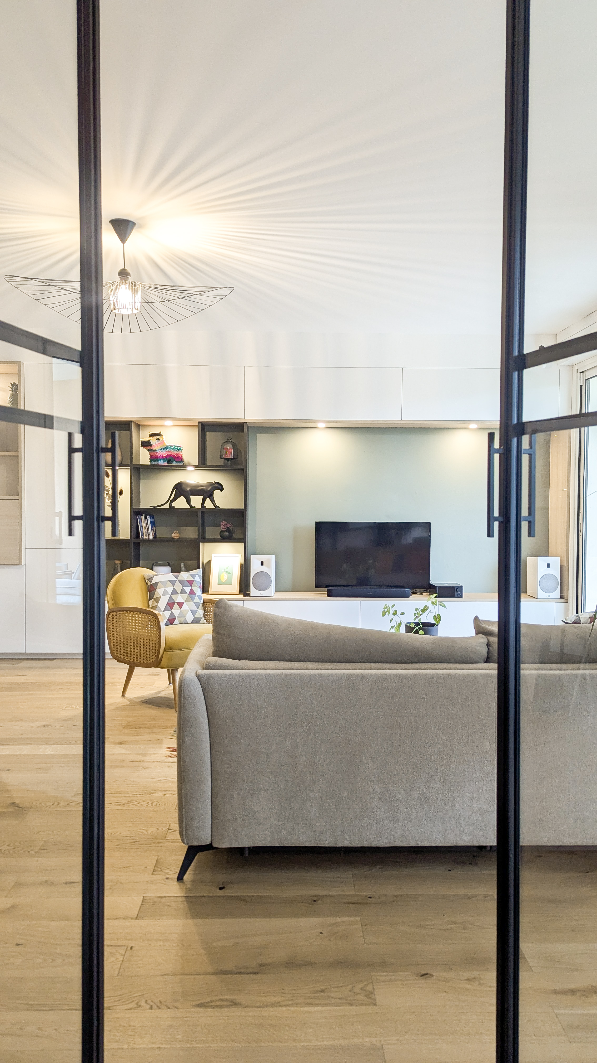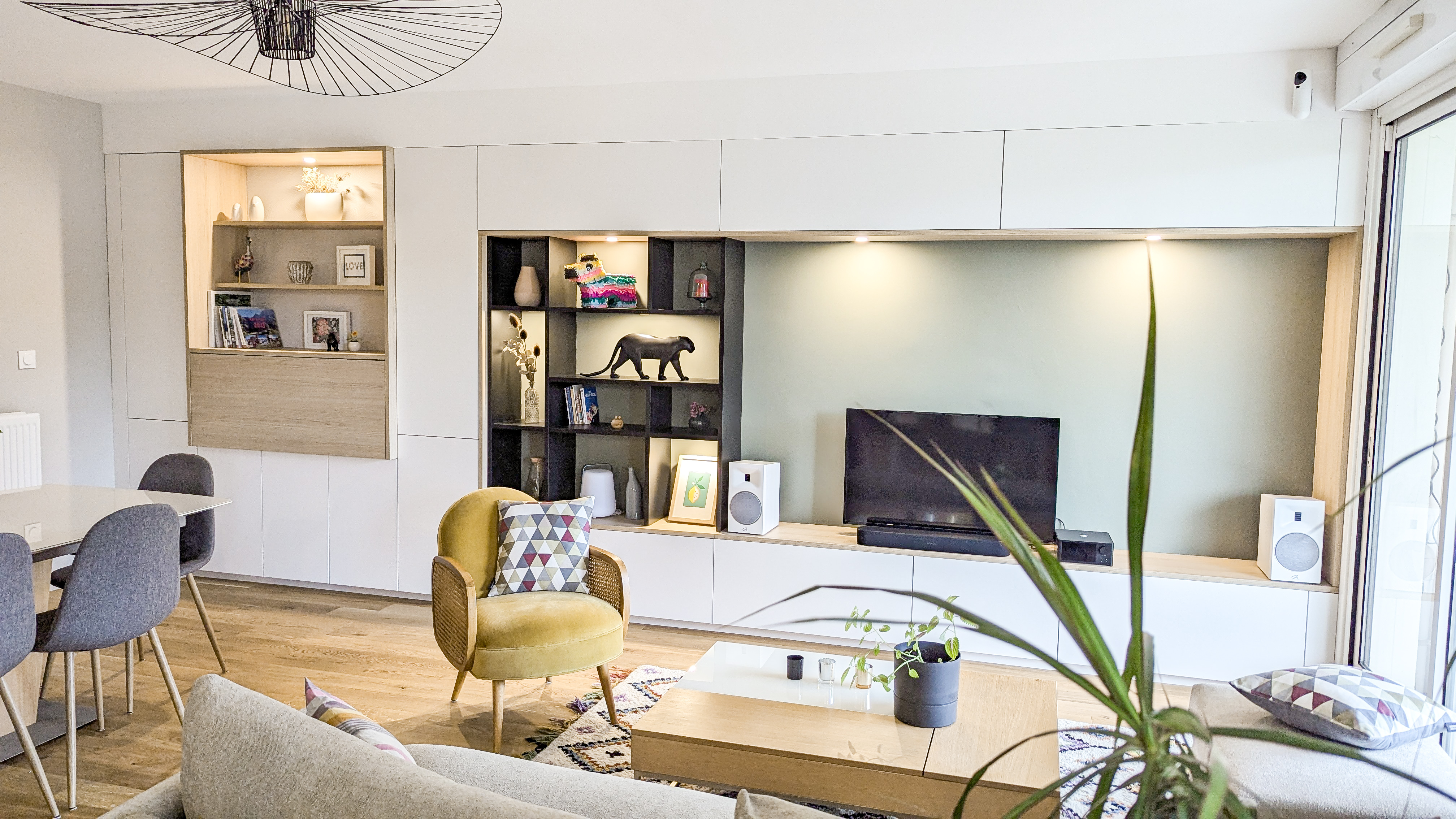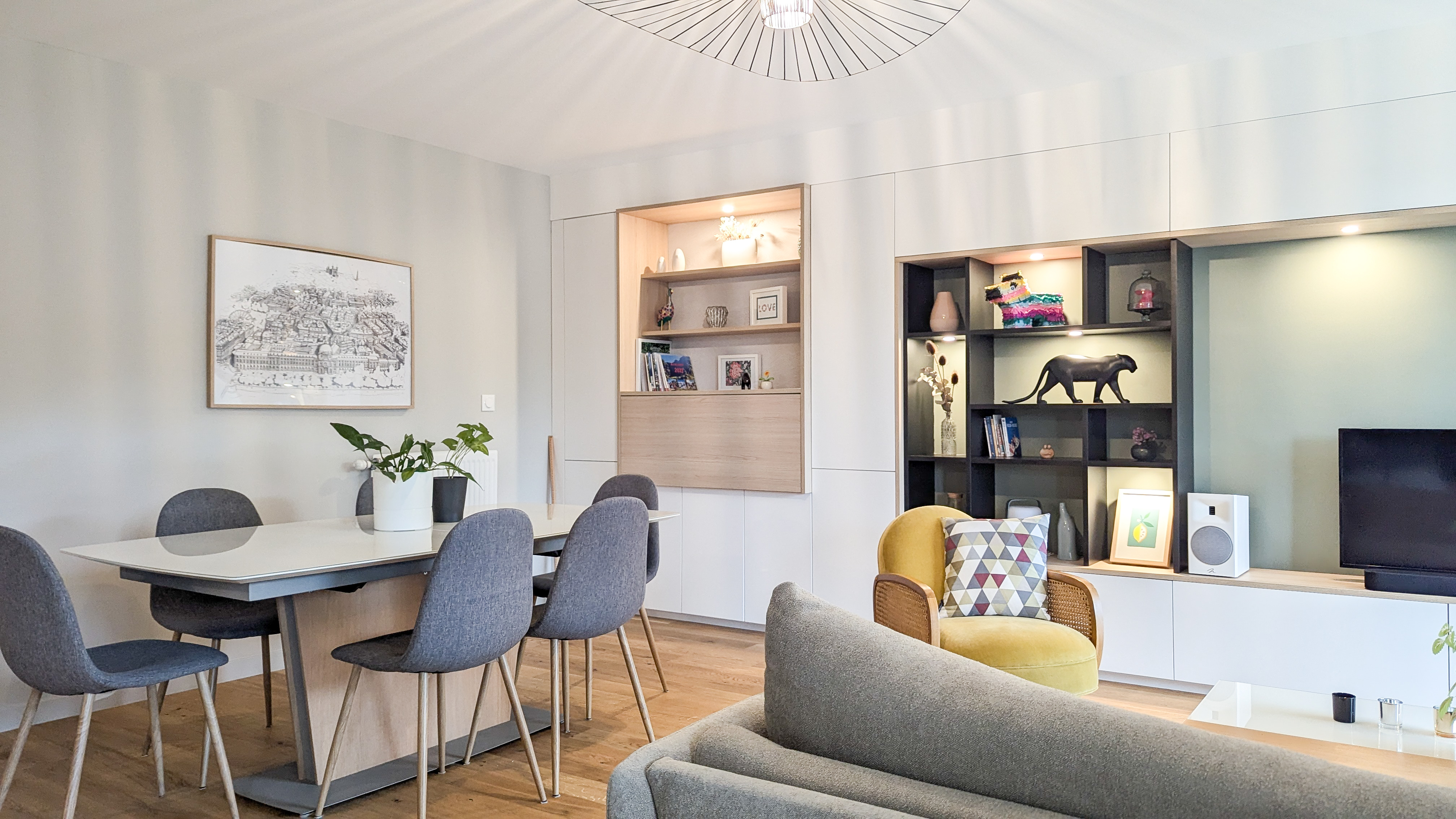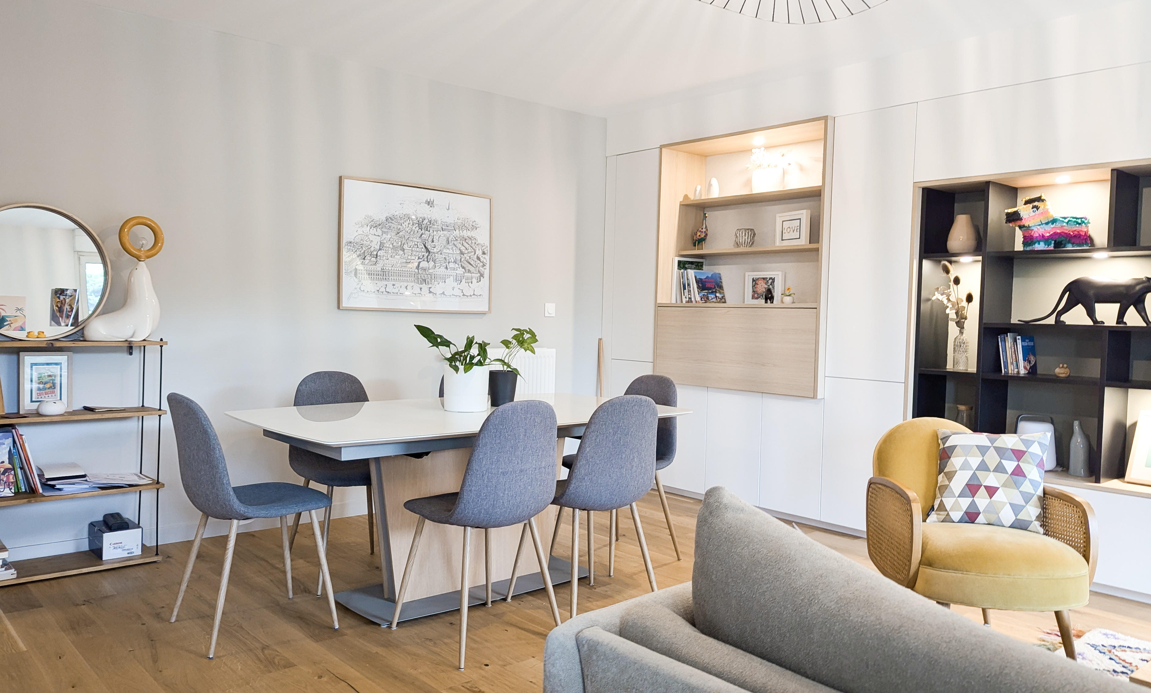 C’est à Ecully que se situe ce projet de rénovation. Une harmonie a été créée entre les différents espaces afin d’obtenir une continuité visuelle plus homogène. Par ailleurs, l’ouverture de la cuisine et de l’entrée était au centre du cahier des charges afin d’obtenir un seul espace plus vaste et lumineux mais sans être trop ouvert.