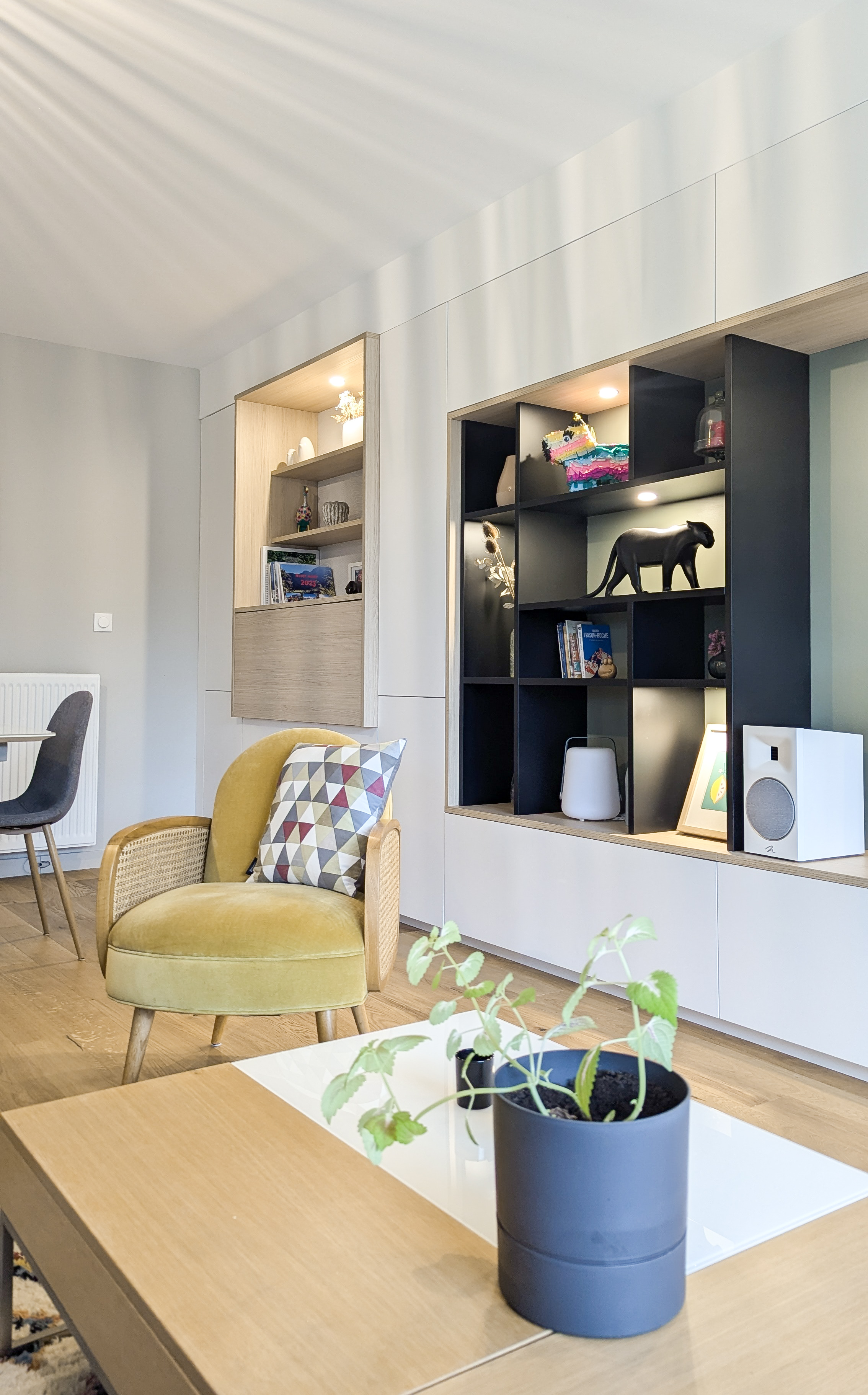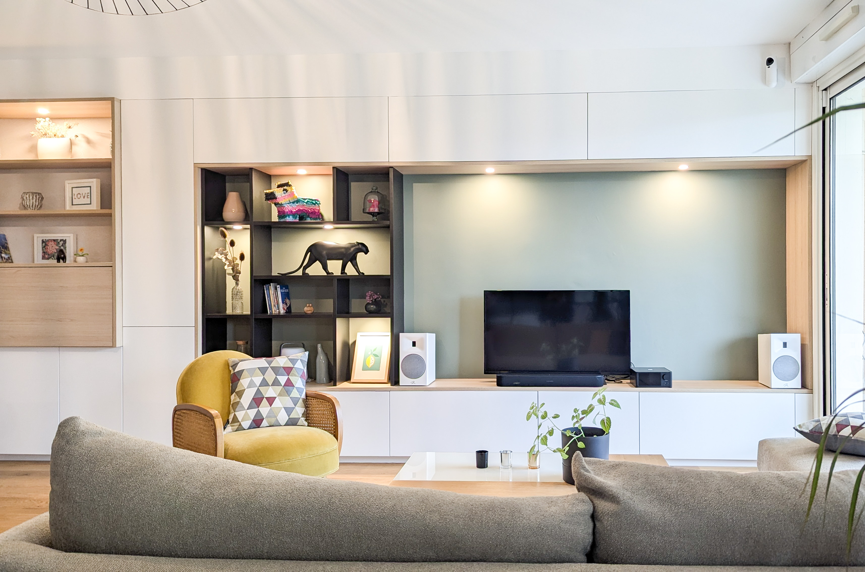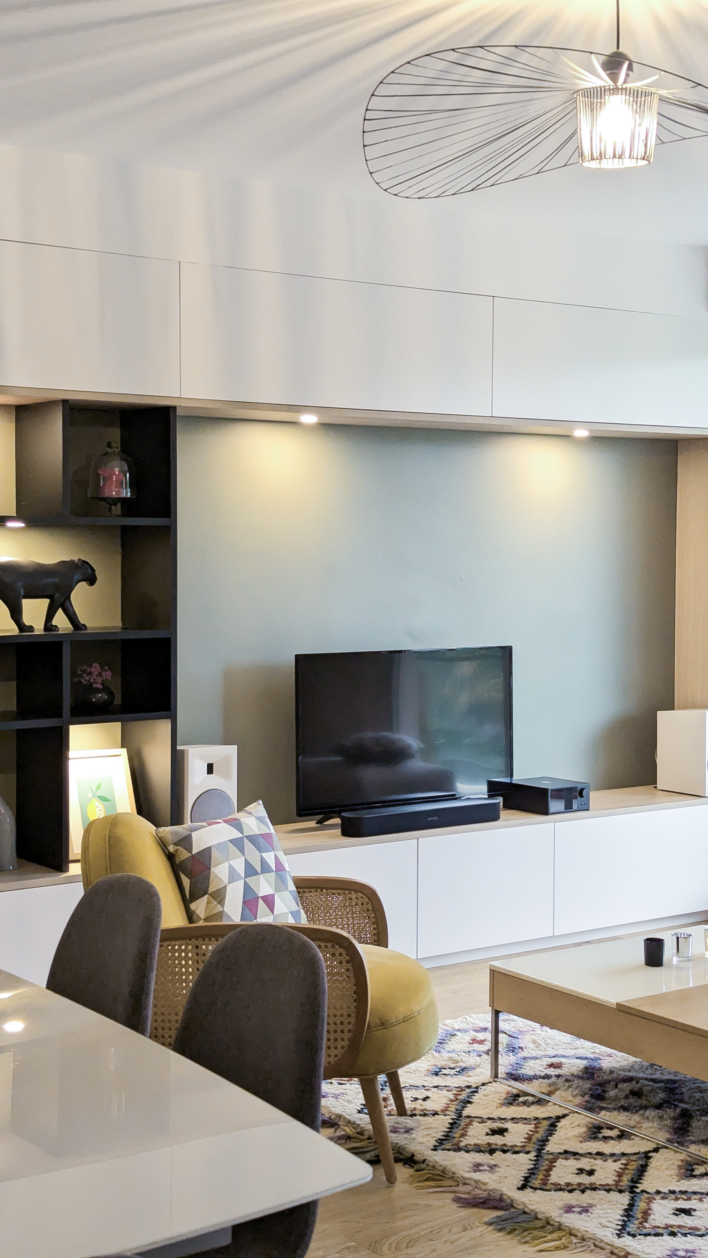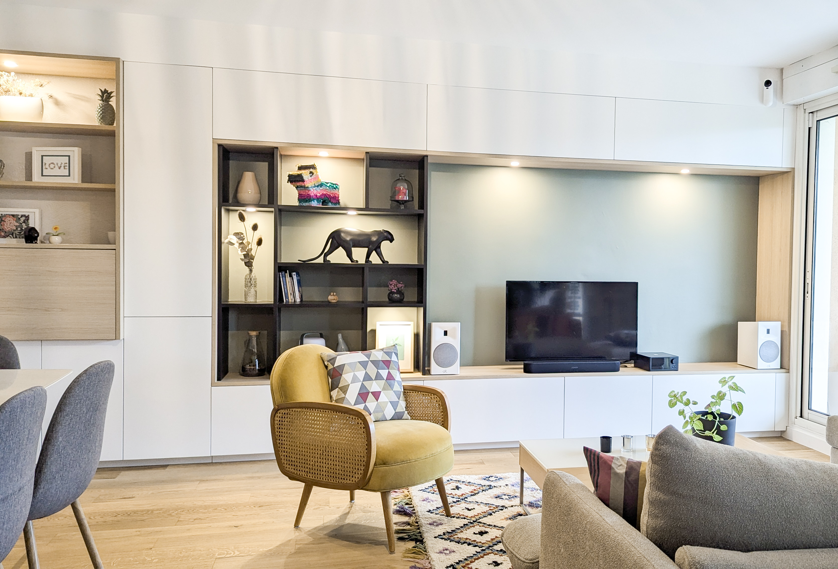 C’est à Ecully que se situe ce projet de rénovation. Une harmonie a été créée entre les différents espaces afin d’obtenir une continuité visuelle plus homogène. Par ailleurs, l’ouverture de la cuisine et de l’entrée était au centre du cahier des charges afin d’obtenir un seul espace plus vaste et lumineux mais sans être trop ouvert.