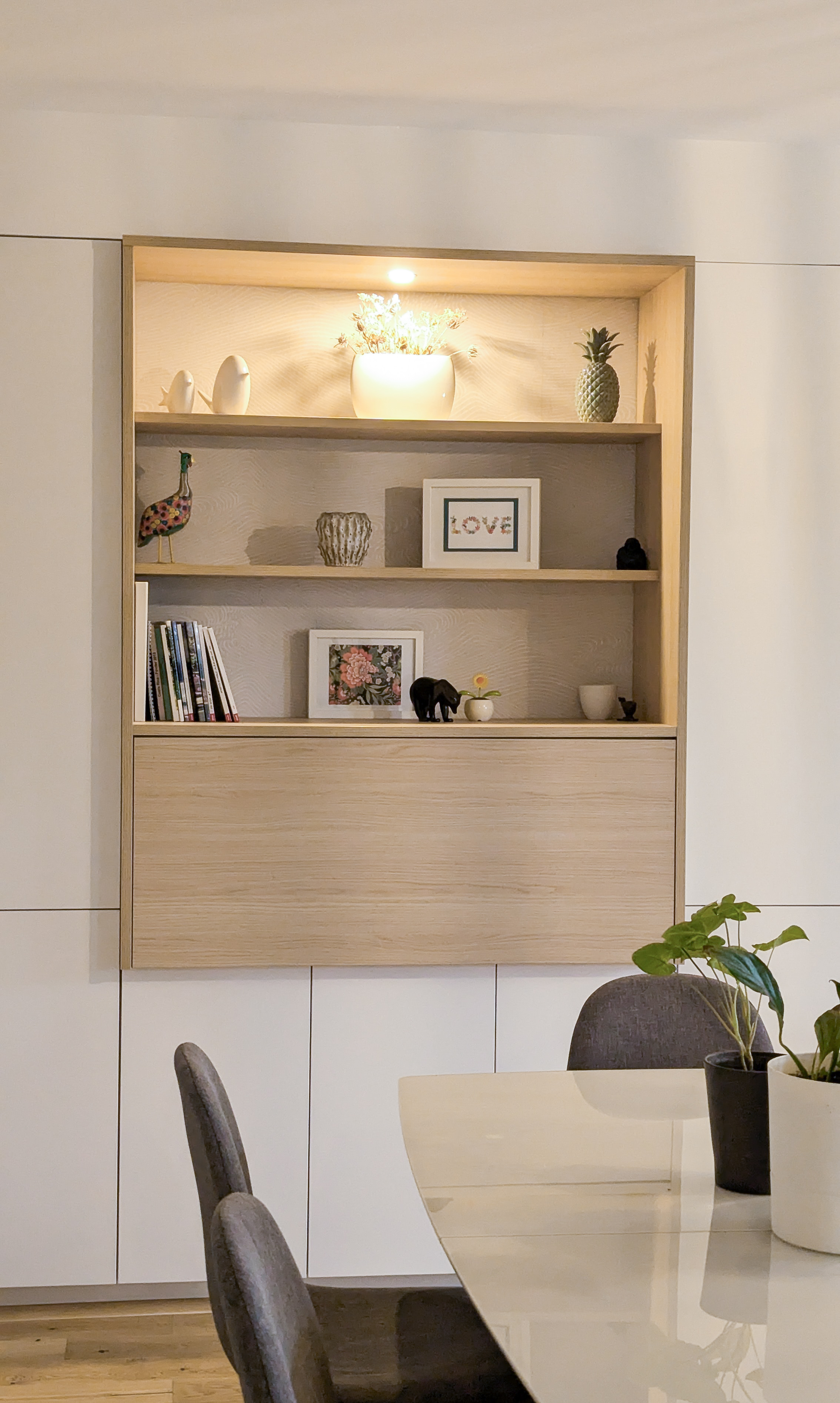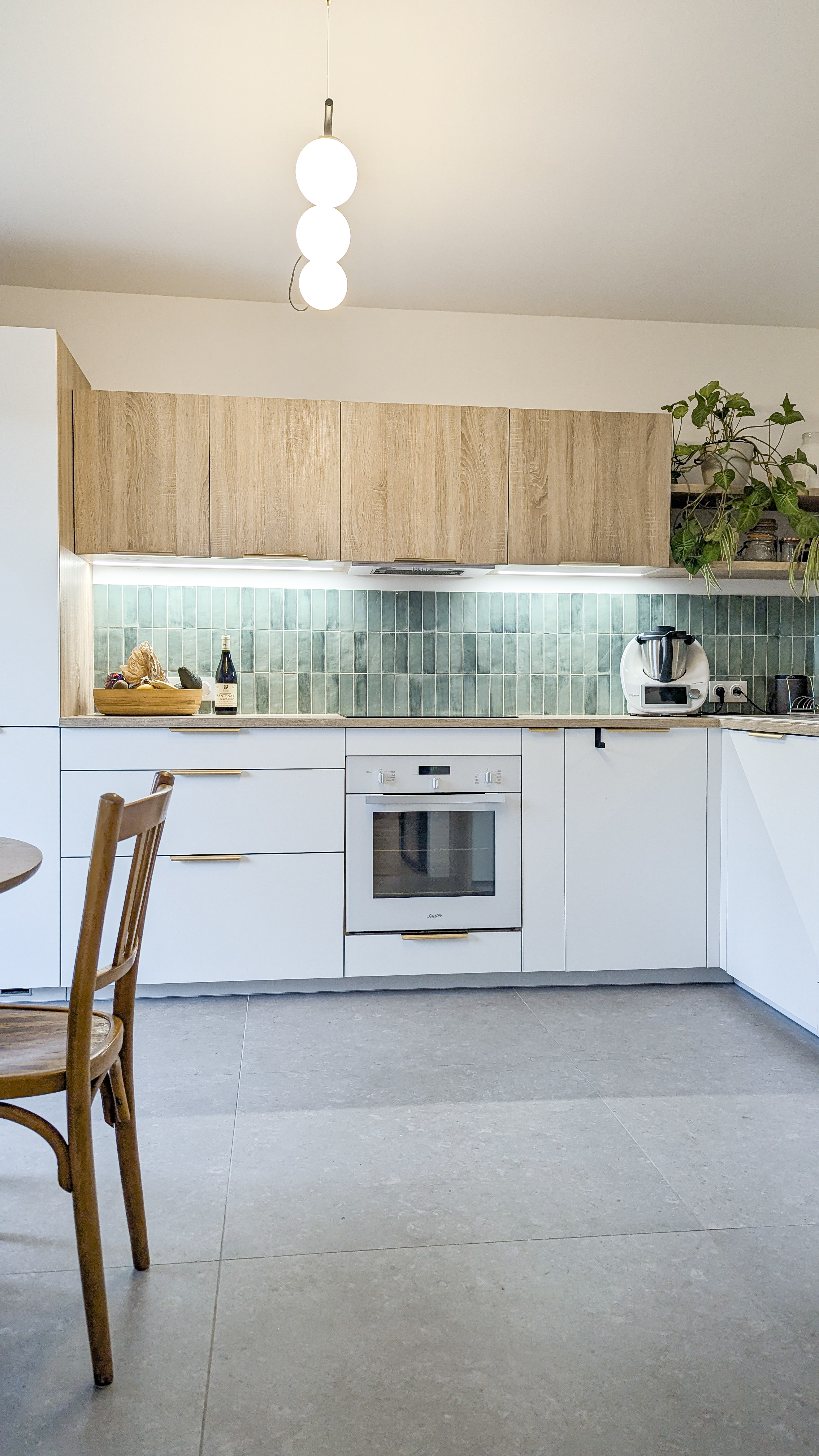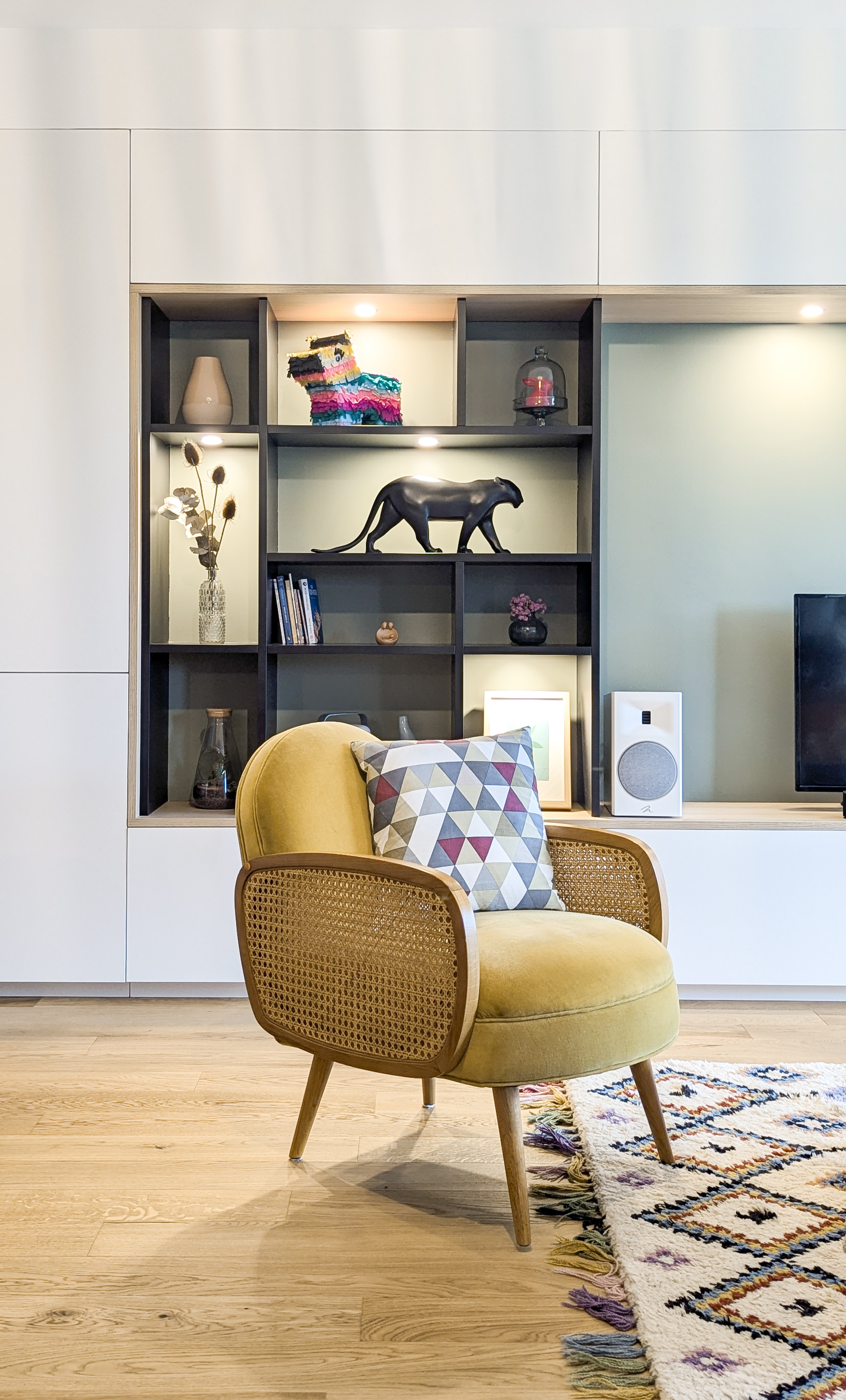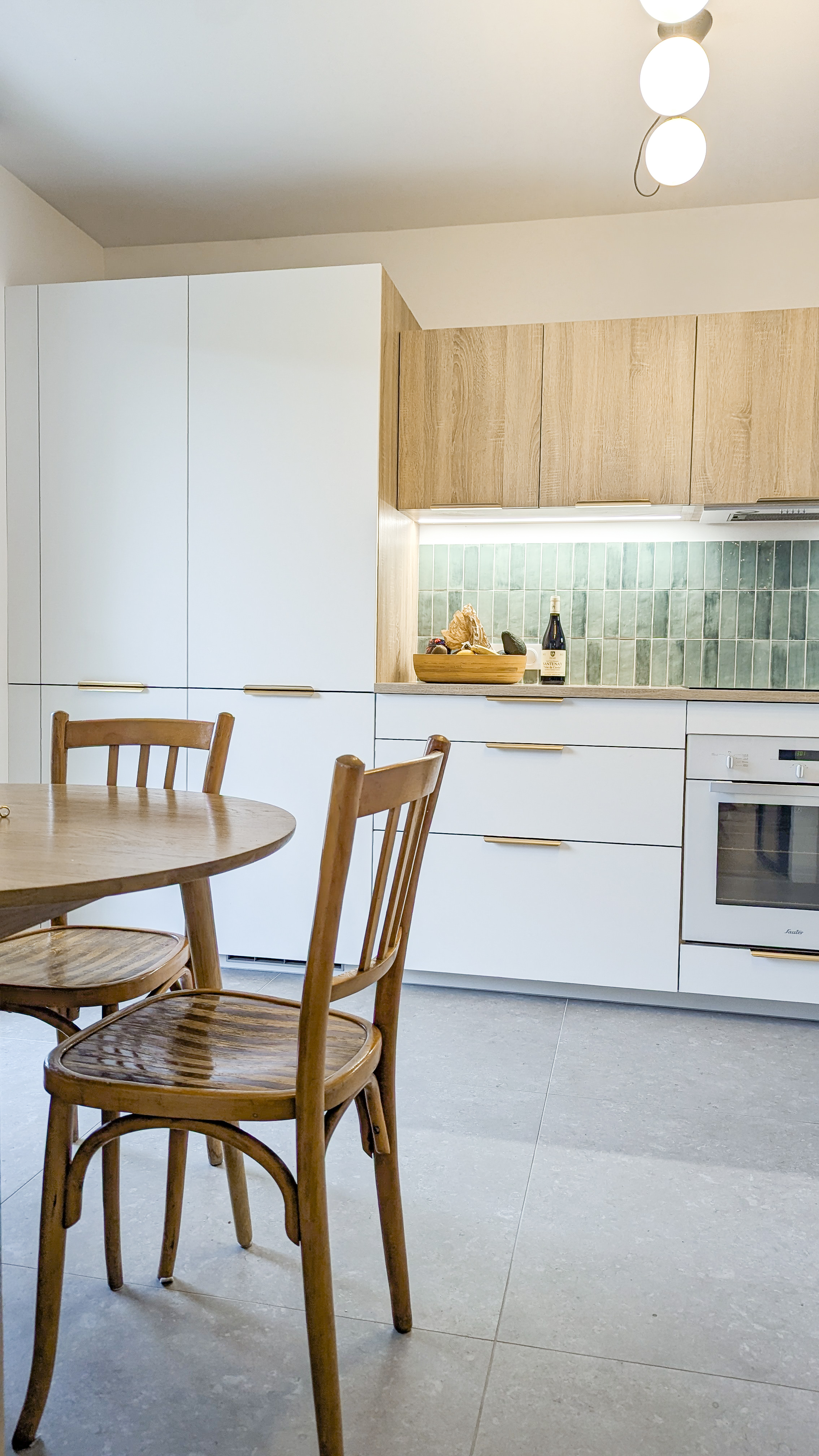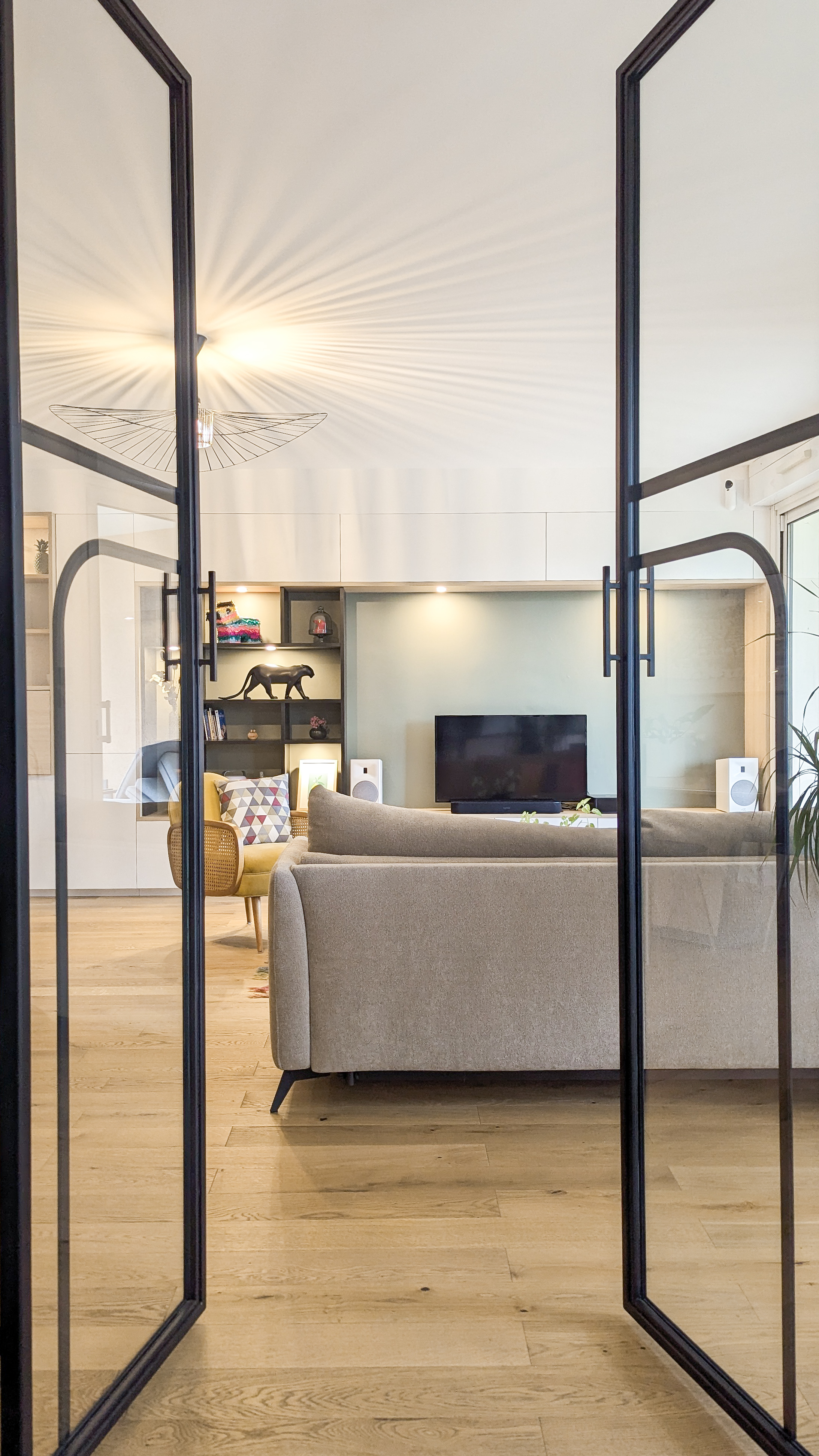 C’est à Ecully que se situe ce projet de rénovation. Une harmonie a été créée entre les différents espaces afin d’obtenir une continuité visuelle plus homogène. Par ailleurs, l’ouverture de la cuisine et de l’entrée était au centre du cahier des charges afin d’obtenir un seul espace plus vaste et lumineux mais sans être trop ouvert.