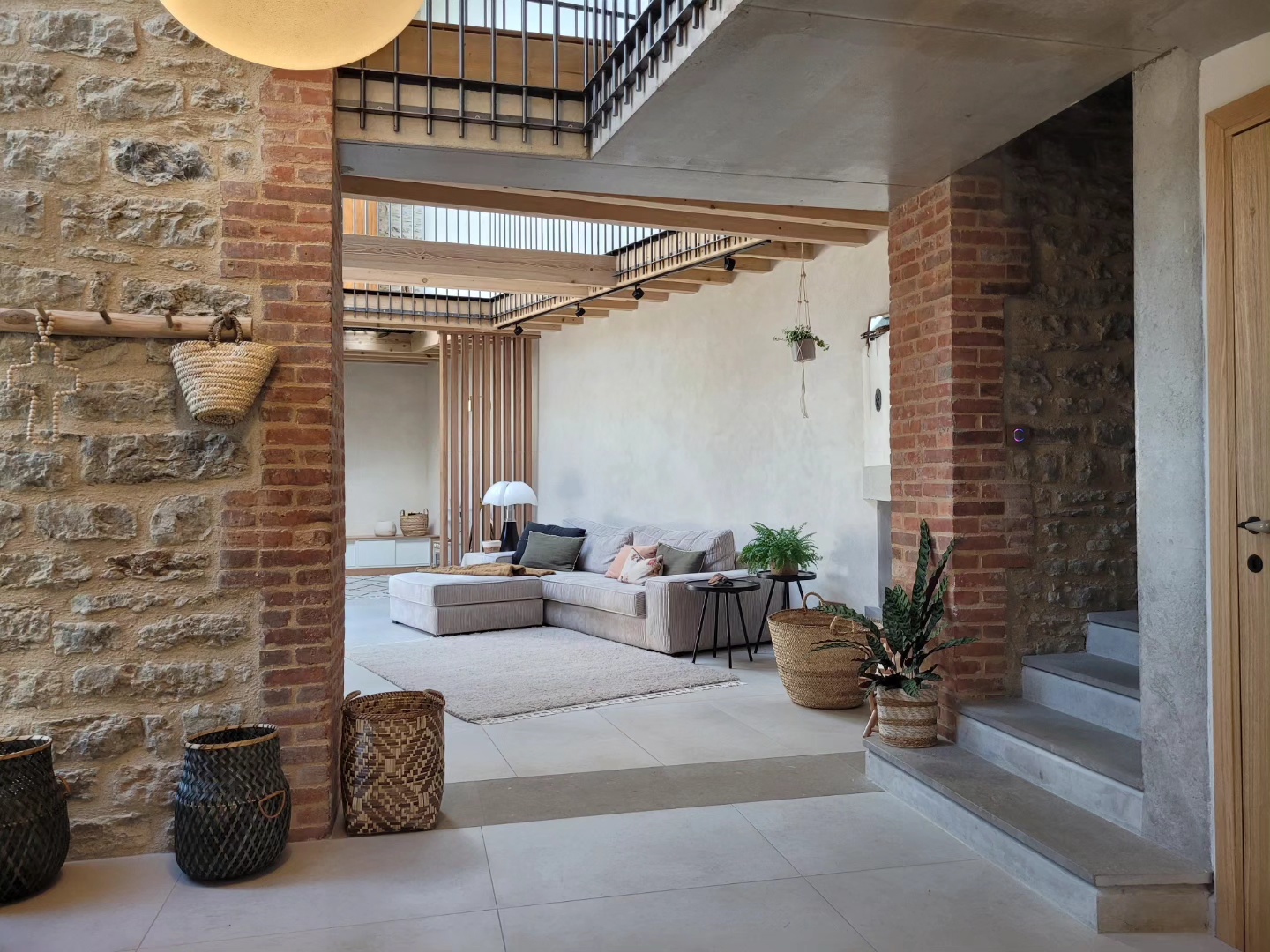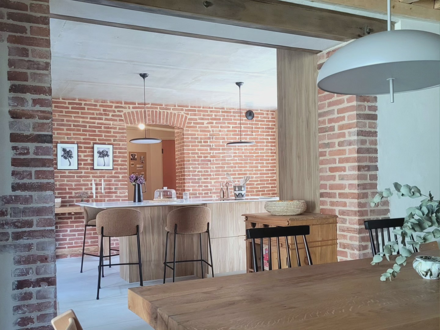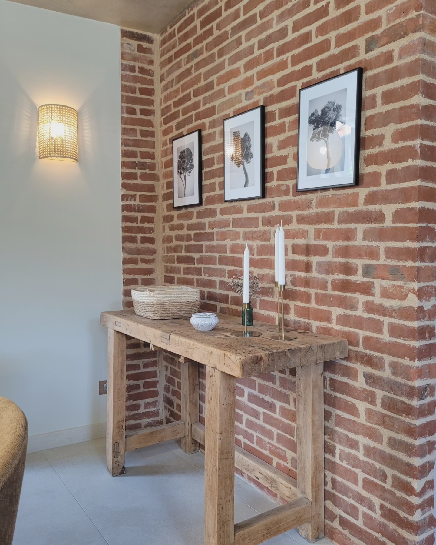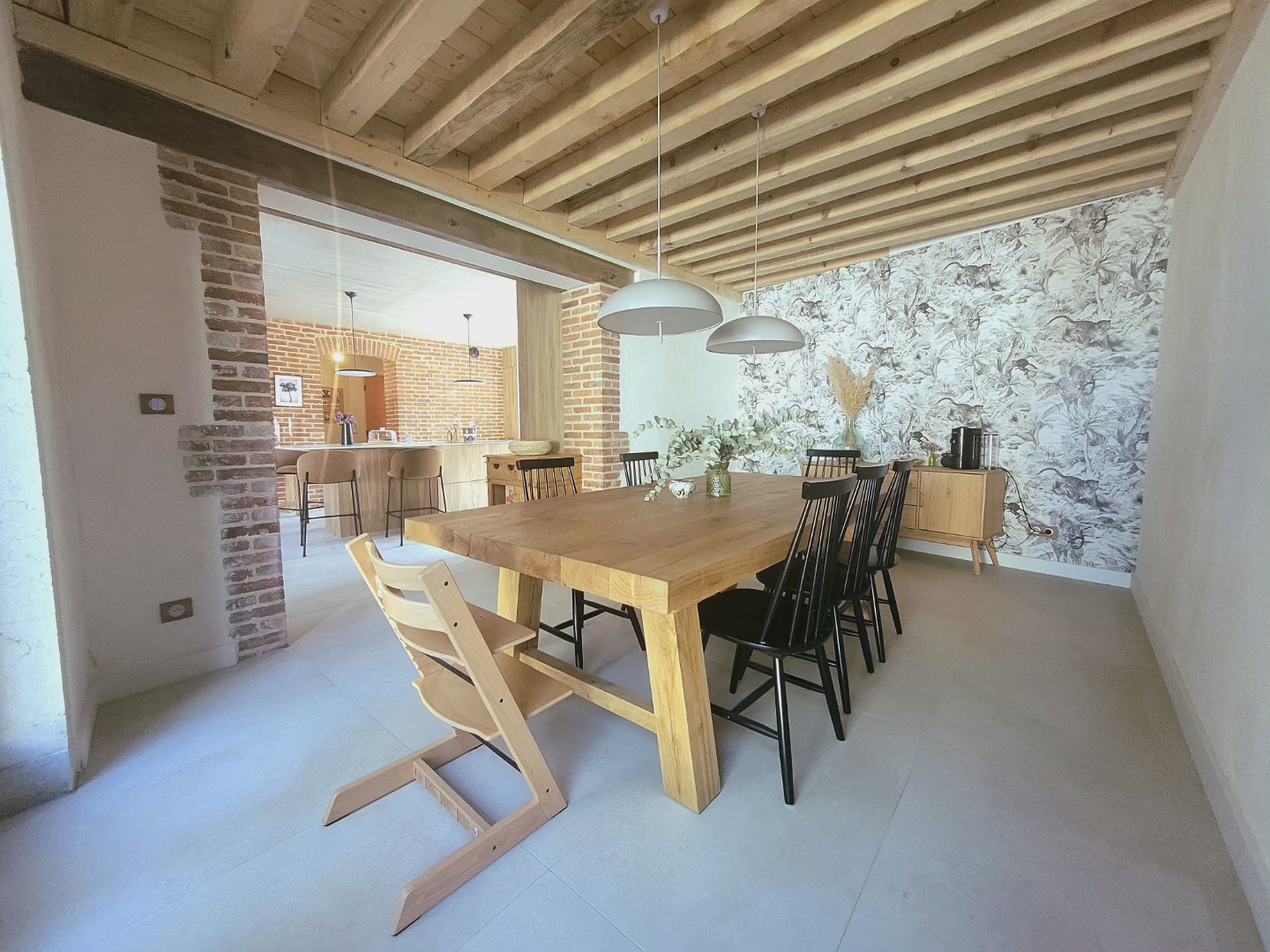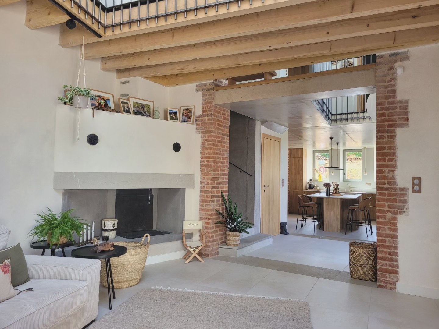 A l’origine cette bâtisse au coeur de la campagne était une grange. Mes clients ont fait appel à un architecte pour élaborer la structure intérieur et extérieur de la bâtisse. Puis je suis intervenue pour l’aménagement et la décoration intérieure de la maison entière. Pour la partie décoration j’ai travailler en collaboration avec @paulinea.n.d.r.e spécialisée dans le style « campagne-authentique ». Les pierres rouges ont été conservées pour garder l’âme de la maison. De la chaux beige aux murs et un carrelage imitation pierre naturelle pour resté dans le style authentique de la bâtisse. Des touches de modernité ont été placées dans les meubles et la décoration.