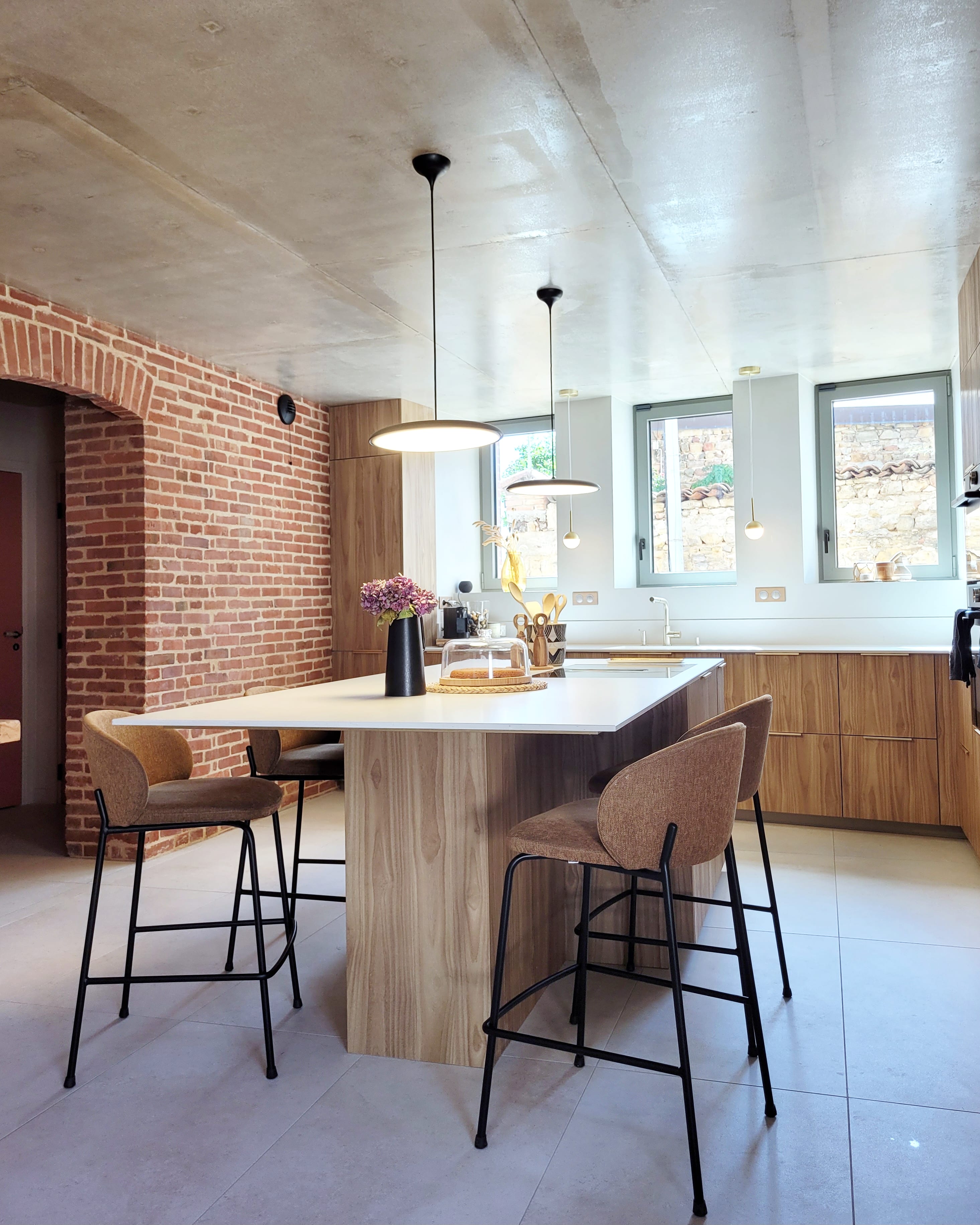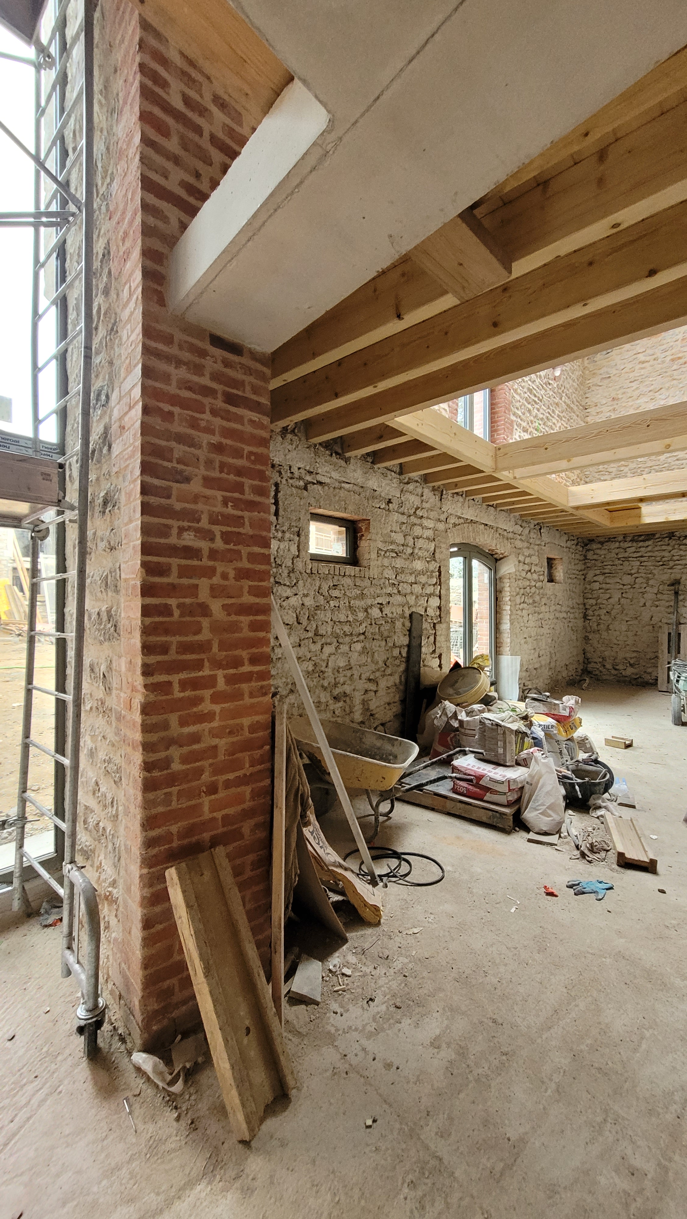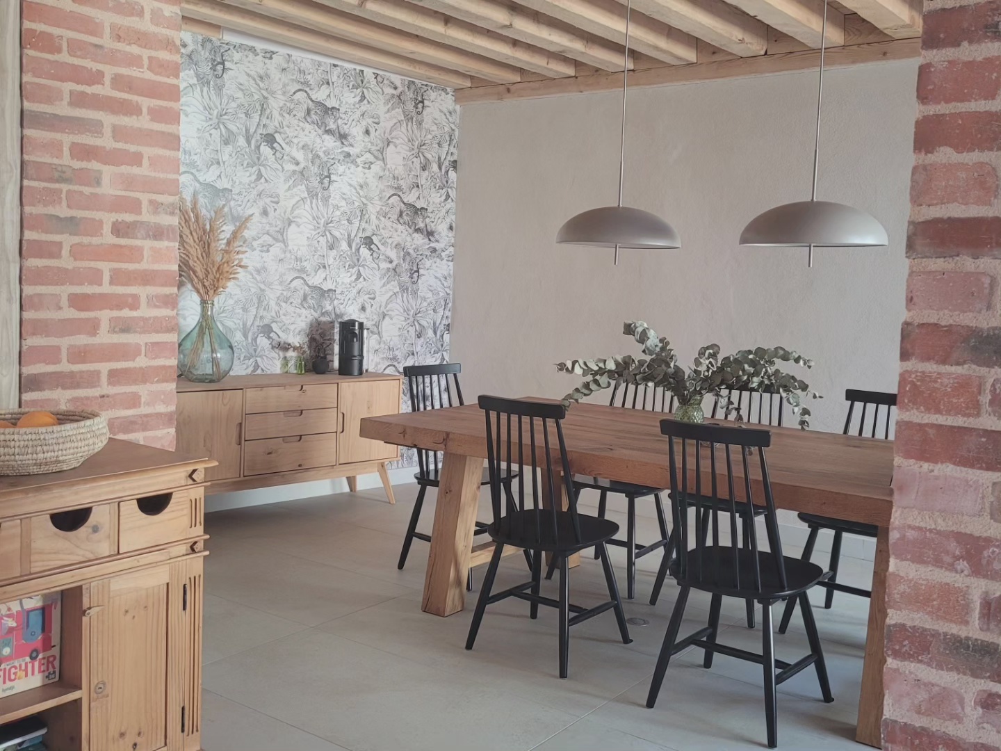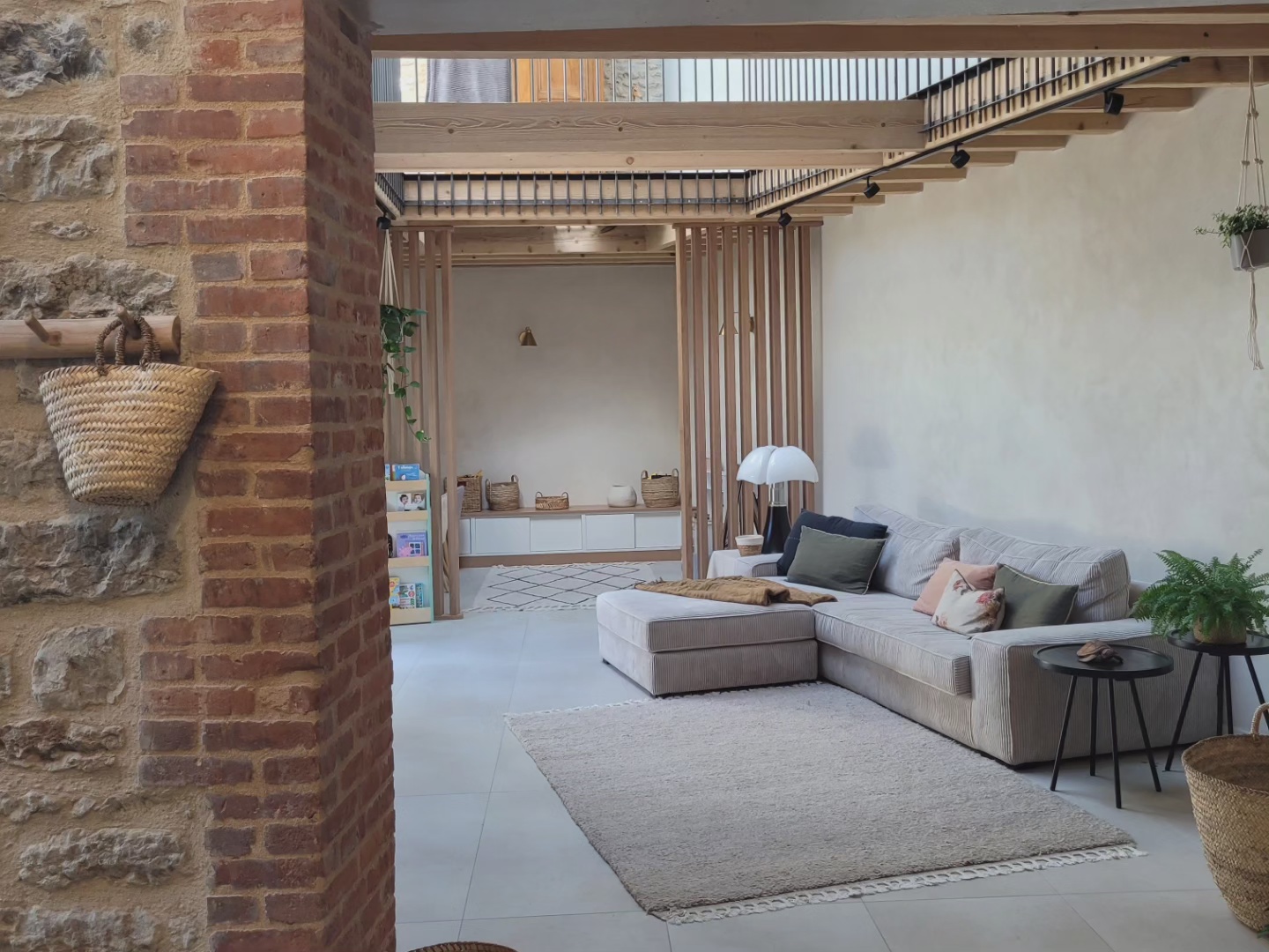 A l’origine cette bâtisse au coeur de la campagne était une grange. Mes clients ont fait appel à un architecte pour élaborer la structure intérieur et extérieur de la bâtisse. Puis je suis intervenue pour l’aménagement et la décoration intérieure de la maison entière. Pour la partie décoration j’ai travailler en collaboration avec @paulinea.n.d.r.e spécialisée dans le style « campagne-authentique ». Les pierres rouges ont été conservées pour garder l’âme de la maison. De la chaux beige aux murs et un carrelage imitation pierre naturelle pour resté dans le style authentique de la bâtisse. Des touches de modernité ont été placées dans les meubles et la décoration.