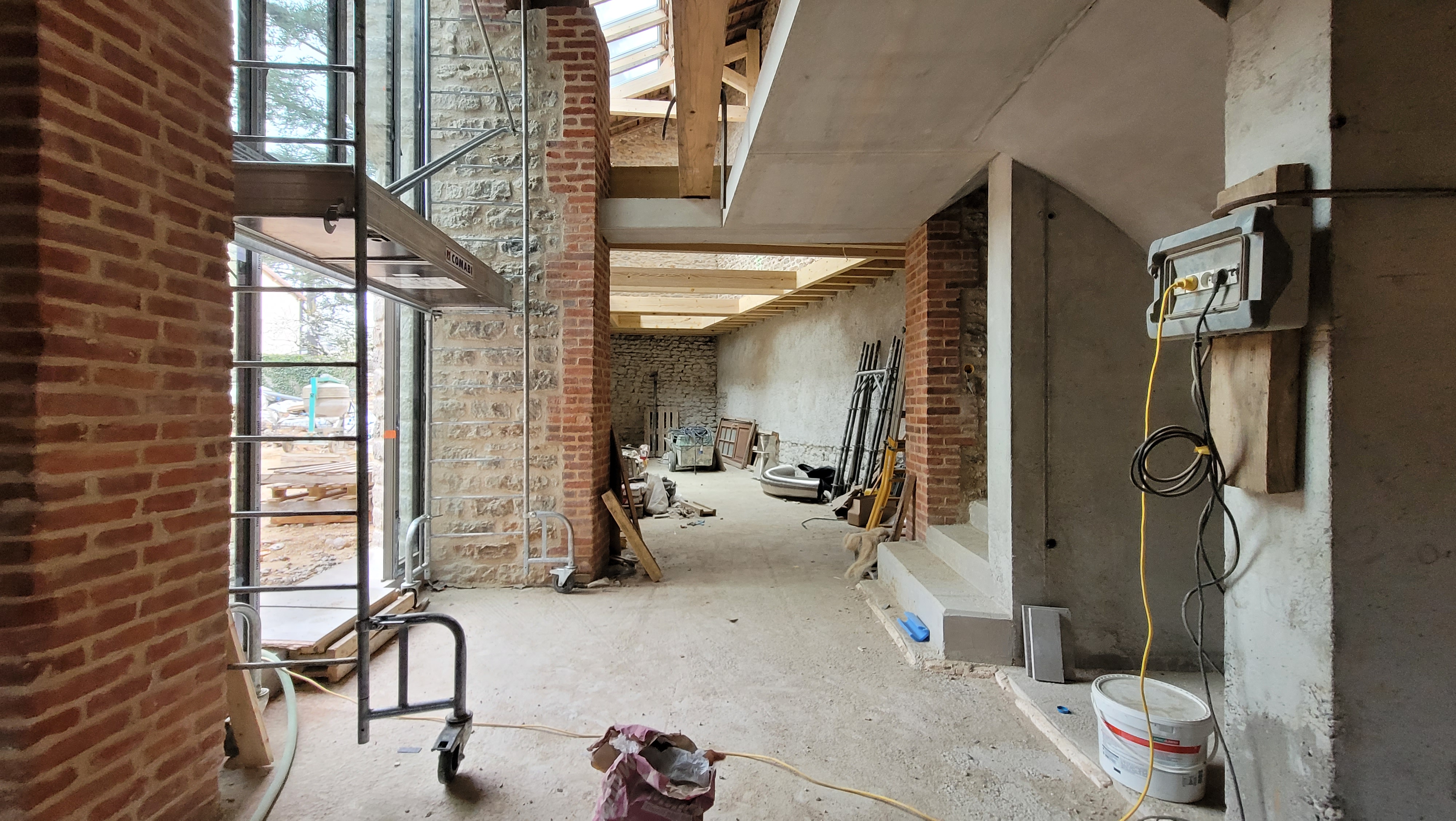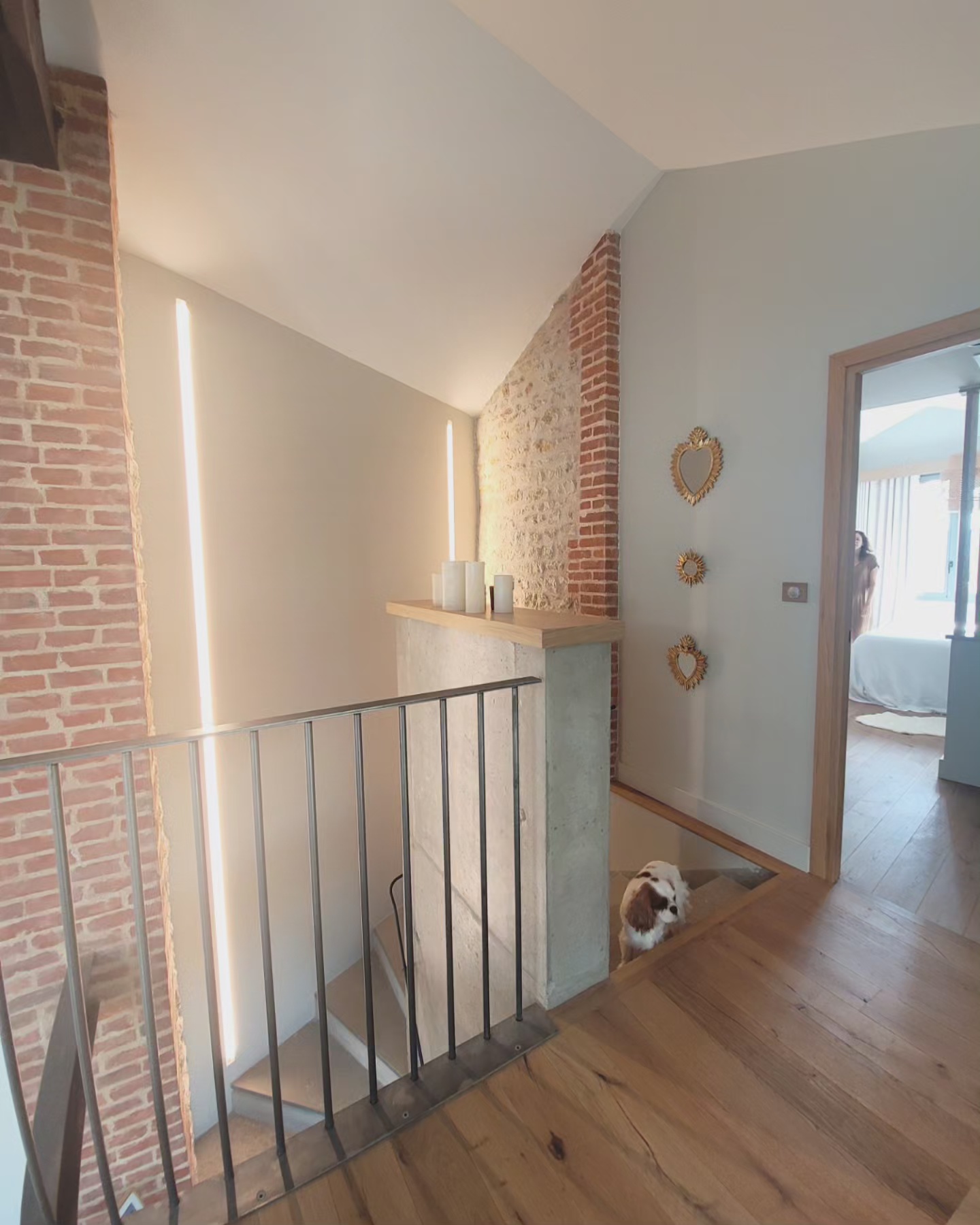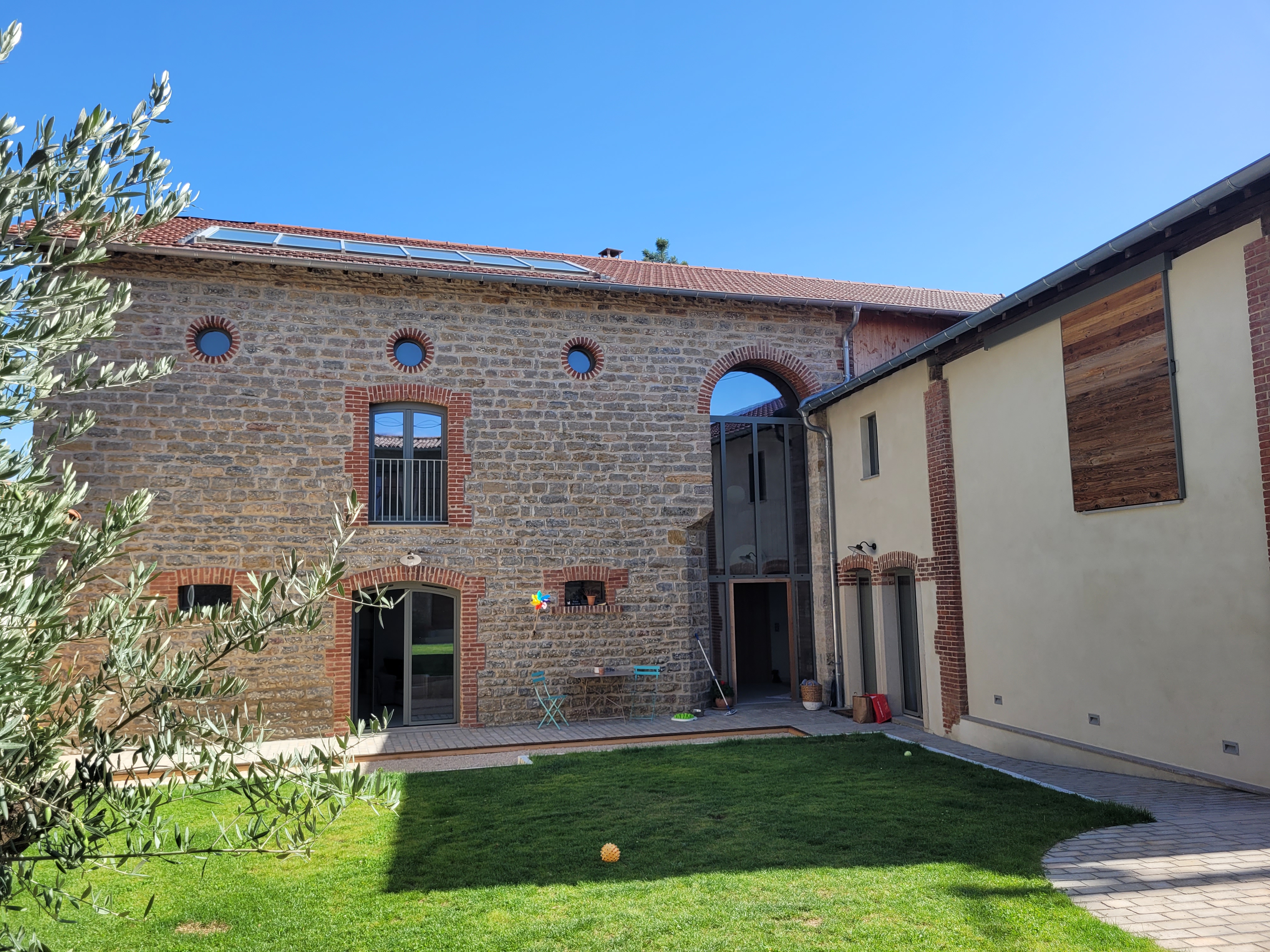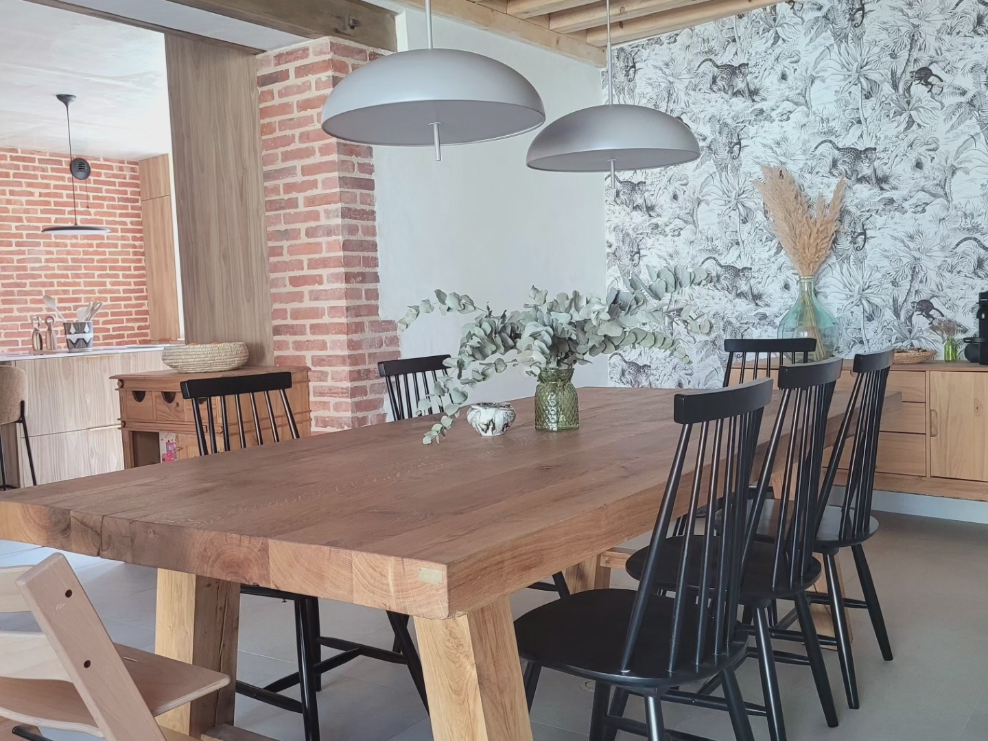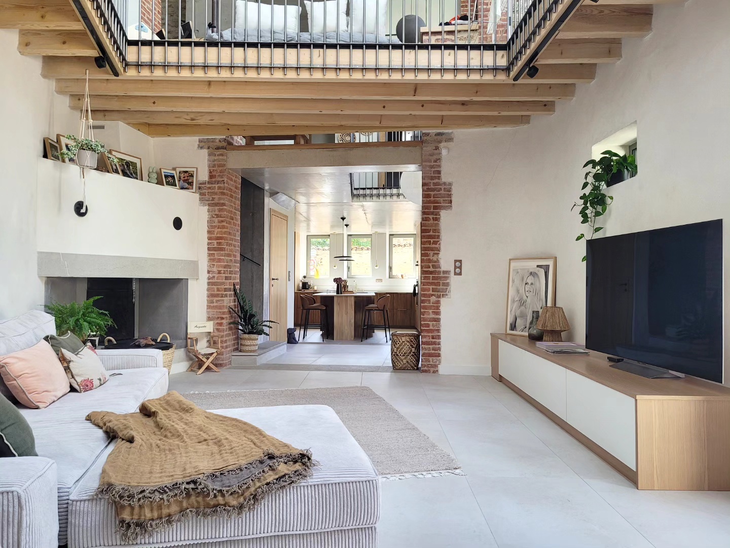 A l’origine cette bâtisse au coeur de la campagne était une grange. Mes clients ont fait appel à un architecte pour élaborer la structure intérieur et extérieur de la bâtisse. Puis je suis intervenue pour l’aménagement et la décoration intérieure de la maison entière. Pour la partie décoration j’ai travailler en collaboration avec @paulinea.n.d.r.e spécialisée dans le style « campagne-authentique ». Les pierres rouges ont été conservées pour garder l’âme de la maison. De la chaux beige aux murs et un carrelage imitation pierre naturelle pour resté dans le style authentique de la bâtisse. Des touches de modernité ont été placées dans les meubles et la décoration.