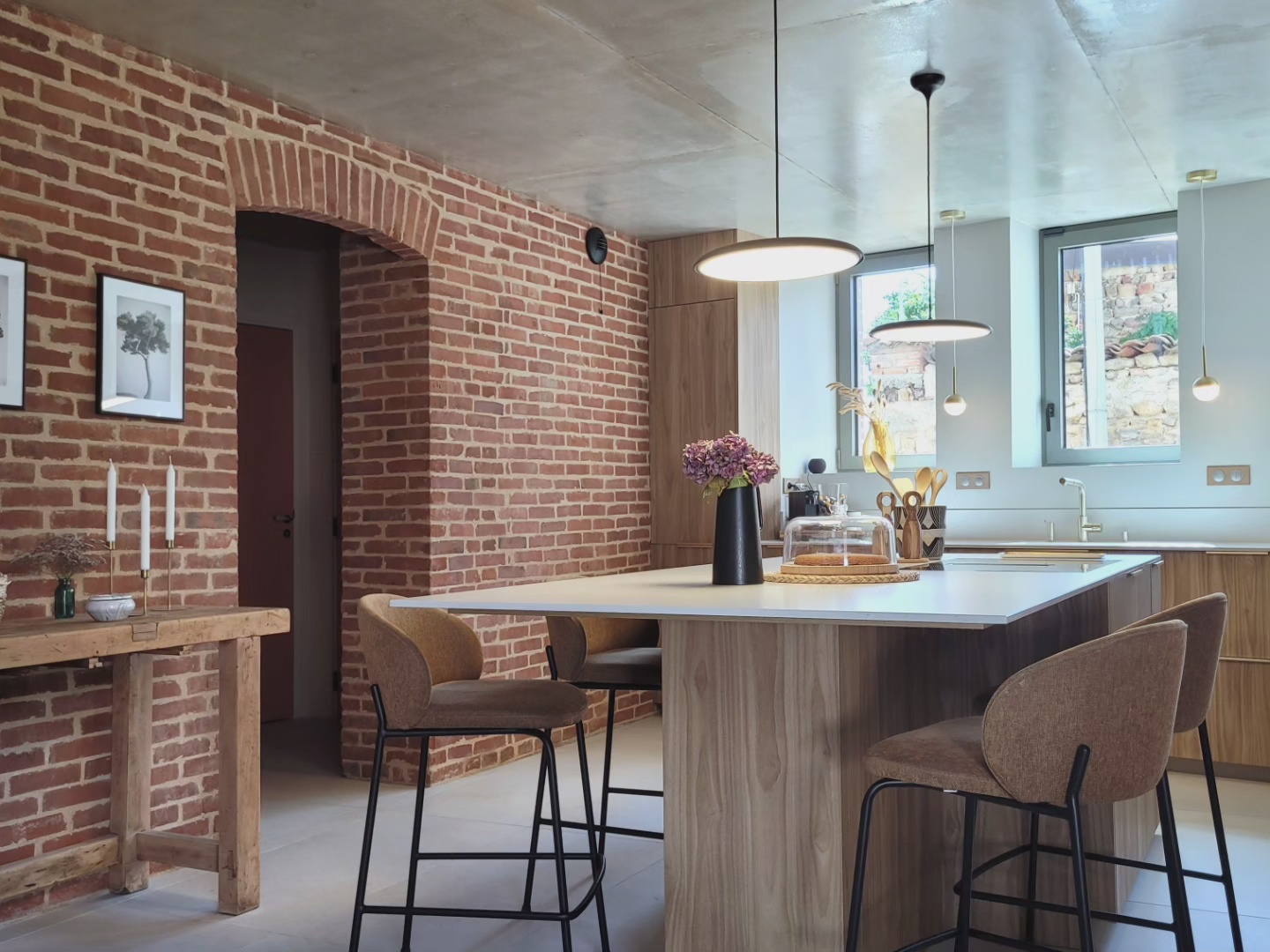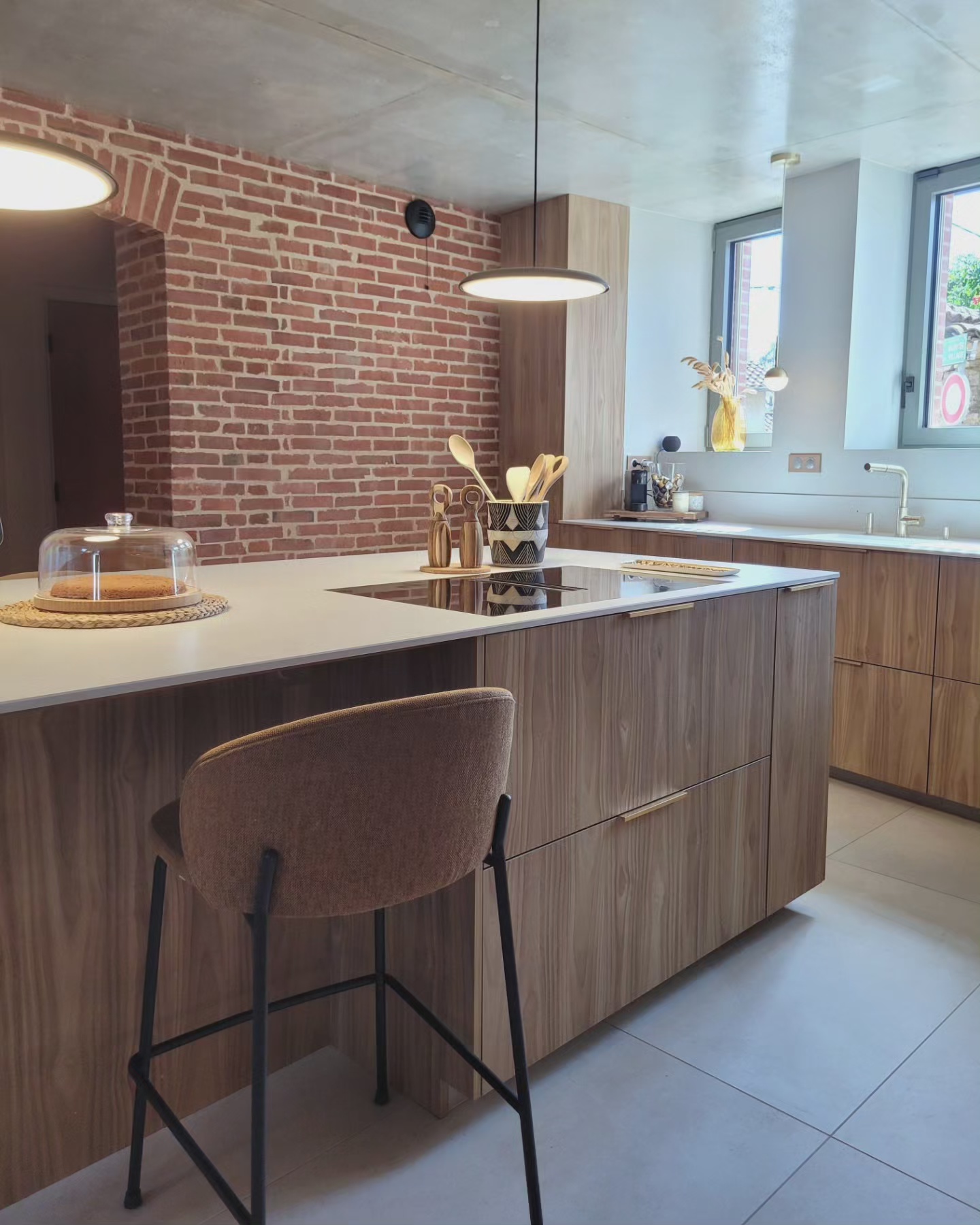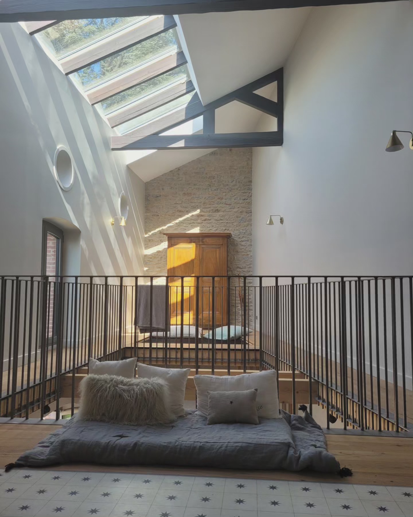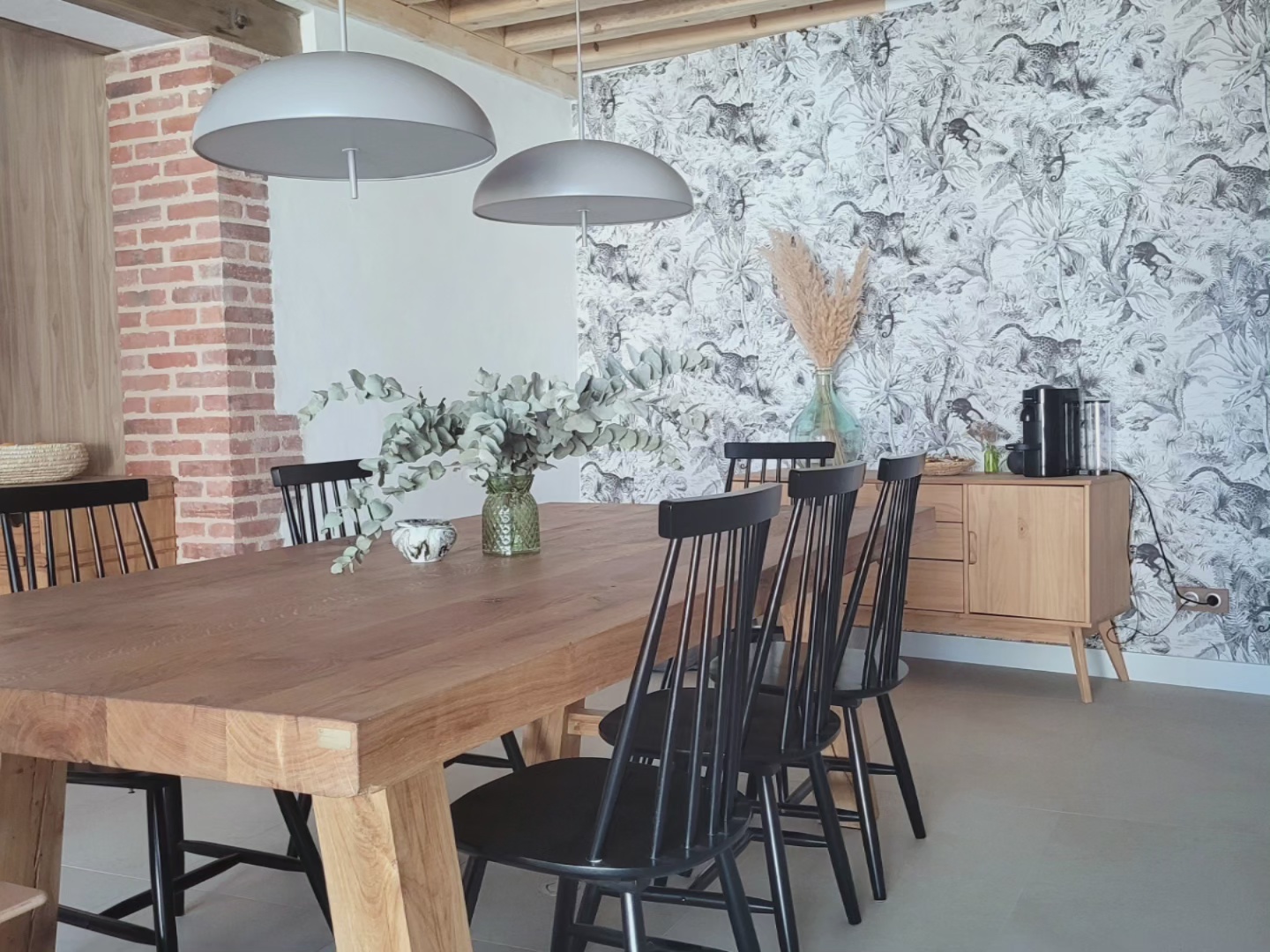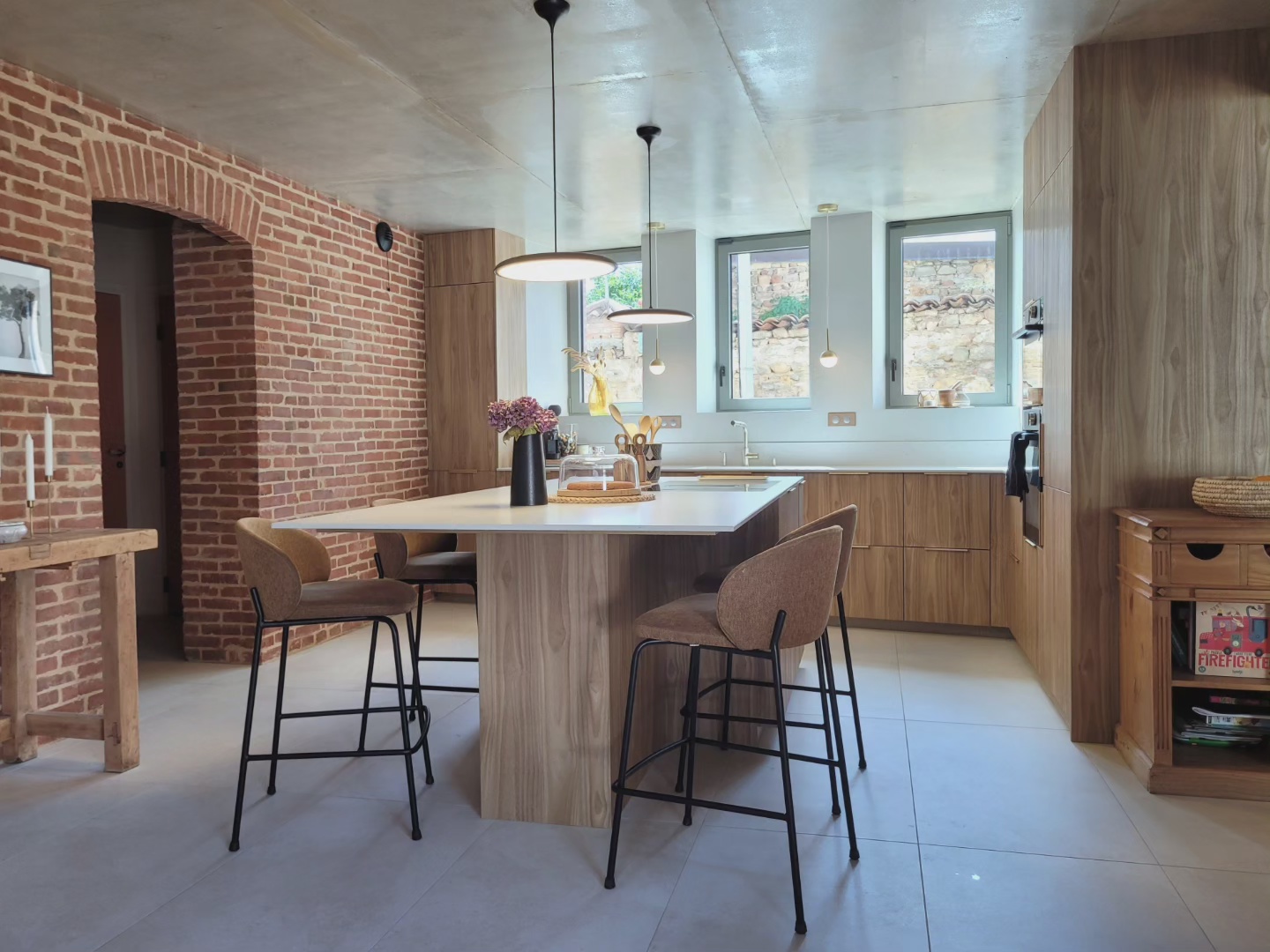 A l’origine cette bâtisse au coeur de la campagne était une grange. Mes clients ont fait appel à un architecte pour élaborer la structure intérieur et extérieur de la bâtisse. Puis je suis intervenue pour l’aménagement et la décoration intérieure de la maison entière. Pour la partie décoration j’ai travailler en collaboration avec @paulinea.n.d.r.e spécialisée dans le style « campagne-authentique ». Les pierres rouges ont été conservées pour garder l’âme de la maison. De la chaux beige aux murs et un carrelage imitation pierre naturelle pour resté dans le style authentique de la bâtisse. Des touches de modernité ont été placées dans les meubles et la décoration.