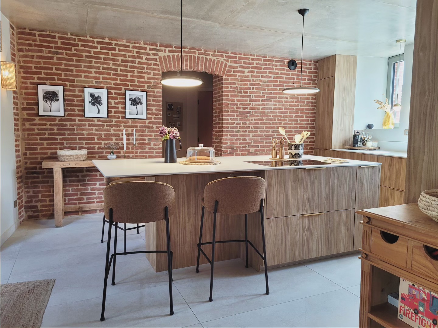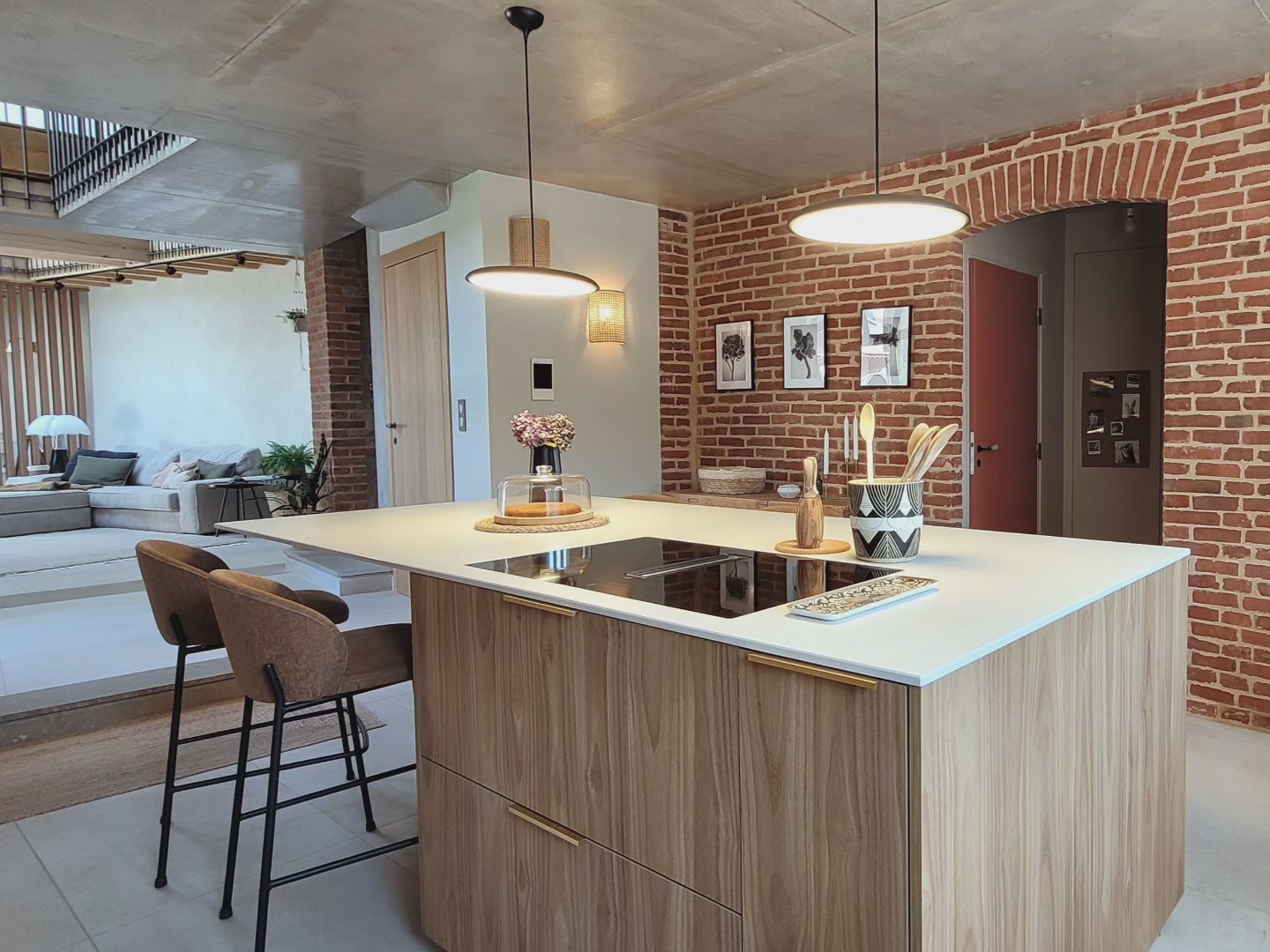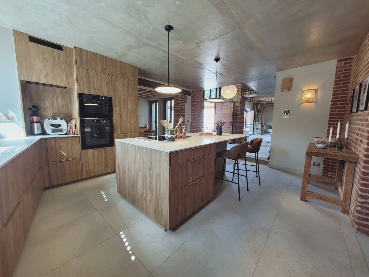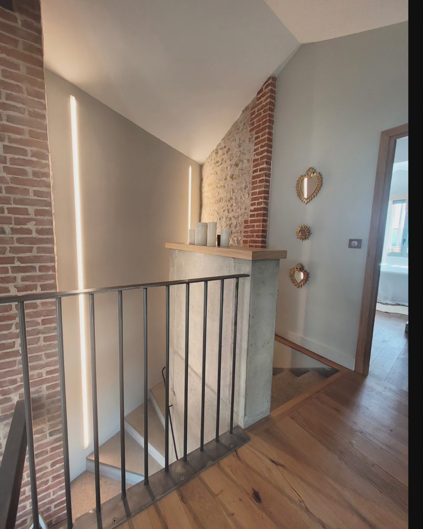 A l’origine cette bâtisse au coeur de la campagne était une grange. Mes clients ont fait appel à un architecte pour élaborer la structure intérieur et extérieur de la bâtisse. Puis je suis intervenue pour l’aménagement et la décoration intérieure de la maison entière. Pour la partie décoration j’ai travailler en collaboration avec @paulinea.n.d.r.e spécialisée dans le style « campagne-authentique ». Les pierres rouges ont été conservées pour garder l’âme de la maison. De la chaux beige aux murs et un carrelage imitation pierre naturelle pour resté dans le style authentique de la bâtisse. Des touches de modernité ont été placées dans les meubles et la décoration.