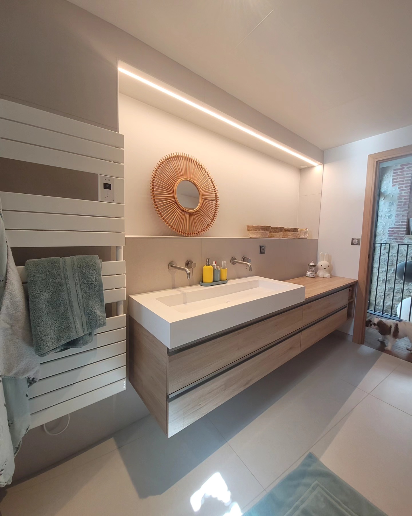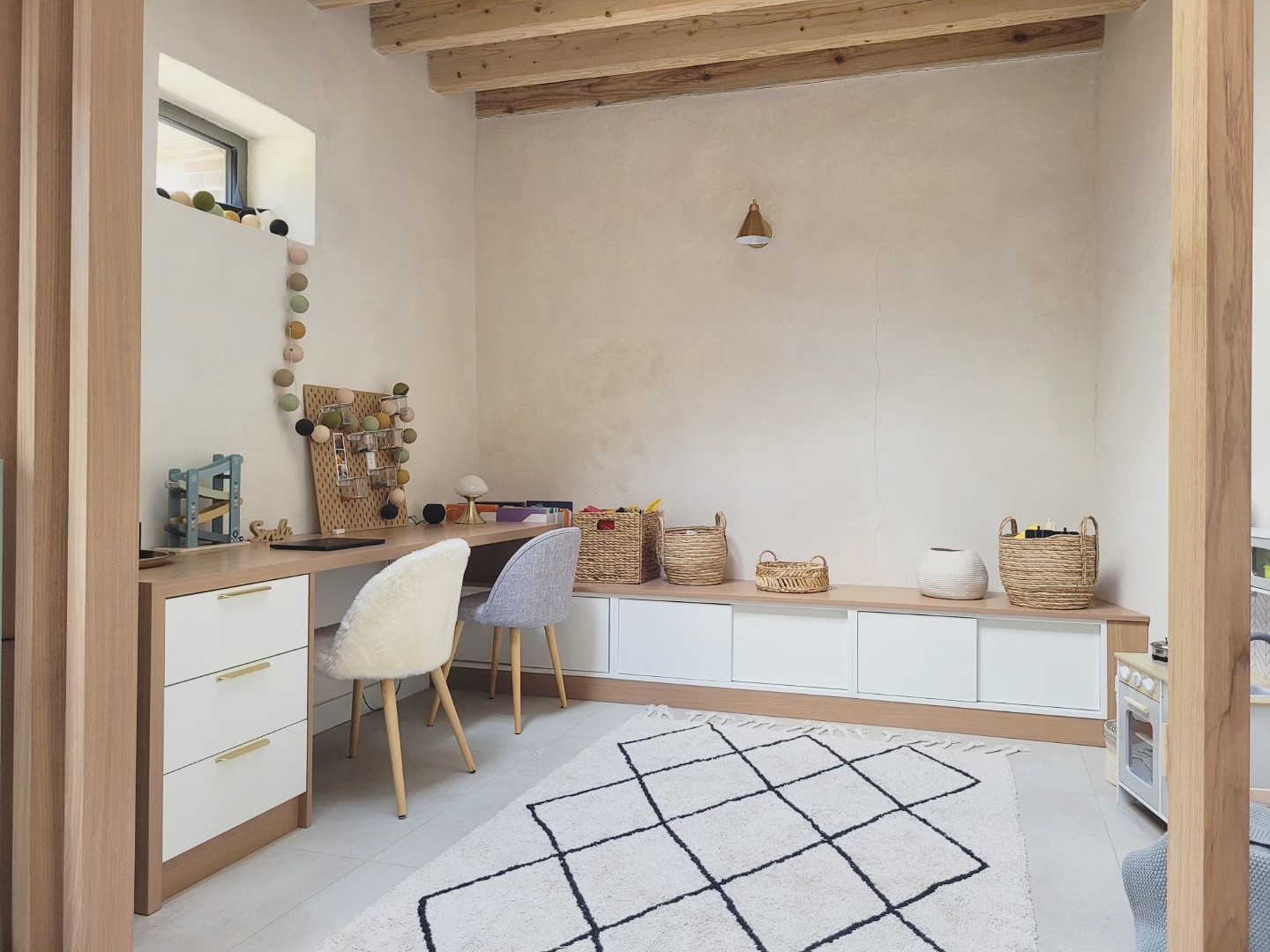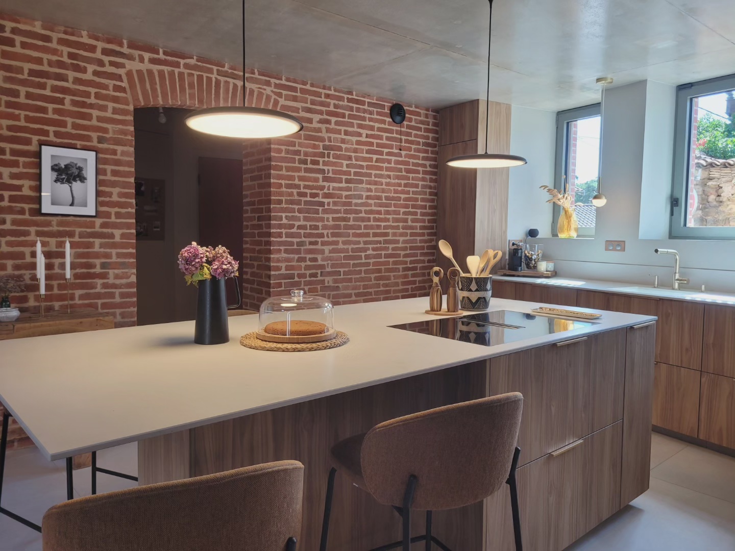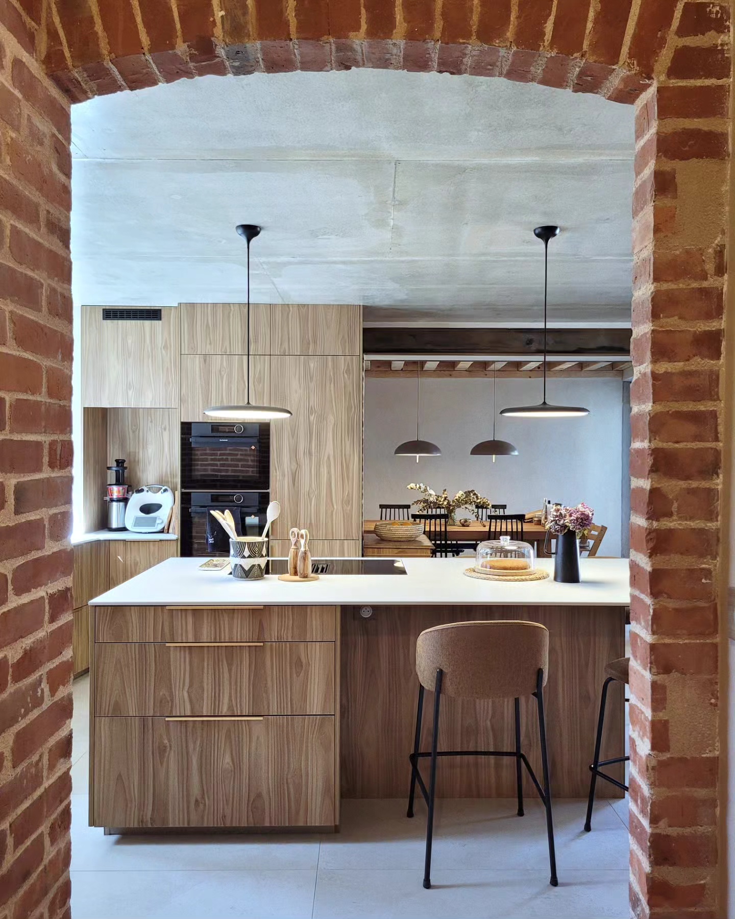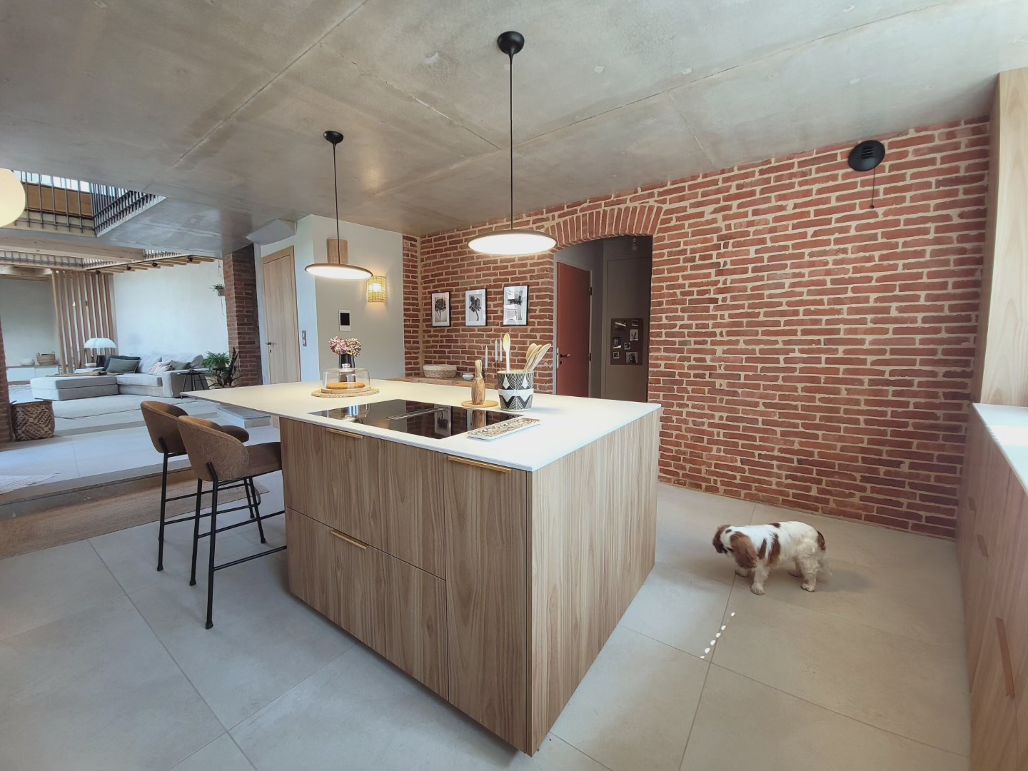 A l’origine cette bâtisse au coeur de la campagne était une grange. Mes clients ont fait appel à un architecte pour élaborer la structure intérieur et extérieur de la bâtisse. Puis je suis intervenue pour l’aménagement et la décoration intérieure de la maison entière. Pour la partie décoration j’ai travailler en collaboration avec @paulinea.n.d.r.e spécialisée dans le style « campagne-authentique ». Les pierres rouges ont été conservées pour garder l’âme de la maison. De la chaux beige aux murs et un carrelage imitation pierre naturelle pour resté dans le style authentique de la bâtisse. Des touches de modernité ont été placées dans les meubles et la décoration.