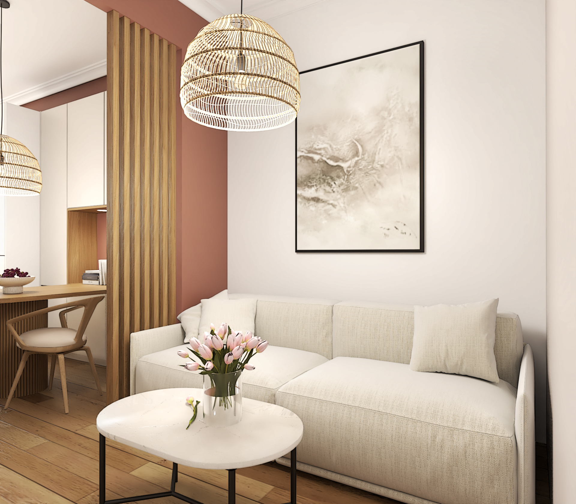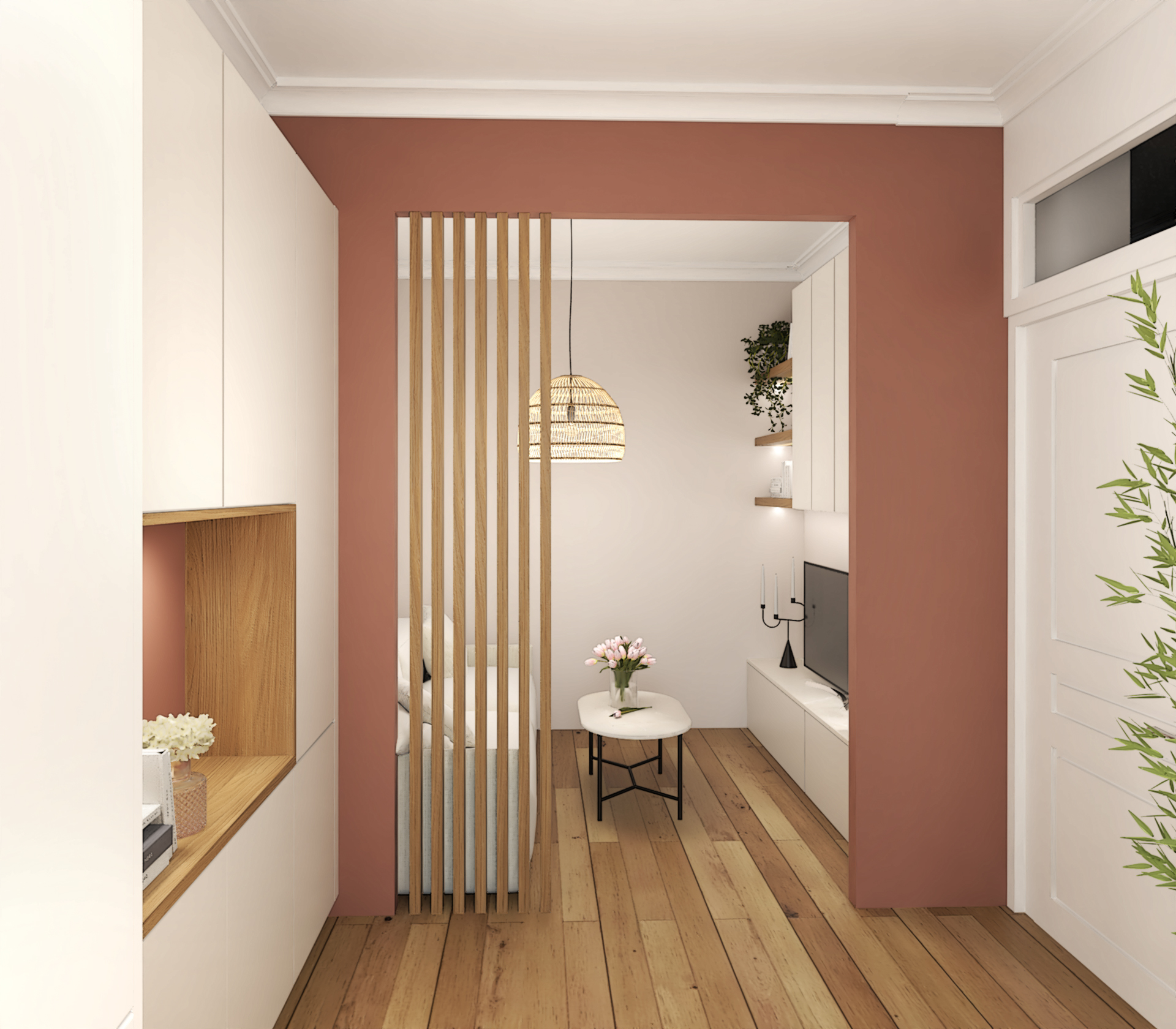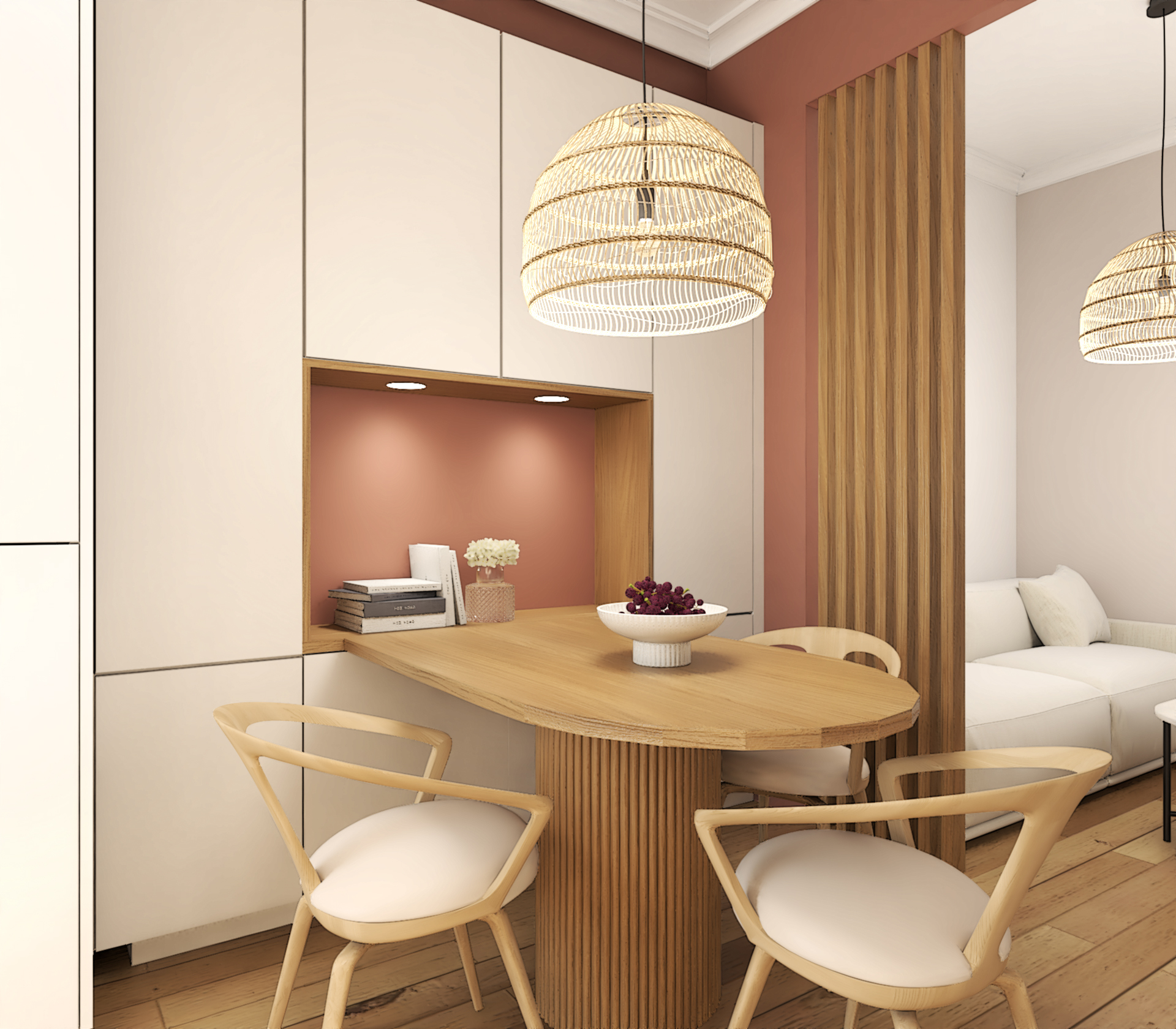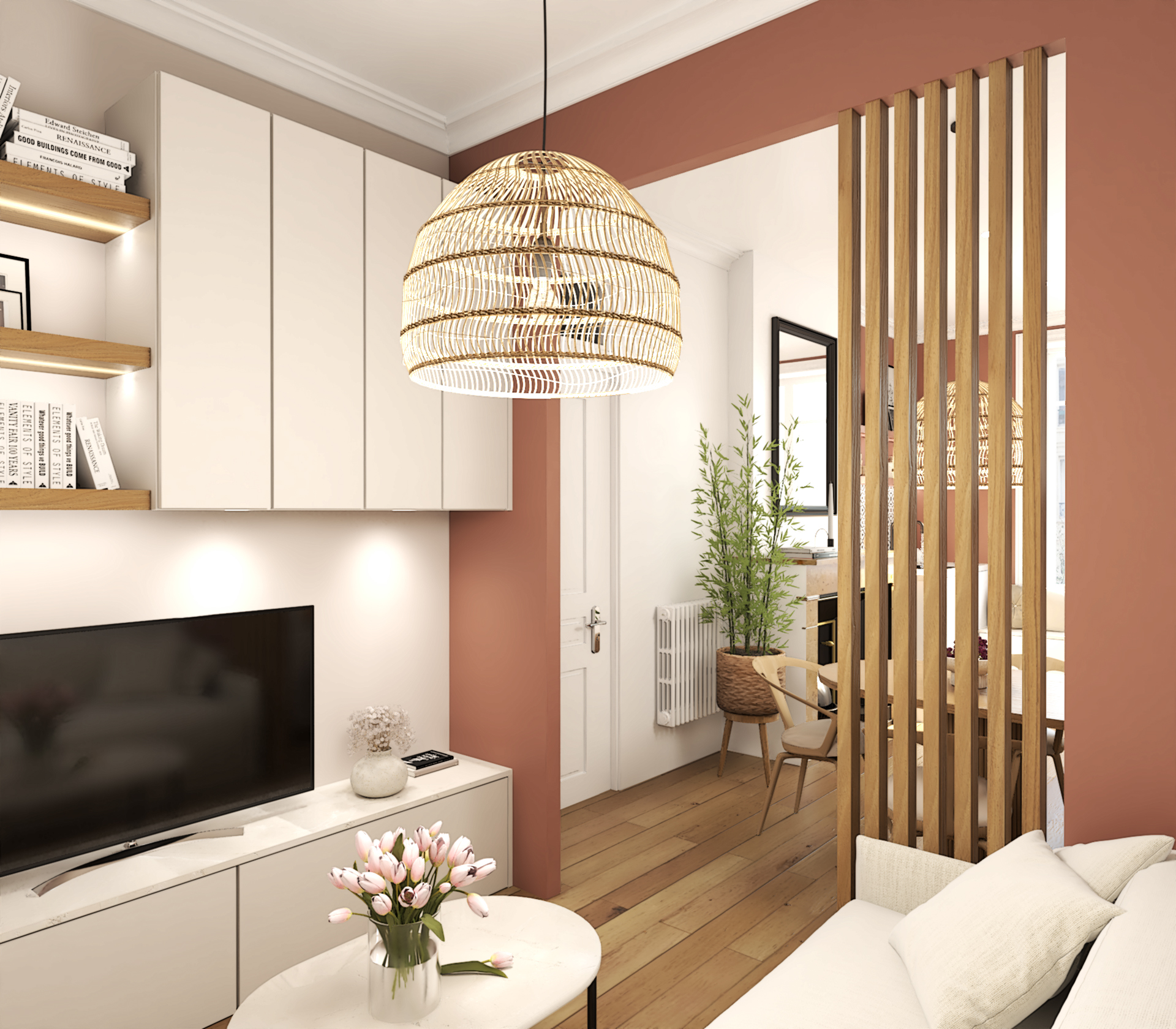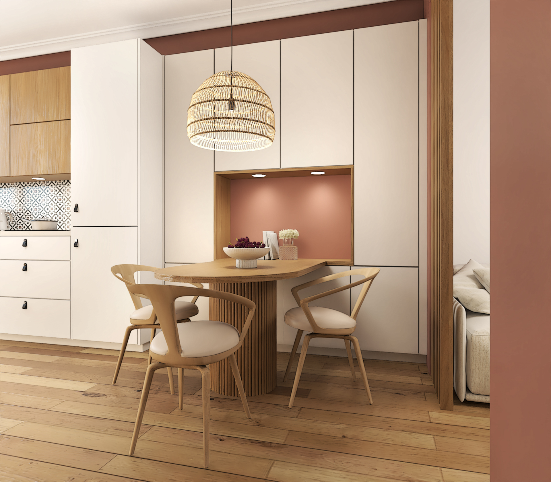 Projet de décoration complète d’un appartement ancien situé au coeur de Lyon. Ce projet allie esthétisme, fonctionnalité et confort pour créer un espace de vie agréable et personnalisé. Le mélange de styles, l’utilisation de matériaux naturels et l’attention portée aux détails font de cette cuisine un lieu de vie chaleureux et accueillant.