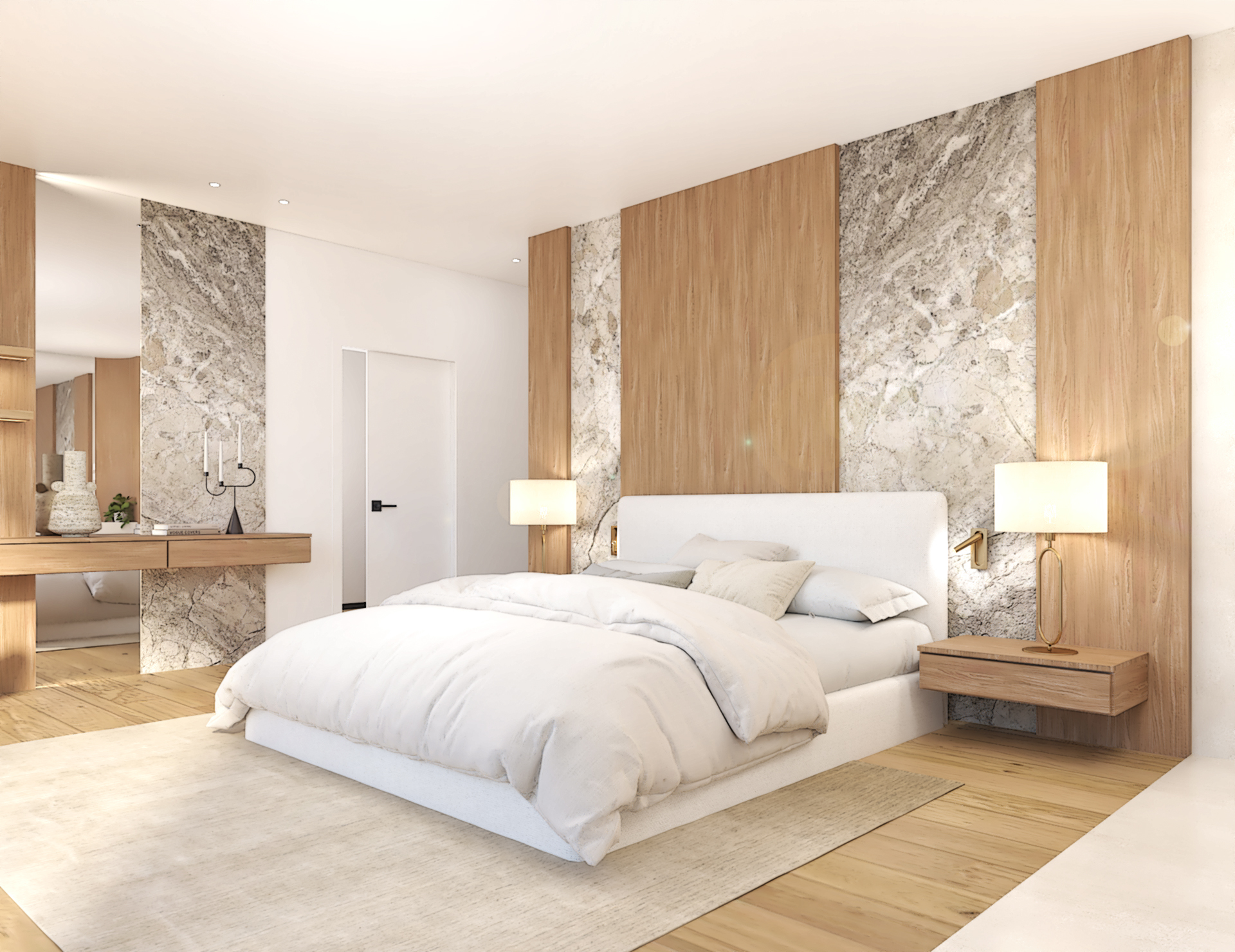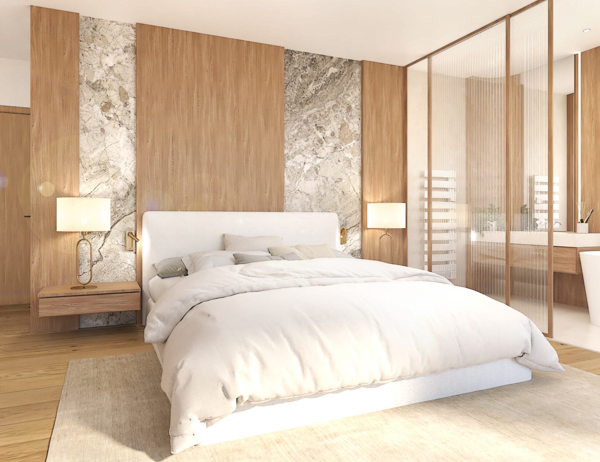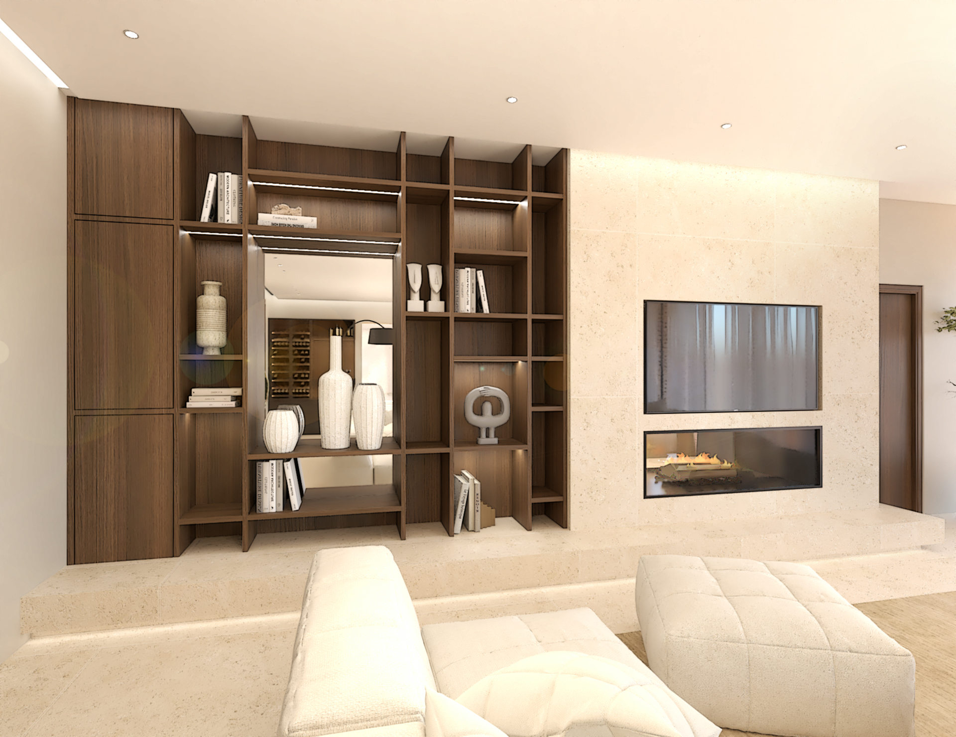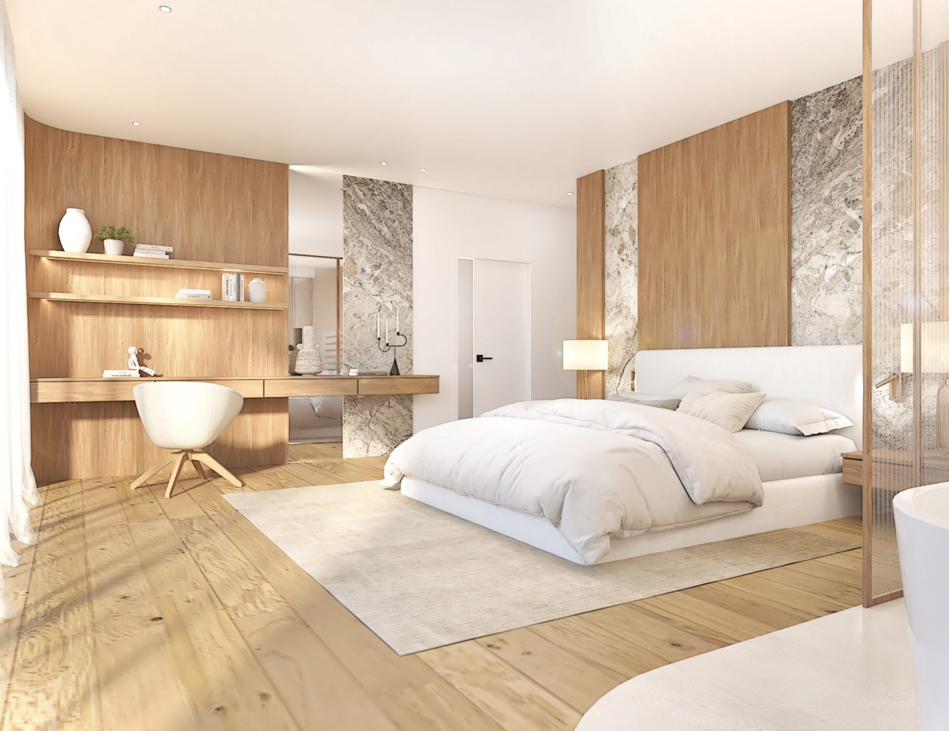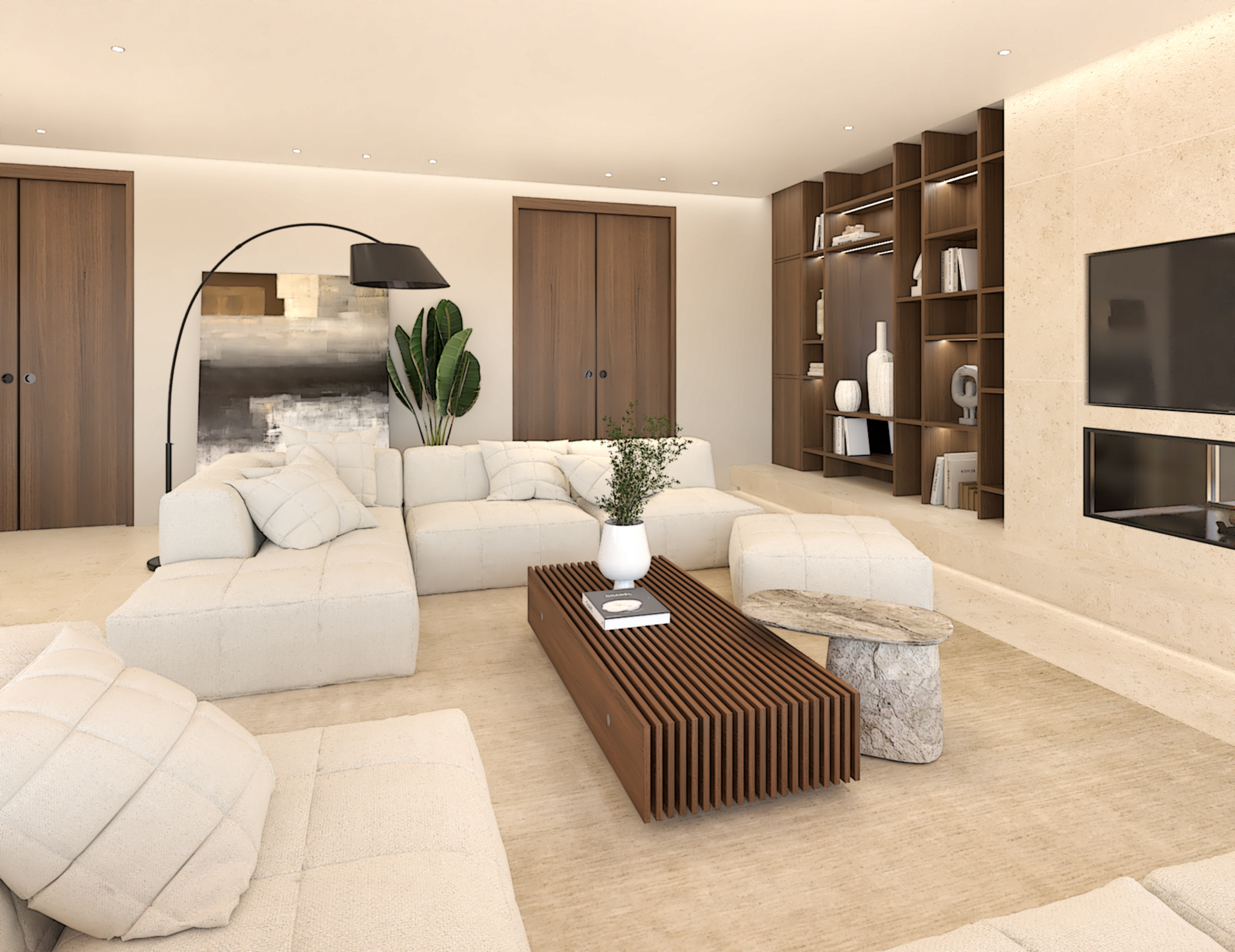 Décoration et villa d’une maison en construction de 300m2. Les lignes sont simples et épurées, avec peu d’éléments décoratifs. L’objectif est de créer un espace aéré et fonctionnel. Les matériaux utilisés sont principalement naturels : bois, pierre naturelle (mur en pierre apparente), et textiles naturels. Cela apporte une sensation de chaleur et de bien-être. Les matériaux nobles utilisés, comme le bois et la pierre naturelle, confèrent à l’espace une atmosphère de luxe et de raffinement. L’ensemble dégage une atmosphère calme et sereine, propice à la détente et à la convivialité.