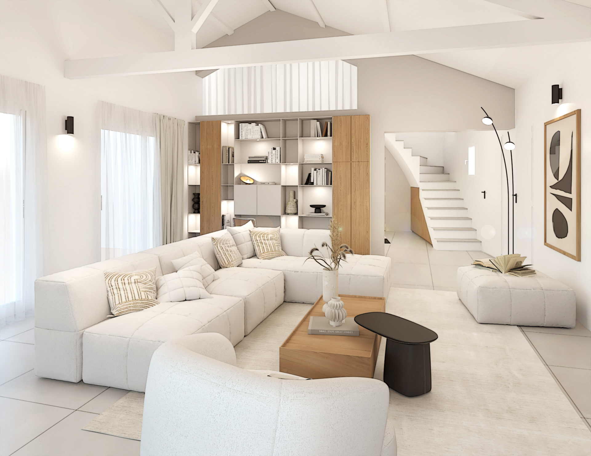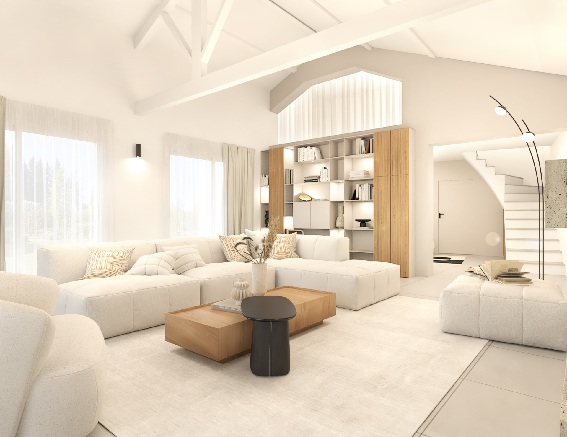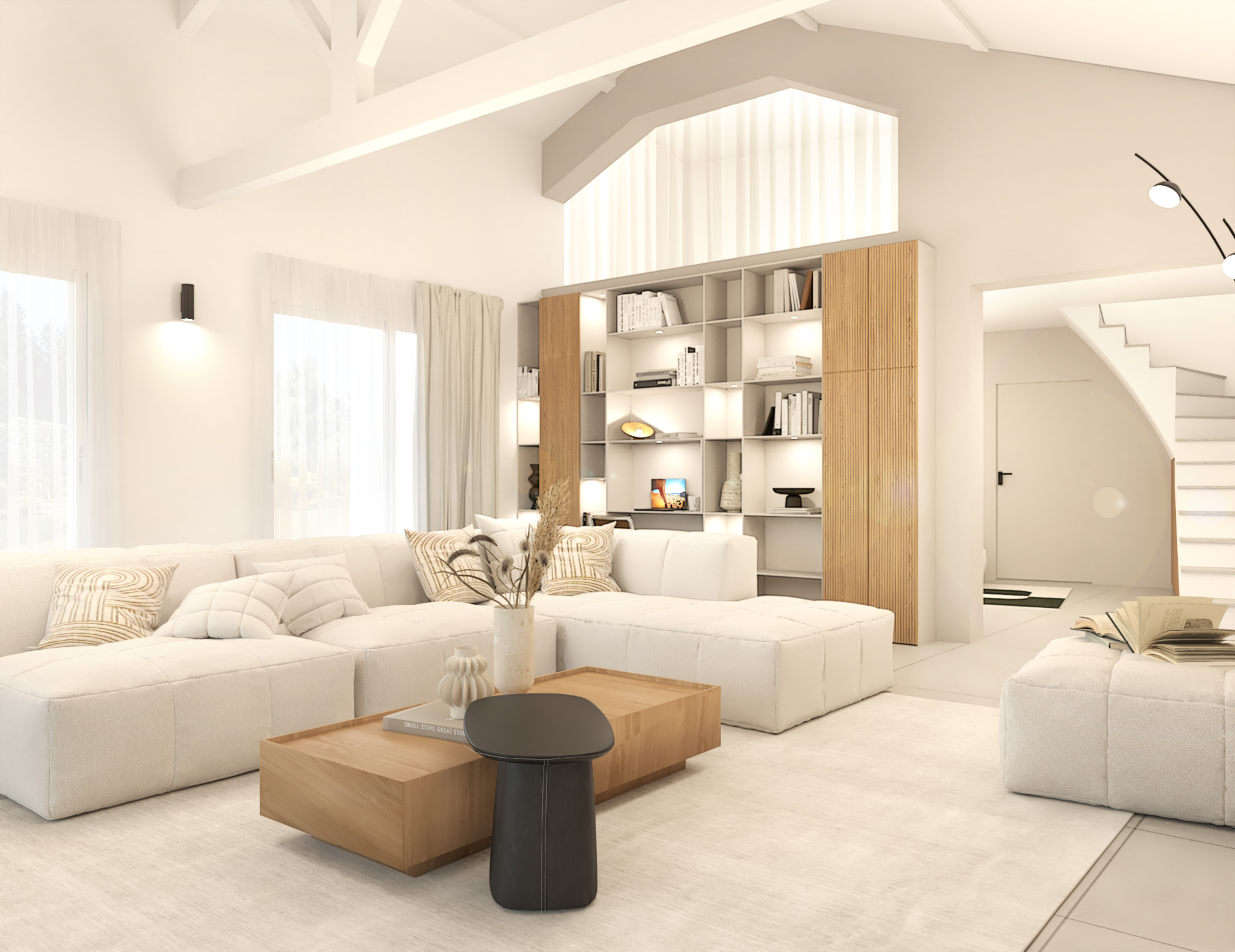 Cette grande maison est doté de beaucoup de charme. L’ambiance souhaité : authentique et contemporaine. L’objectif était de tirer avantage de ces deux styles afin de sublimer l’intérieur de cette maison. Les teintes naturelles, claires et lumineuses du style contemporain . .